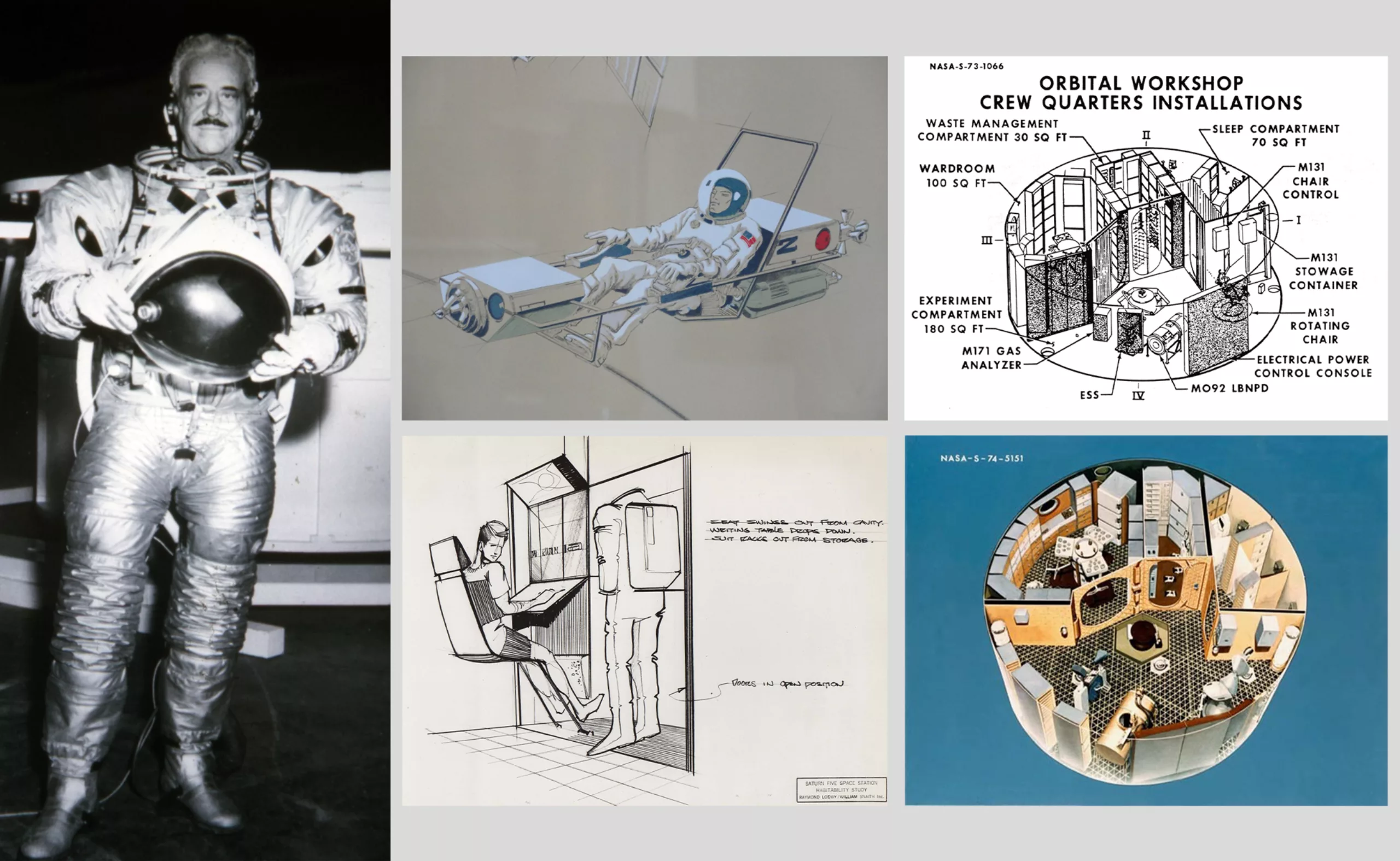 Loewy ajoute une pédale au réfrigérateur pour qu’on puisse l’ouvrir les mains pleines, et arrondit les coins des meubles de la station spatiale pour éviter les blessures aux cosmonautes tout en ajoutant un hublot pour la vue sur Terre. Il fallait y penser, Raymond l’a fait.