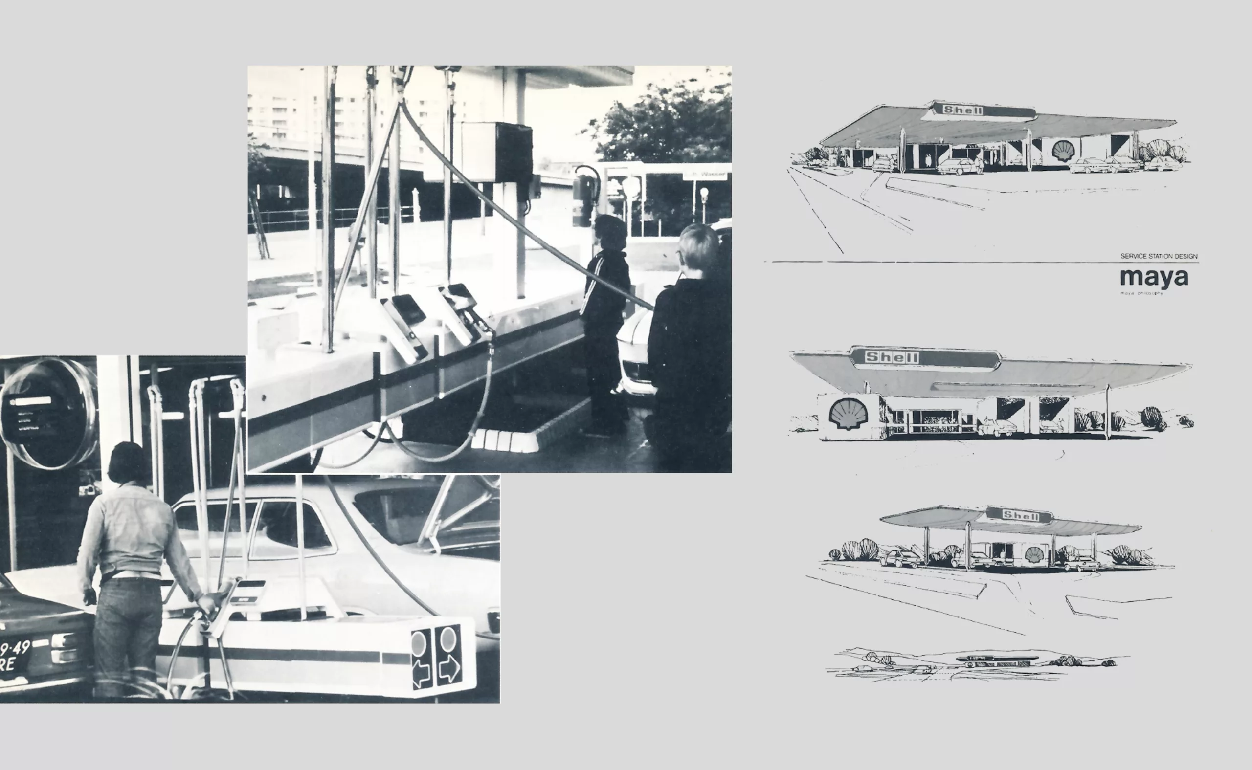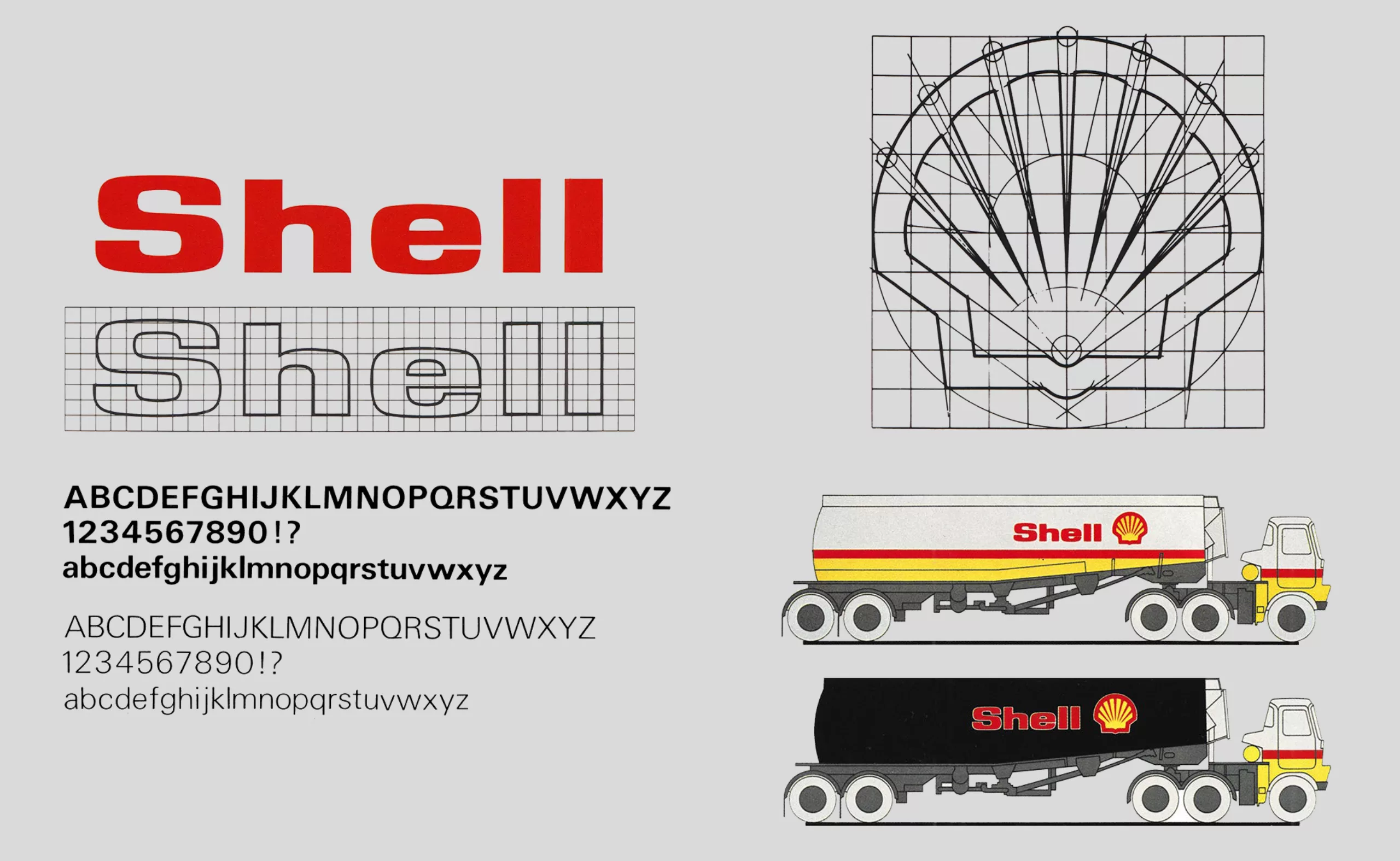 Il invente par exemple le concept moderne de station service avec WC et cafétéria, en considérant les humains (et non les voitures) comme les principaux clients. Pour Shell par exemple, il rend le coquillage plus incisif et moins rond, avec plus de contraste grâce au surlignage rouge, et en enlevant le mot Shell pour le placer en-dessous afin qu’il soit plus lisible de loin (image ci-dessous, logo du bas). Il utilise les caractères Univers de Frutiger, qui sont disponibles à l’international et permettent donc de déployer le logo à bas coût et d’une manière homogène. Loewy dessine aussi les uniformes des employé.es de la station, et revoit l’éclairage et les couleurs pour rendre l’expérience plus accueillante et agréable.