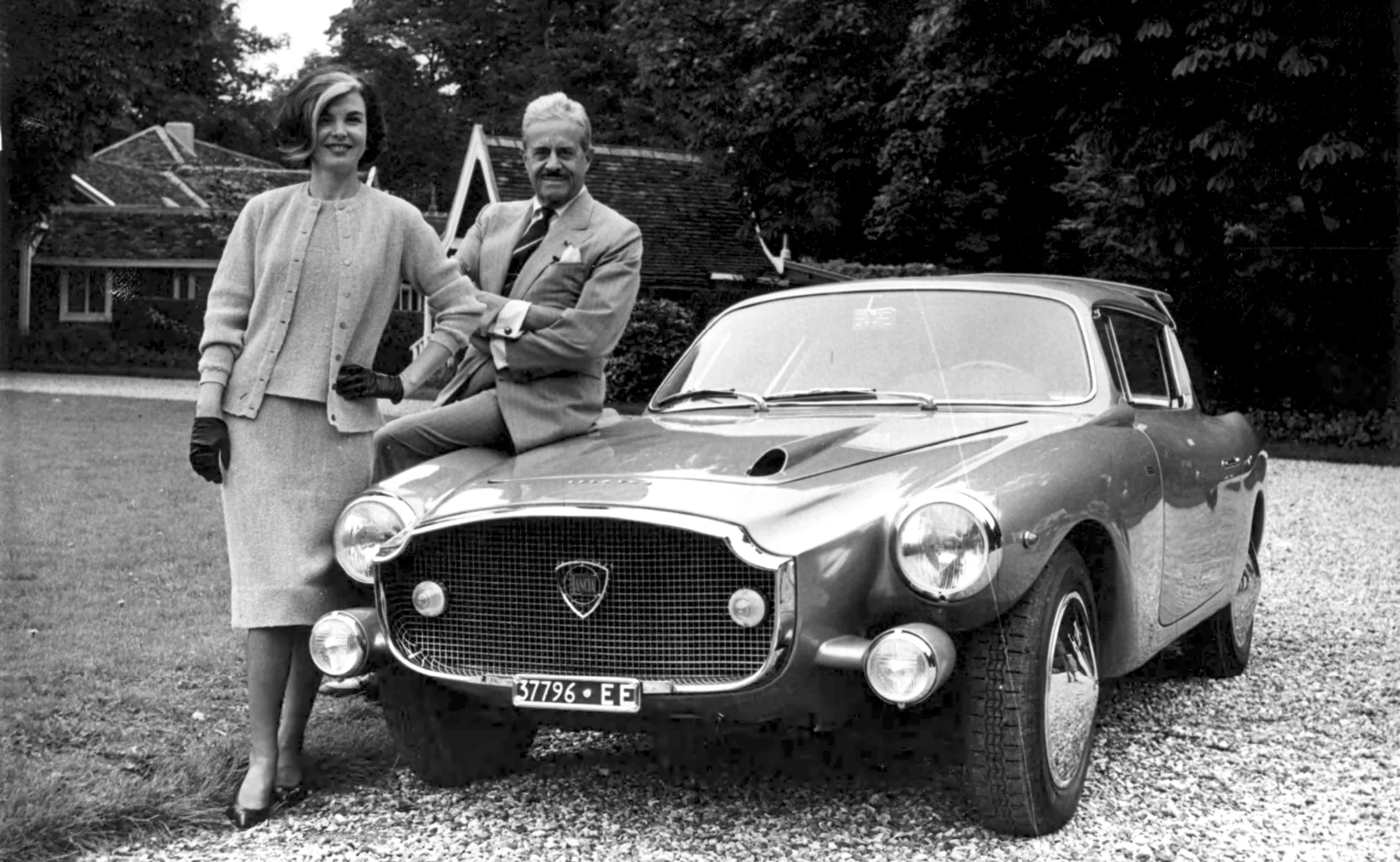 Avec sa femme Viola Erickson Loewy, et leur Lancia Loraymo, 1959