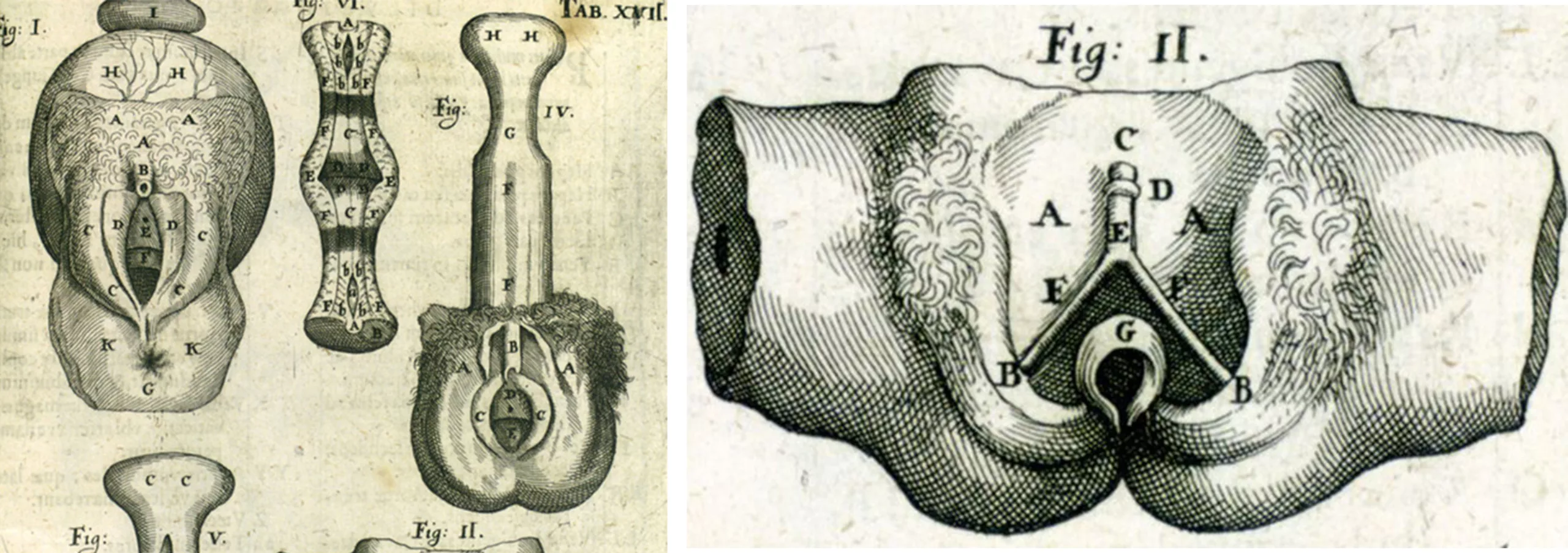 Au 16e siècle, Colombo (l’anatomiste italien, pas l’inspecteur) met un nom pour la première fois sur cette chose érogène : le clitoris. Il en parle comme “un organe si joli et tellement utile”. Pouce en l’air pour Colombo ! Il fait des recherches et des gravures sur le sujet, et l’on sait qu’il est lié au plaisir féminin. En pleine Renaissance autour de 1510, De Vinci étudie aussi la question de l’anatomie féminine, art oblige. À l’époque, comme à l’antiquité, on pense que la femme doit jouir pour procréer. Du coup, c’est un peu l’âge d’or du clitoris.
