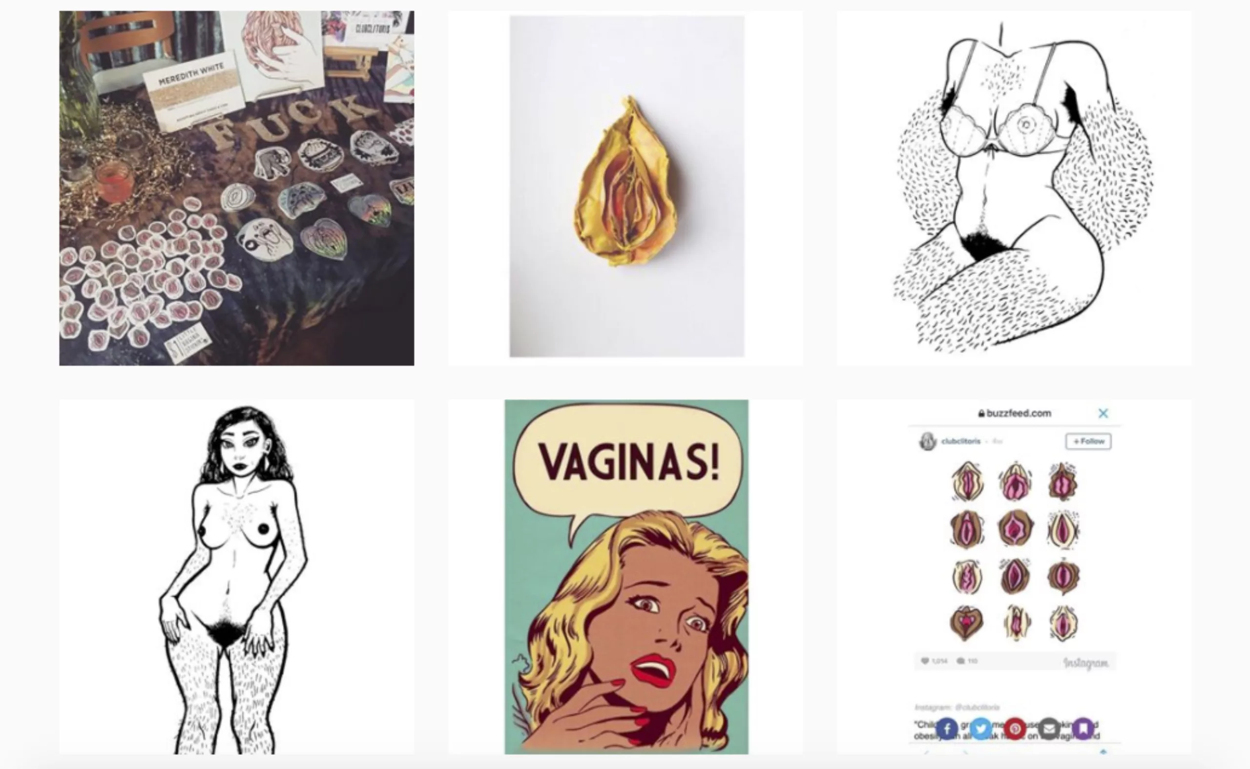 Graphiquement, c’est la libération. Des images ni trop prudes, ni trop osées, qui symbolisent ou illustrent souvent avec humour. Sur la page instagram de Club Clitoris, on découvre nail art, tatouages et vases en forme de vulve.
