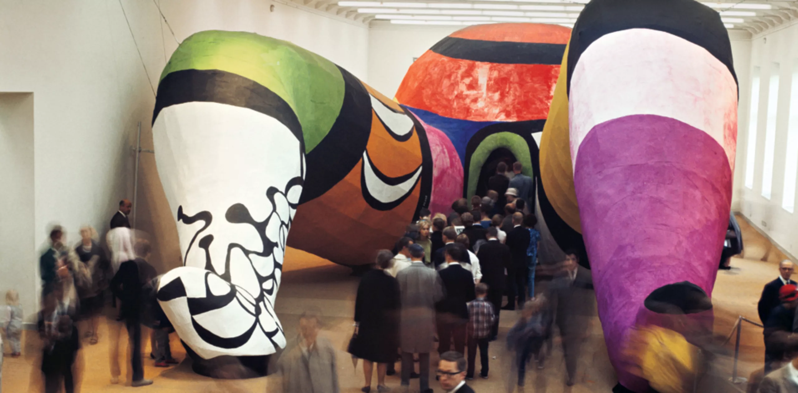 En 1966, l’artiste féministe Niki de Saint Phalle réalise une oeuvre gigantesque, ‘Hon‘ (Elle), avec son mari Jean Tinguely. Cette femme de 28m allongée installée dans le musée d’art moderne de Stockholm marque un tournant décomplexé dans la représentation du vagin dans l’art. Sur le point d’accoucher, elle invite les curieux à faire le mouvement inverse et à rentrer en elle. Un peu comme des fidèles entreraient dans un temple sacré.