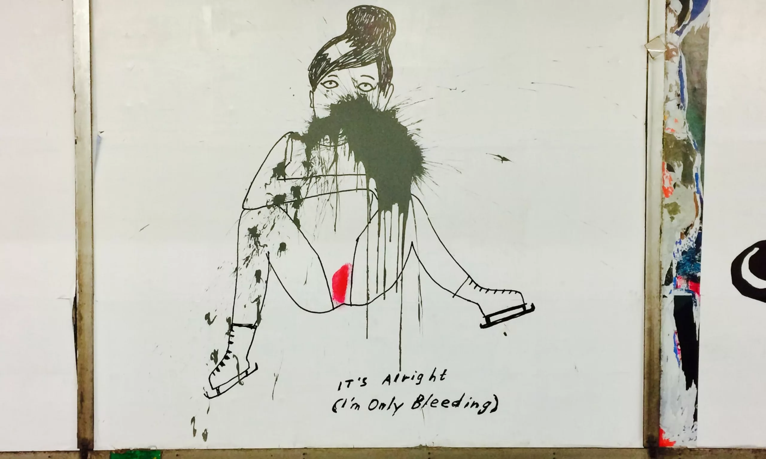 Pour aborder librement le sujet des règles, l’auteure-illustratrice suédoise Liv Strömquist a investi la station Slussen à Stockholm en novembre dernier, avec des visuels tirés de sa bande dessinée “L’Origine du Monde” que l’on vous recommande absolument de lire ! Cette BD retrace justement l’évolution des moeurs autour du sexe féminin, et la perception de la société sur ce sujet. Dans l’exposition souterraine on voit -parmi d’autres images de pastorale idyllique- danser des femmes à la culotte tachée.