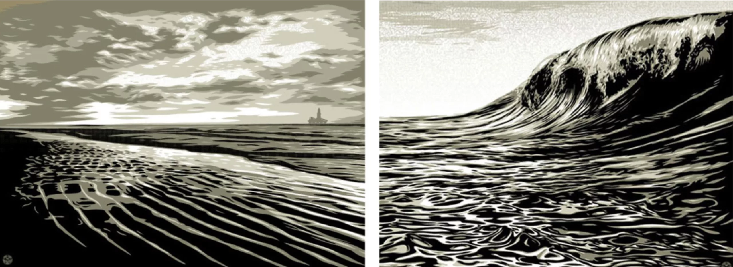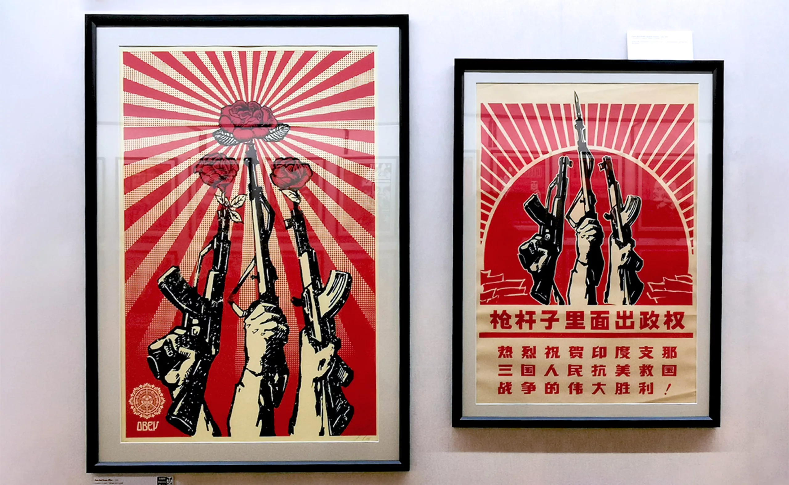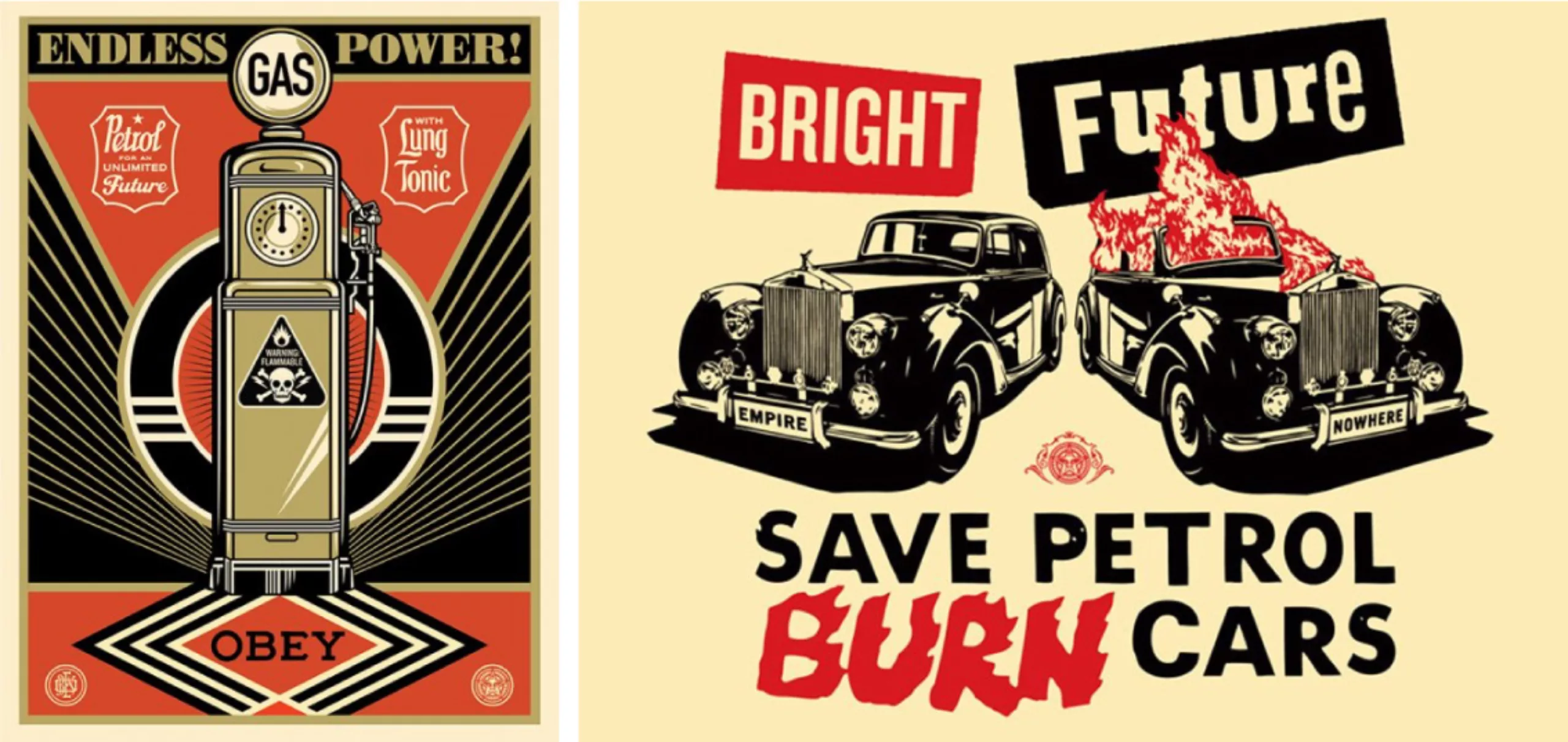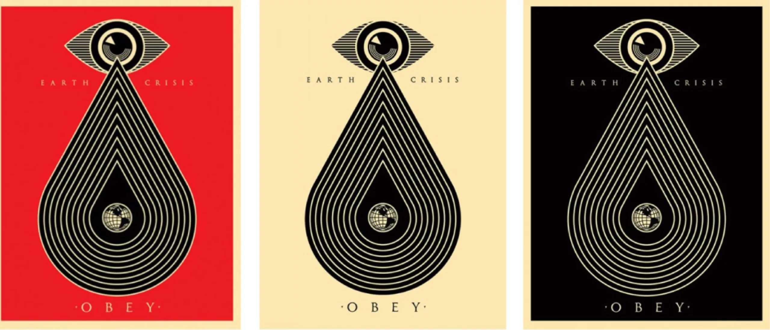 Résolument engagé, Shepard touche à tous les sujets qui le titillent : écologie, économie, capitalisme, droit des minorités, guerres… et son art activiste lui permet de rebondir régulièrement sur l’actualité. Sa devise : agir tout de suite, regretter plus tard. Comme l’écrivait Noam Chomsky, “la propagande est à a démocratie ce que la matraque est à l’état totalitaire”. Les oeuvres qu’il propose se basent sur des icônes picturales issues de personnalités, d’affiches cultes ou du pop art, et, ainsi détournées, en deviennent de nouvelles. Largement diffusées, avec le même martellement et les mêmes codes, elles remplissent l’espace public comme de la propagande pour défendre non plus l’industrie, les milices ou les nations, mais la liberté de pensée et l’autonomie.