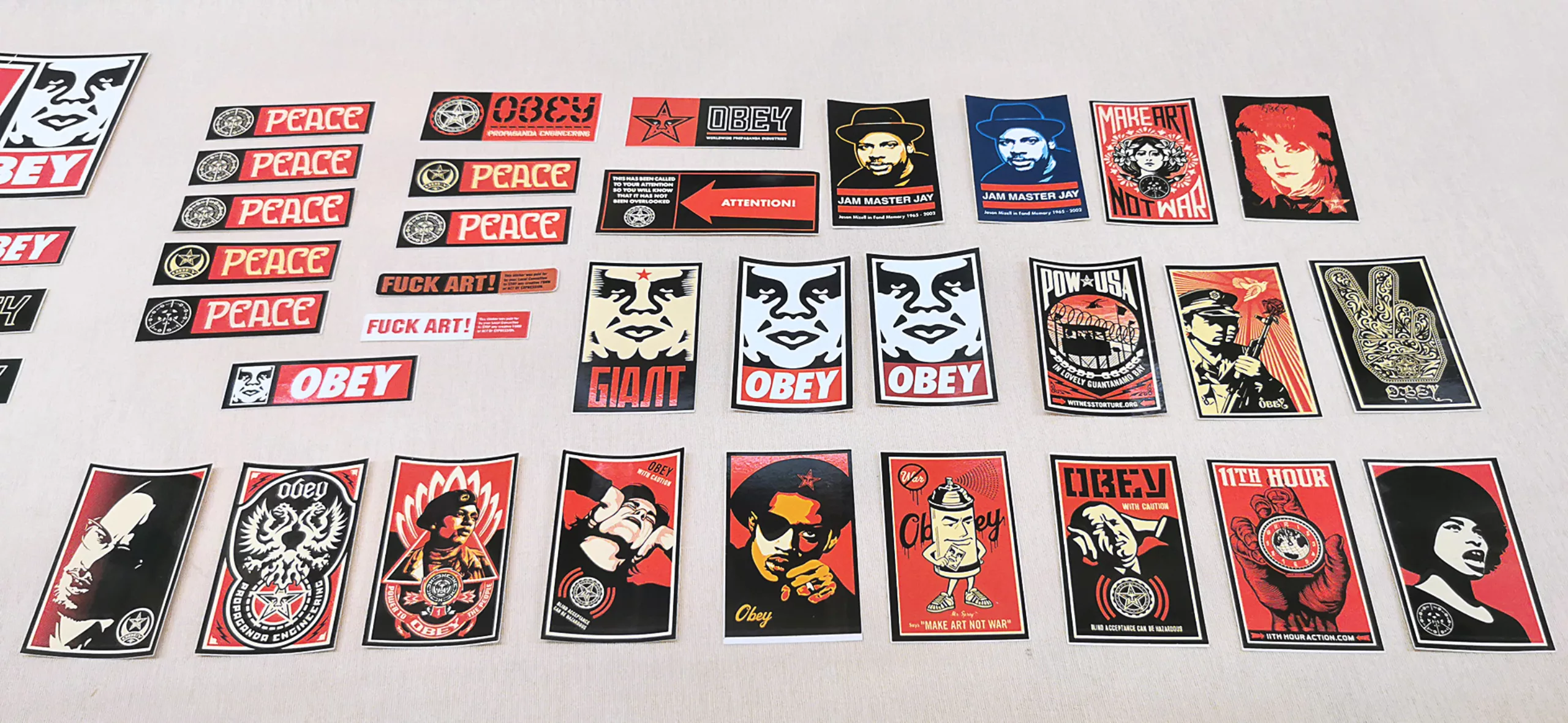 Véritable expérience de phénoménologie (selon Heidegger), ces stickers servent, à l’époque, à mettre en avant des éléments que l’on a perpétuellement sous les yeux, mais que l’on est incapable de voir pour ce qu’ils sont vraiment. Libre à chacun d’en faire ensuite ce qu’il veut. Les conservateurs, gênés par le côté subversif et underground de l’autocollant, l’ont souvent arraché. Les rebelles, souvent collé, faisant grandir ce mouvement. Fairey réalise quelques logos également, comme celui de Mozzilla, en 1998. En 2001, OBEY devient une marque de vêtements streetwear. L’empire Fairey voit le jour.