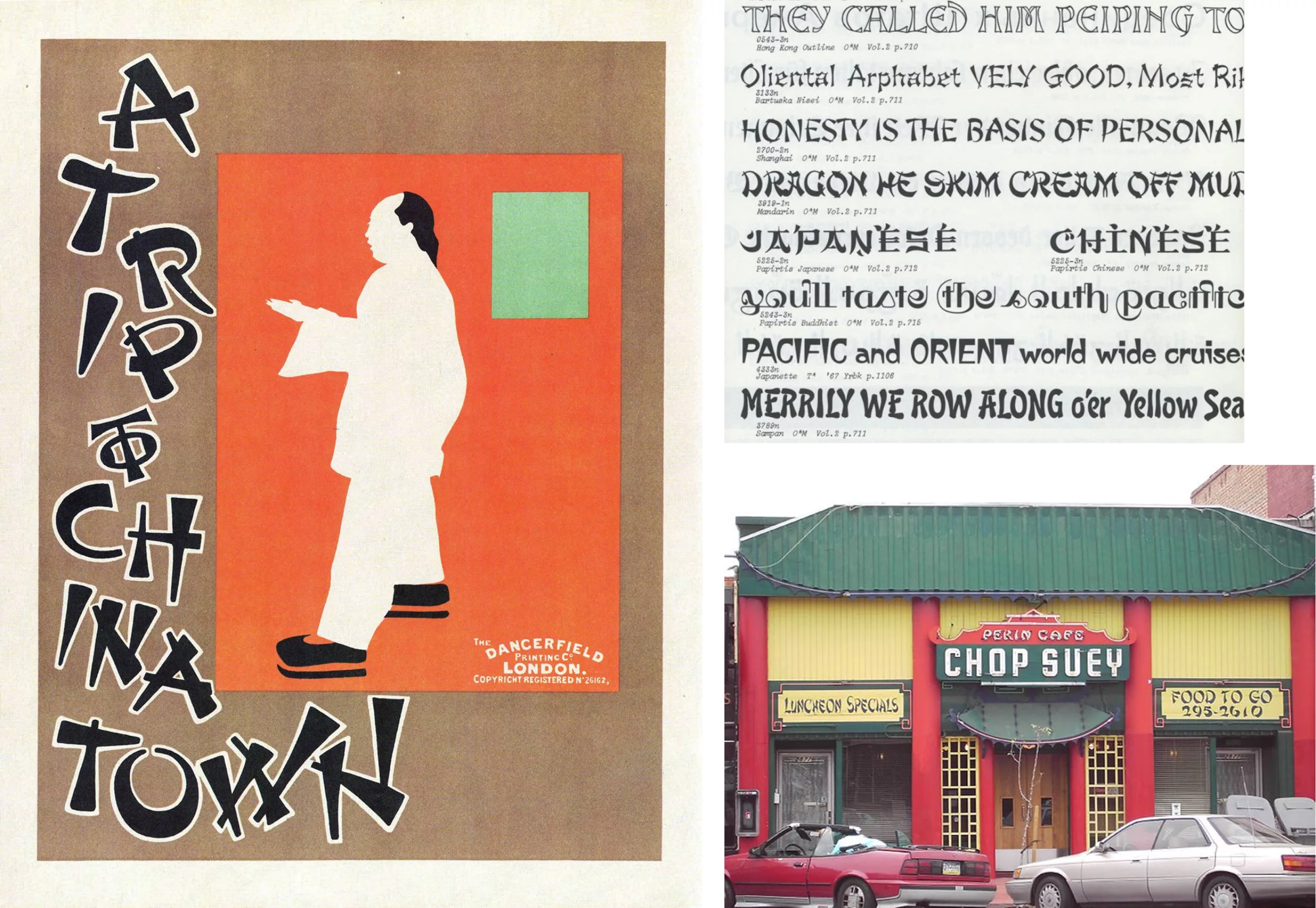 Le plat « Chop Suey » à qui la typographie doit son nom est d’ailleurs lui aussi une invention purement américaine, à la sauce chinoise. Depuis, on retrouve cette typographie sur la majorité des restaurants Asiatiques. Contrairement à la culture afro-américaine qui a souhaité se démarquer de stéréotypes réducteurs, la communauté de Chinatown y a vu l’opportunité de séduire un nouveau public.