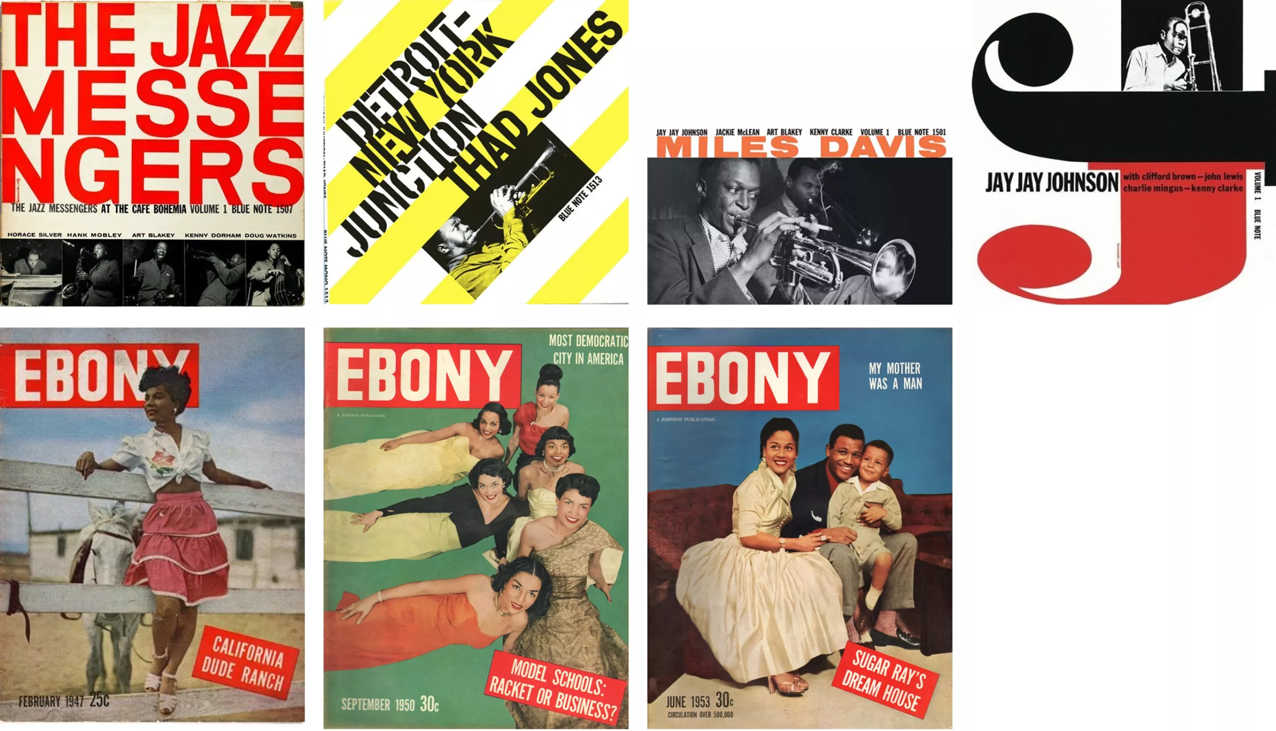 Enfin, il est intéressant de noter que nulle part dans l’expression de la culture graphique africaine on a vu l’utilisation de la Neuland. Au contraire, ce sont des typographies modernes comme la Futura ou la Trade Gothic qui sont utilisées, comme par exemple dans le magazine Ebony, dédié à la culture noire dès 1945, ou pour la maison de disques Blue Note.