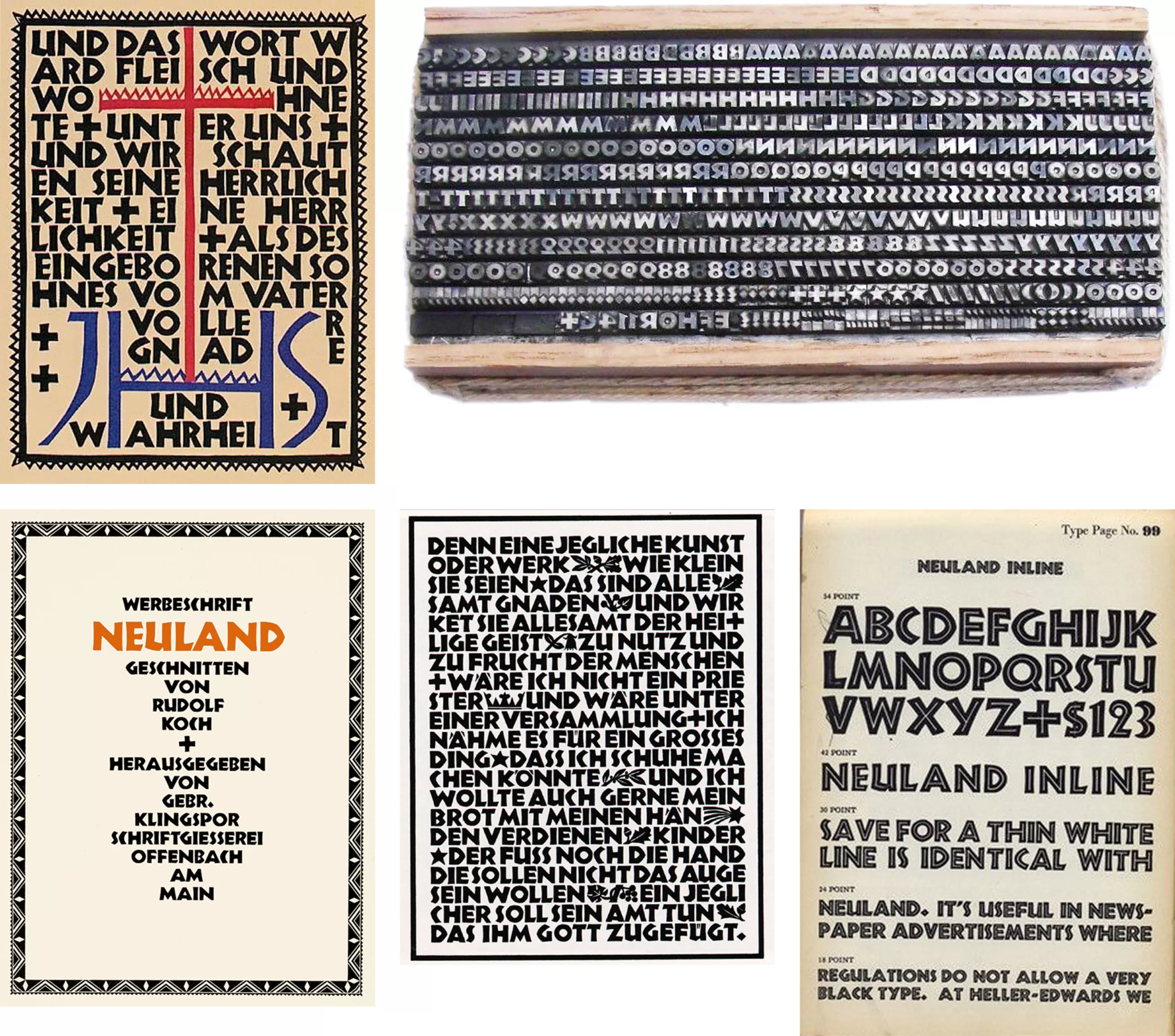 Avec la Neuland, il crée une version moderne de la typographie allemande traditionnelle, la Black Letter, Gothique. Il utilise ainsi le style gras et les espacements réduits du style Gothique, mais avec le sans sérif des typos modernes, et des lettres majuscules qui rappellent les lettres Romaines. D’ailleurs quatre ans plus tard, toujours en Allemagne et toujours suivant ce même désir de modernisation typographique, c’est la Futura qui verra le jour des mains de Paul Renner.