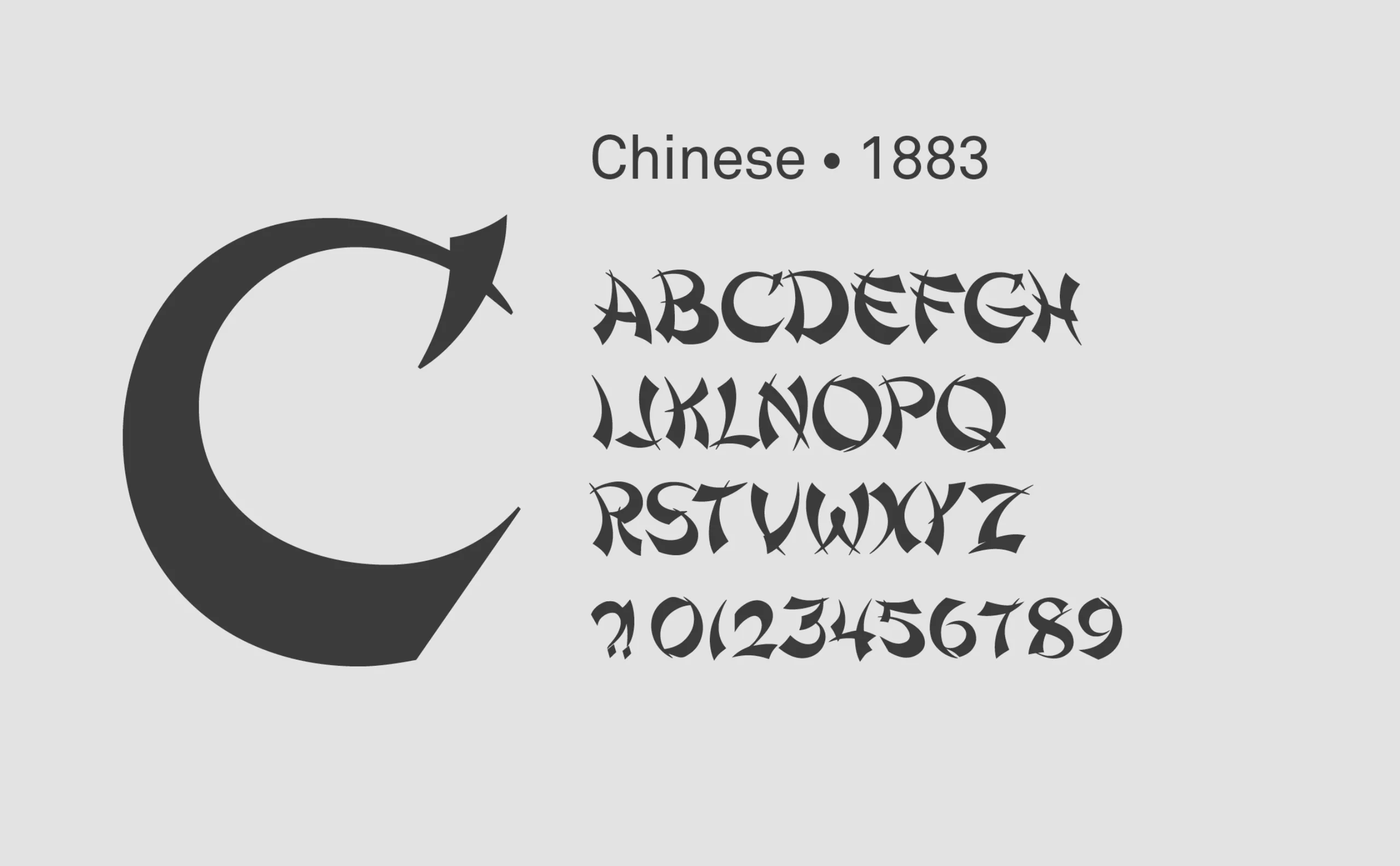 Volontairement suggestive et annoncée comme Asiatique, la typographie « Chinese » (chinoise) est créée en 1883. Elle est rebaptisée « Mandarin » dans les années 50 et sera l’aïeule du style Chop Suey ou Wanton.