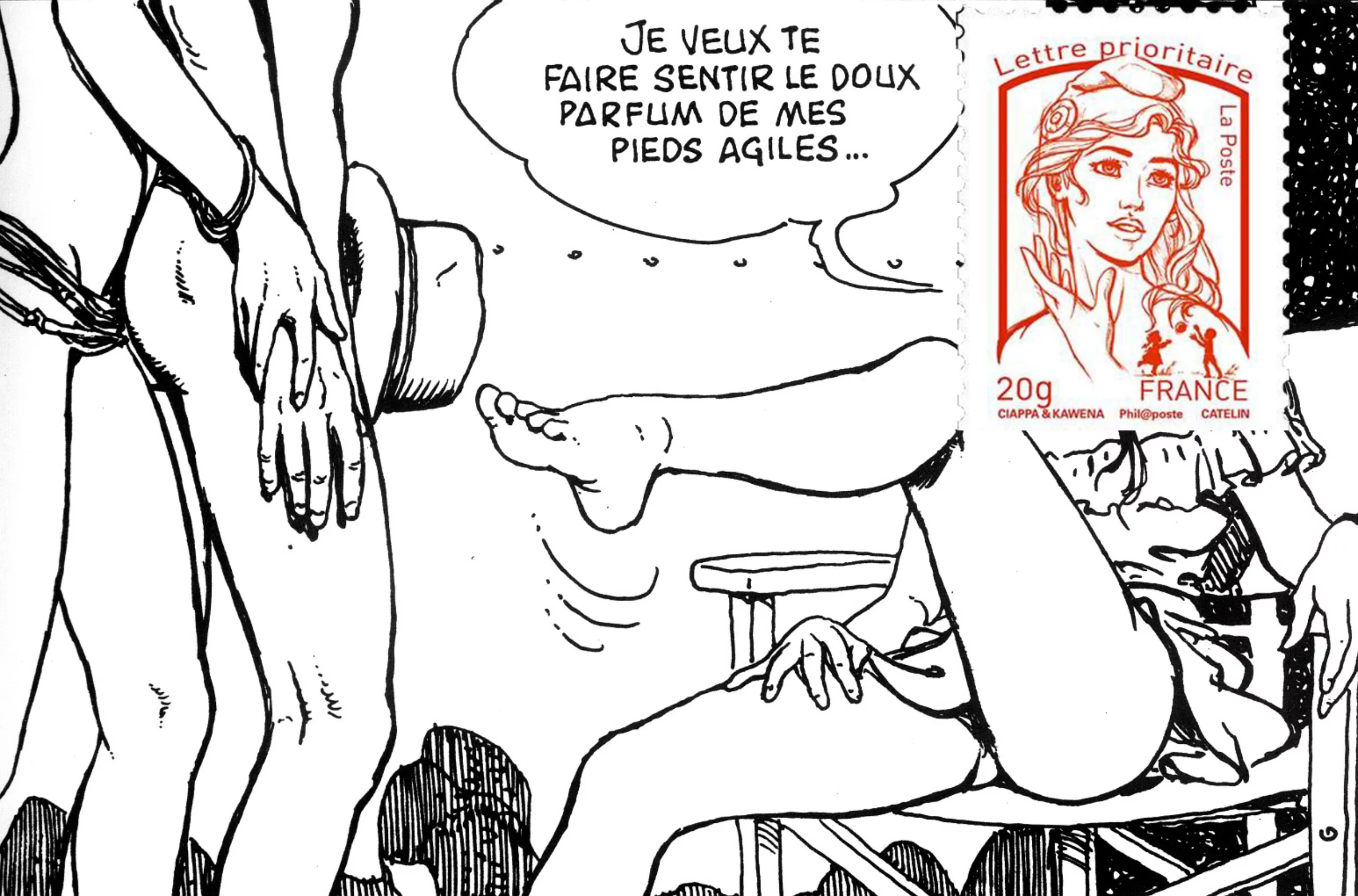 On est à la frontière entre Michel Vaillant et de la BD érotique des années 70. La version jaune “Lettre en ligne” est même censurée comme un film du samedi soir… bref, on est bien loin de la Marianne républicaine, mère de la Patrie.