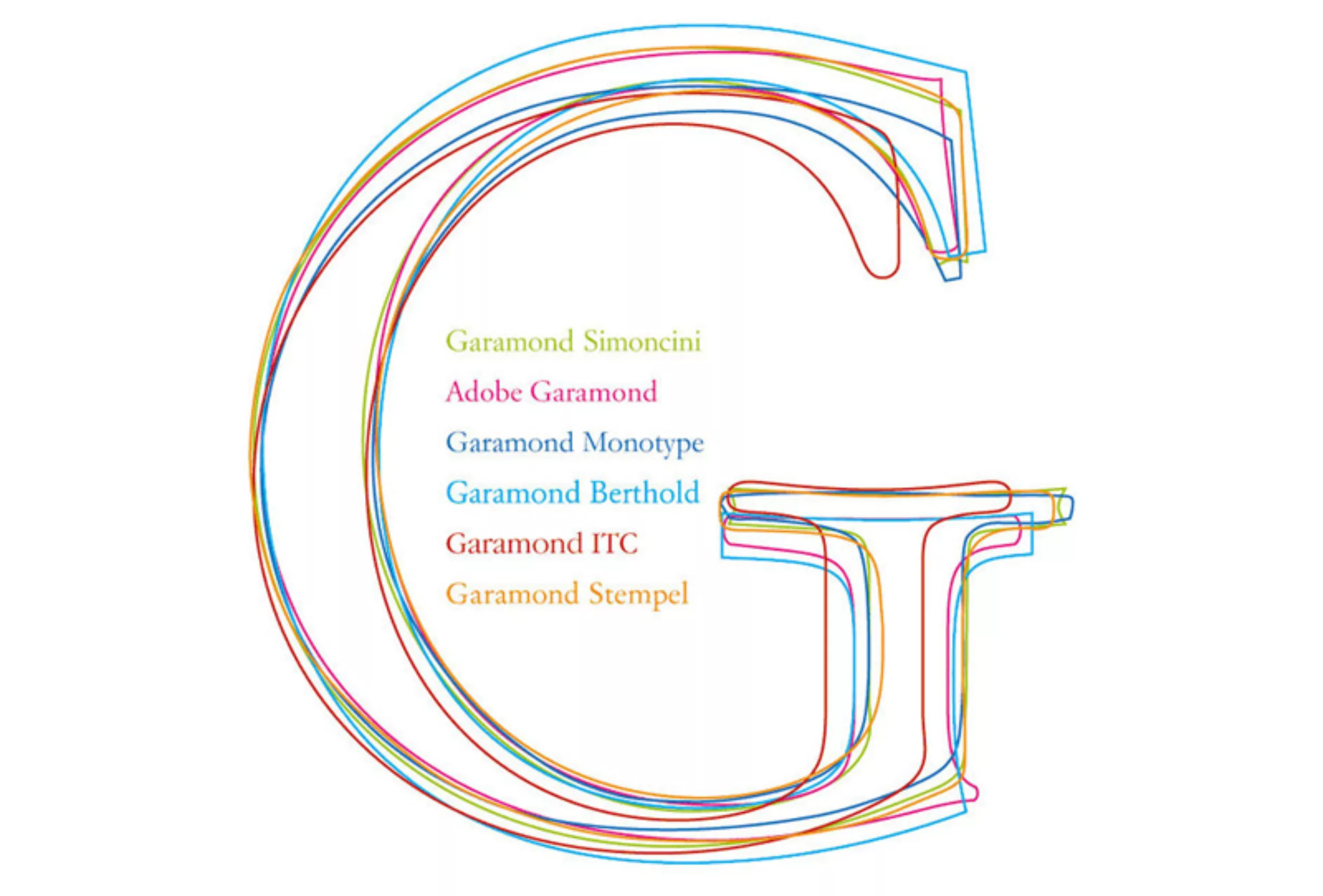 Évidemment tombé dans le domaine public, tout le monde peut créer sa version du Garamond. Il existe aujourd’hui au moins 6 versions, qui il faut bien dire, n’ont parfois plus grand-chose de commun. On peut commencer par citer la version de Francesco Simoncini (Simoncini foundry, Bologna, 1958), puis celle de la fonderie Stempel (devenu ensuite Linotype) en 1924, le Garamond de Fritz Max Steltzer pour la fonderie Monotype en 1922, le Garamond de Tony Stan en 1970 dessiné pour International Typeface Corp, et plus récemment celui d’Adobe, dessiné par Robert Slimbach en 1988.