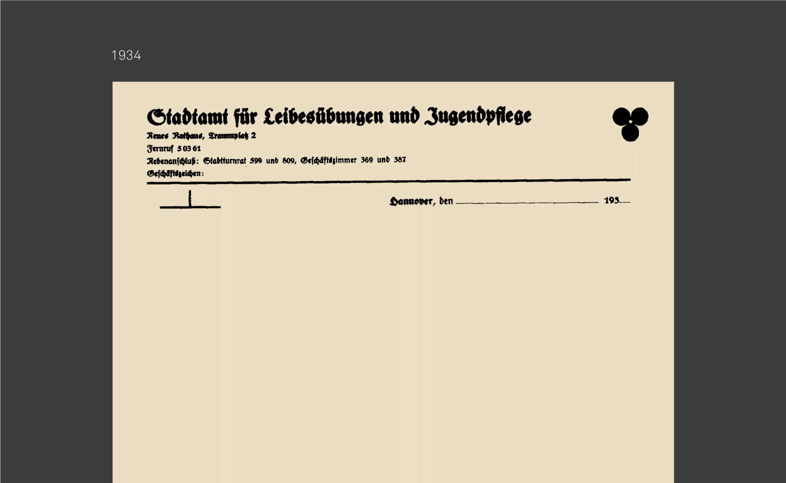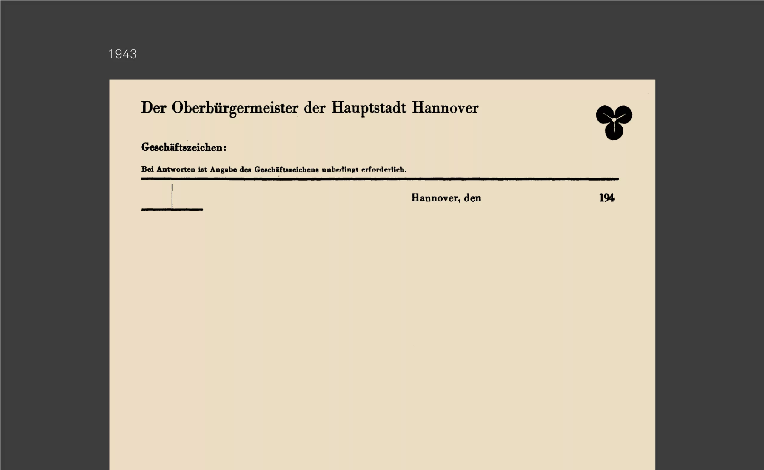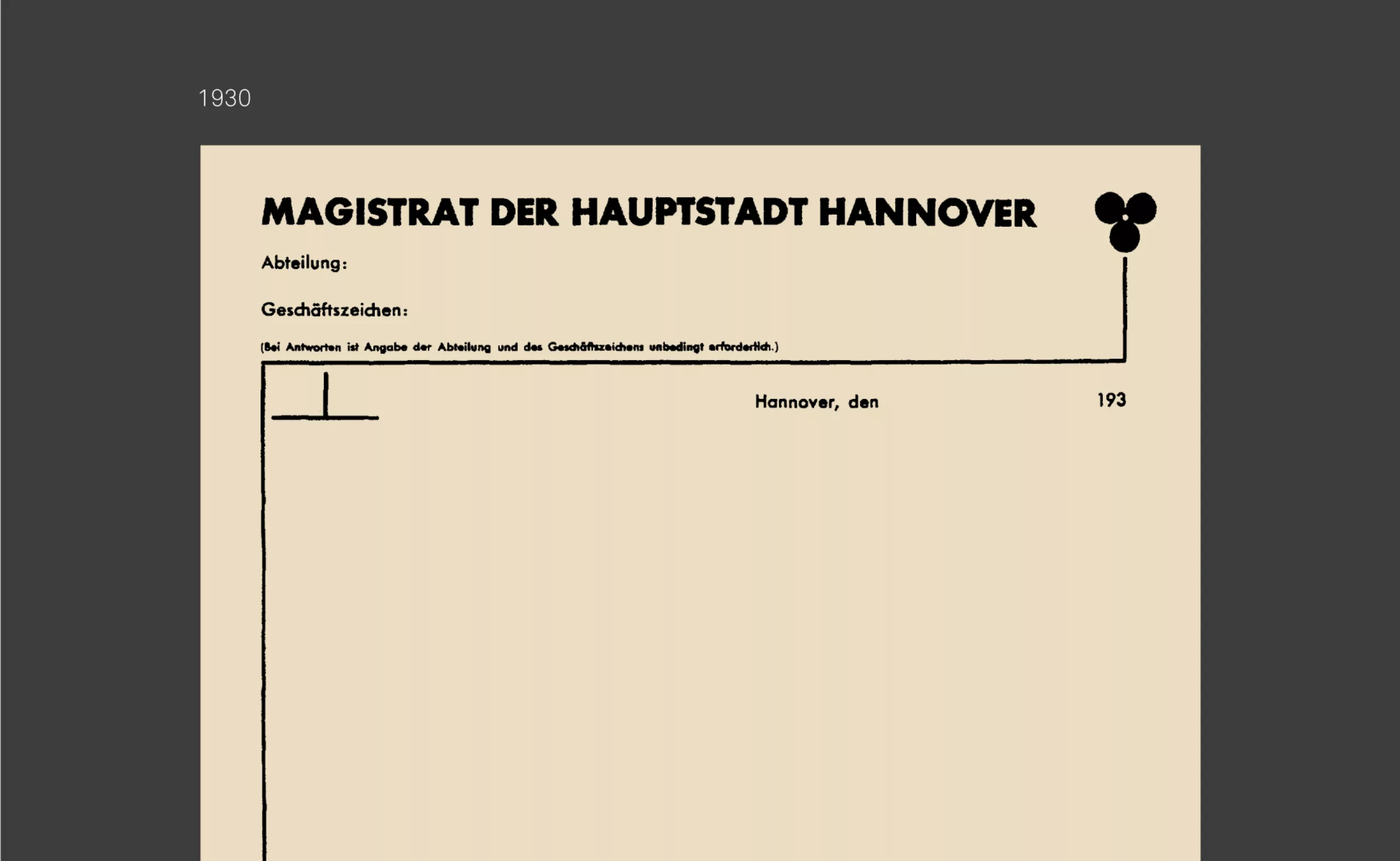 Après l’arrivée au pouvoir des nazis, la ville doit revoir toute son identité et remplacer le Futura par des caractères gothiques. On a retrouvé une archive rare du papier à lettres de la ville avant(1930) et après ce relooking nazi (1934). Chacun jugera de la régression en matière de lisibilité. En 1943, la municipalité reviendra à un caractère plus lisible de type antique, sans pour autant réemployer le Futura.