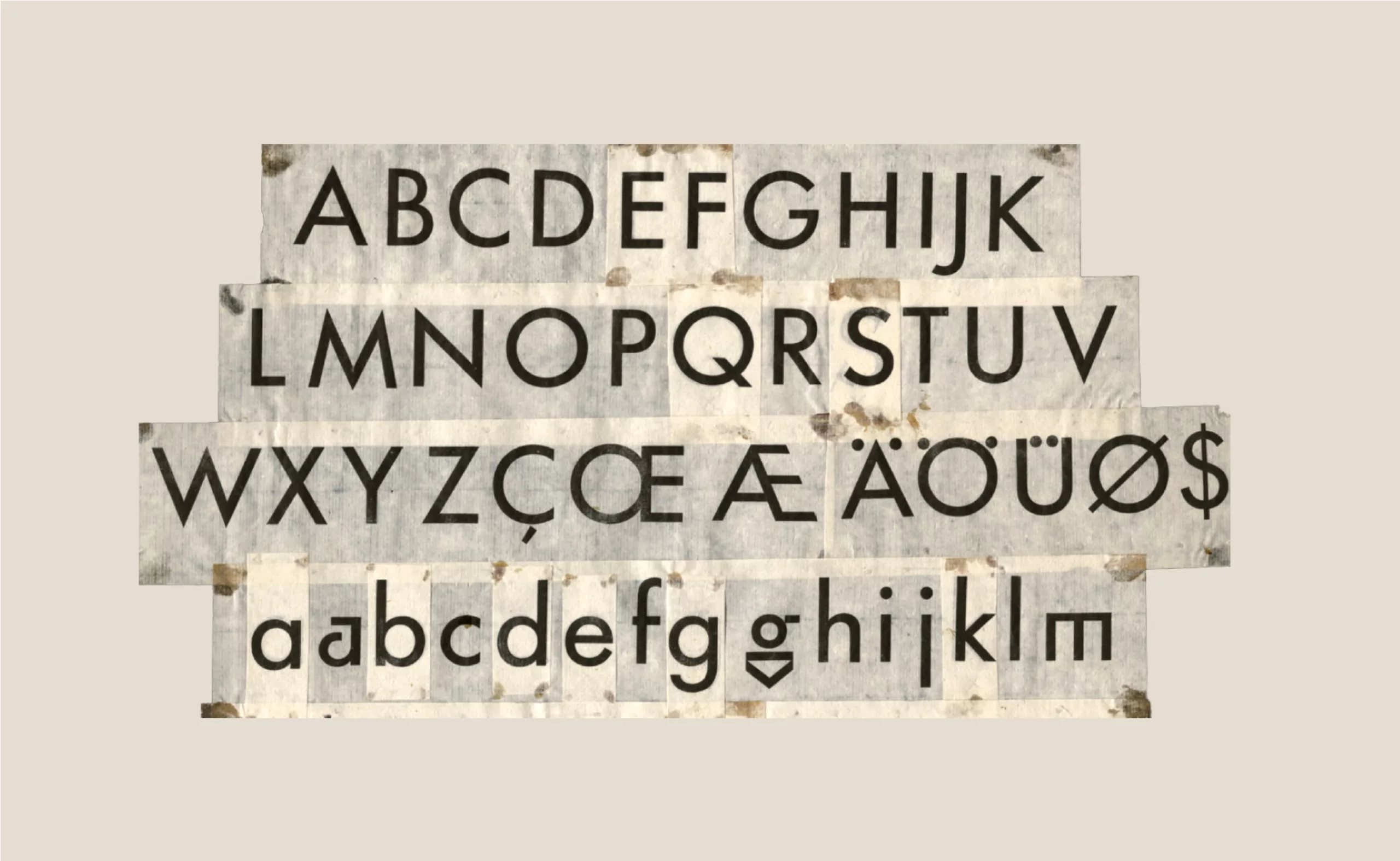 L’élaboration de cette police linéale nécessita tout de même à son créateur plus de deux ans. La première version était basée sur des formes strictement géométriques. On pouvait en effet retrouver dans chaque caractère des triangles isocèles, des carrés ou encore des cercles parfaits (cf. photo ci-dessous). Sa radicalité géométrique prenait le pas sur sa lisibilité et elle fut donc remaniée en prenant en compte des phénomènes optiques, pour arriver à sa version définitive de 1927. On peut cependant retrouver les caractères de cette première version dans l’Architype Renner, une police distribuée par la fonderie britannique Foundry.