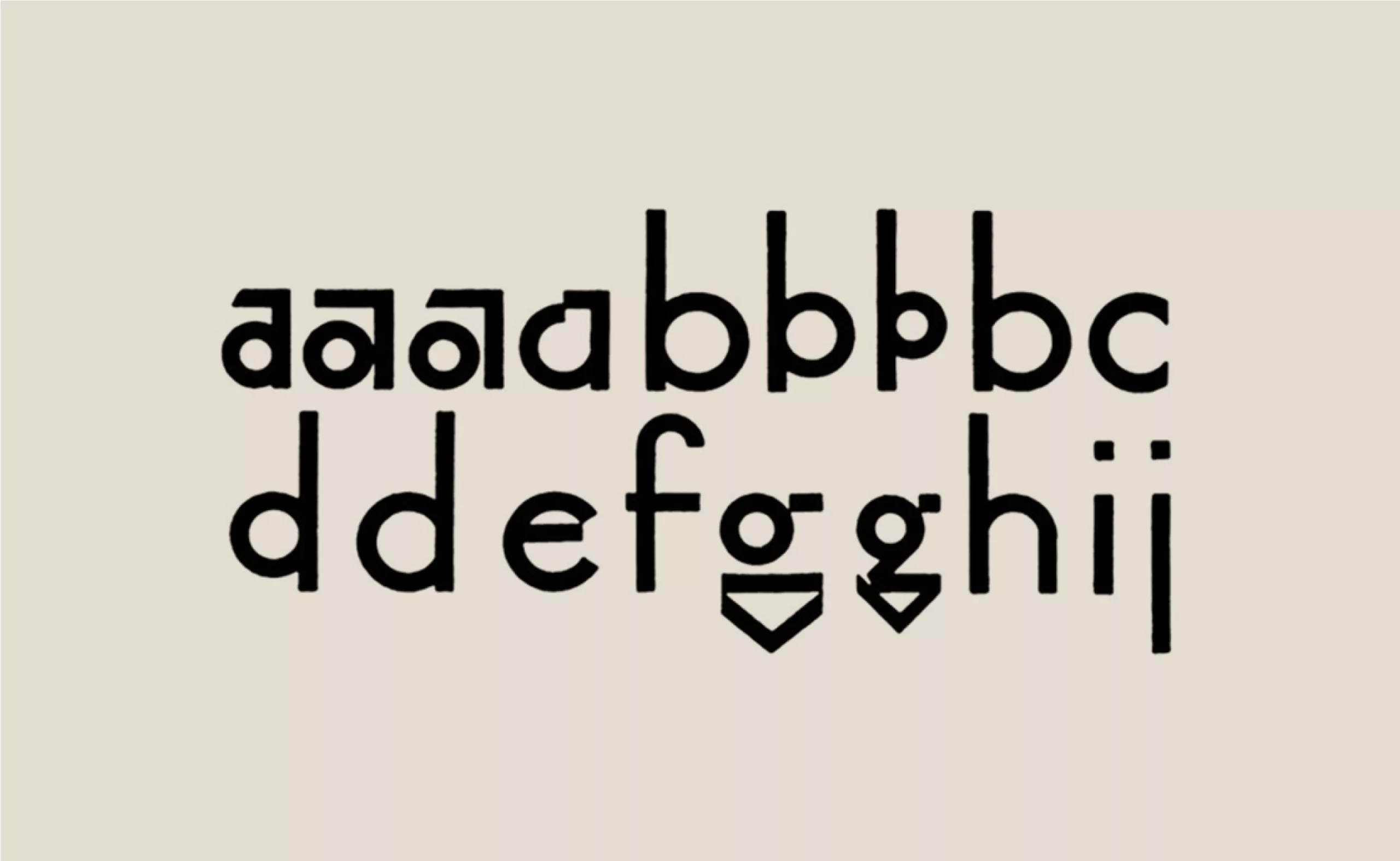 L’observation des minuscules va aussi permettre d’aller à l’encontre de l’idée reçue que le Futura serait l’archétype de la linéale géométrique. Dans ce débat de spécialiste qui oppose les tenants d’une tradition typographique humaniste aux apôtres de la simplification de l’écriture par la géométrie, Paul Renner répond en proposant une solution inédite. D’un côté le dessin des minuscules est “géométrisées”, effaçant l’empreinte du geste de la main (la tradition humaniste), mais de l’autre côté, il crée de multiples caractères alternatifs, reprenant cette idée d’une écriture mouvante et changeante où l’on retrouverait ces légères variations de la graphie d’une même lettre, comme dans l’écriture manuscrite.
