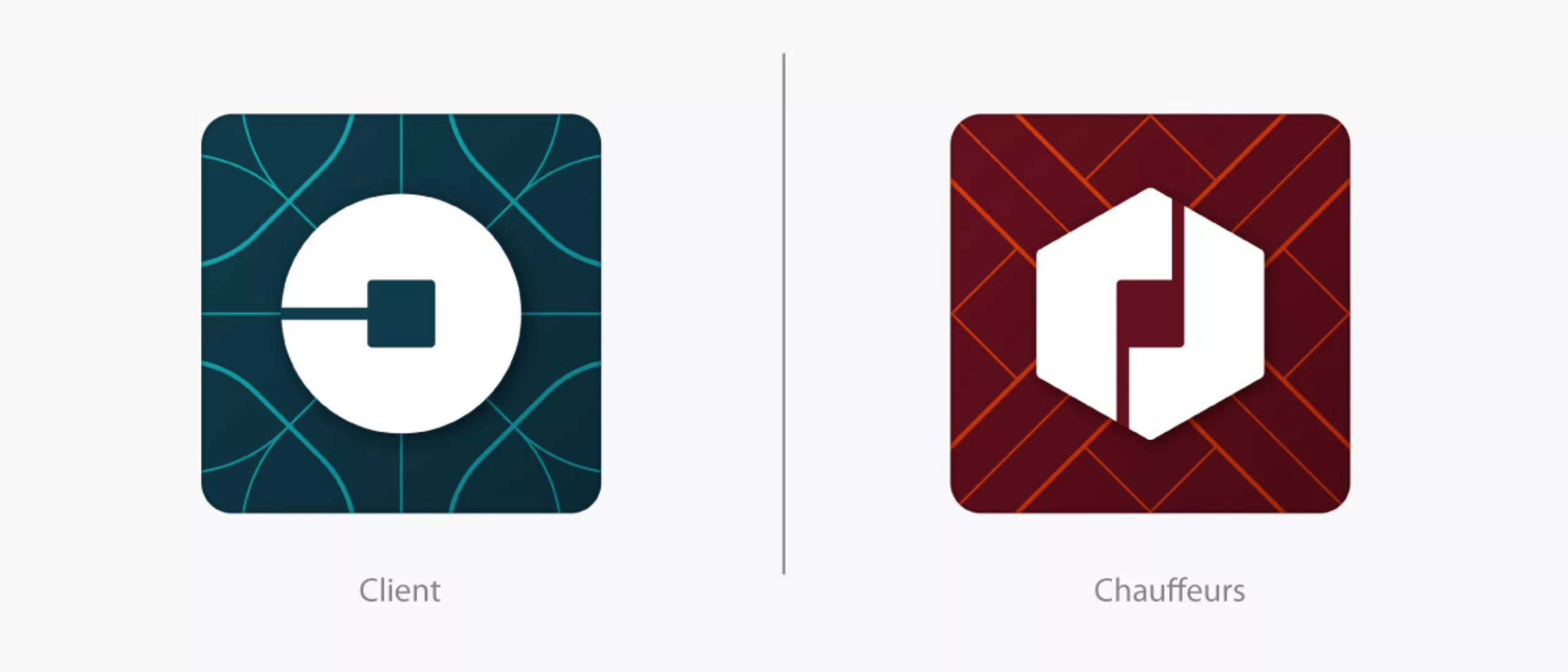 “L’un des grands changements après quelques années d’existence est qu’Uber ne transporte plus uniquement des personnes. Nous transportons désormais des biens, des repas et bientôt peut-être beaucoup plus… de quoi créer beaucoup d’applications, avec pour chacune une icône différente; il fallait toutefois définir une approche commune pour toutes les connecter. Pour ce faire, nous en sommes revenus à notre histoire de “bits” et d’atomes. Vous découvrirez que les deux icônes dédiées aux chauffeurs et aux utilisateurs ont le “bit” au centre, des couleurs locales et des motifs en arrière-plan. Cette structure permettra de développer facilement des icônes différentes pour de nouveaux produits au fil du temps.”