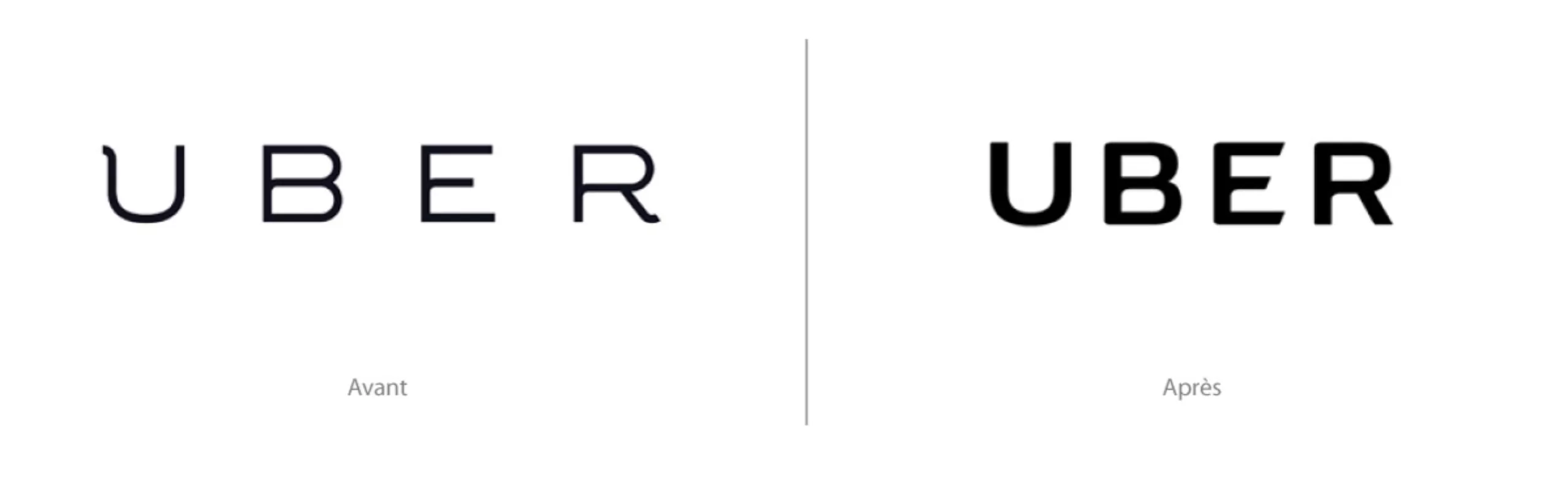 Au premier regard, on découvre que la typographie a pris quelques grammes de bold. Probablement à force de ne plus aller au travail à pieds. Exit les petits empâtements biscornus. Uber est devenu sérieux ! Même si on retrouve un angle soixante-huitard qui se cache dans son dessin de manière subliminale. Un reste de son adolescence subversive probablement.