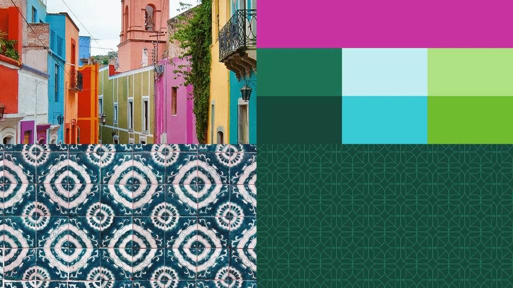 Comme le petit carré noir, il est un peu trop “froid”, il fallait introduire de la couleur. Alors on prend des cartes postales et on pipette quelques couleurs. Je vous laisse deviner les destinations.