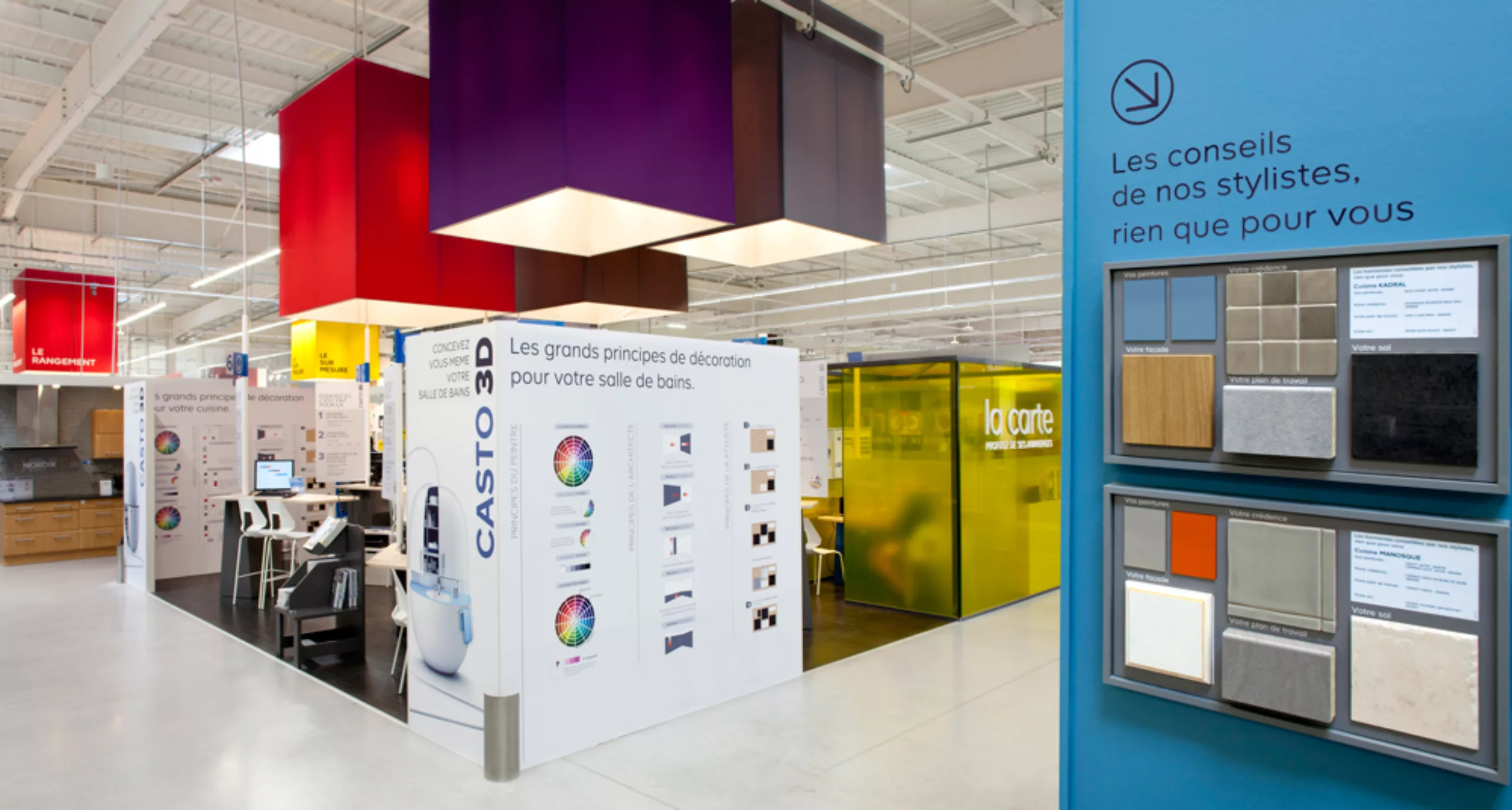 J.-P.C. : Nous avons développé un esprit “Ville”, en ce sens que nous avons créé 5 “quartiers” qui suivent la vie d’un projet : Village décor, Place du Marché, Grande Avenue, les Terrasses et les Quais. L’idée principale est que Castorama s’adresse avant tout à des néophytes, puisque la plupart des “pros” du bricolage et les bidouilleurs avertis vont de toutes façons se fournir chez des grossistes. Ainsi, vous trouverez dans les magasins, au coeur des rayons, des kiosques nommés “Lancez-vous”, avec des démonstrations de produits et de techniques, qui vous permettront d’essayer et d’apprendre. Des espaces de démonstration participative dans lesquels vous pourrez par exemple apprendre en pratiquant à poser un mètre carré de carrelage, avec un vendeur qui vous expliquera comment faire, en dédramatisant une technique qu’un néophyte pourrait appréhender.