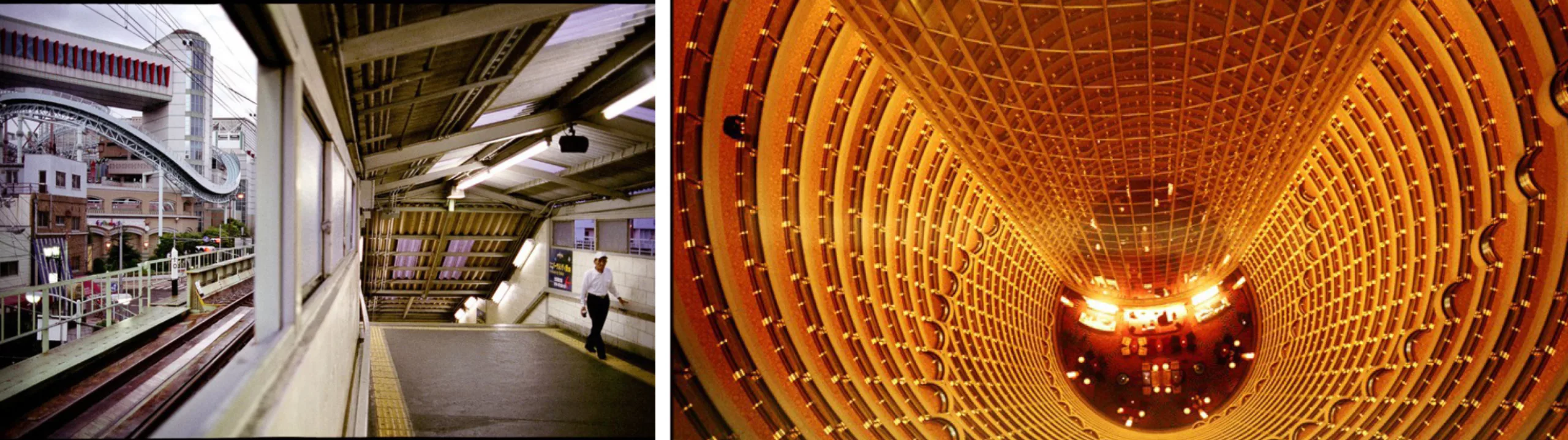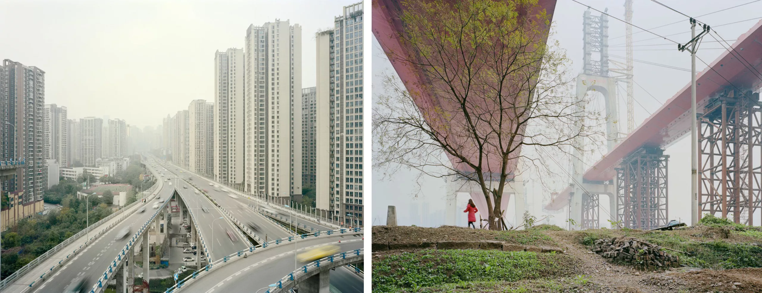Avec son regard d’architecte il compose des images aux allures de planches de bande dessinée futuriste, comme ici en Asie, où les lignes de béton dessinent des paysages déshumanisés :