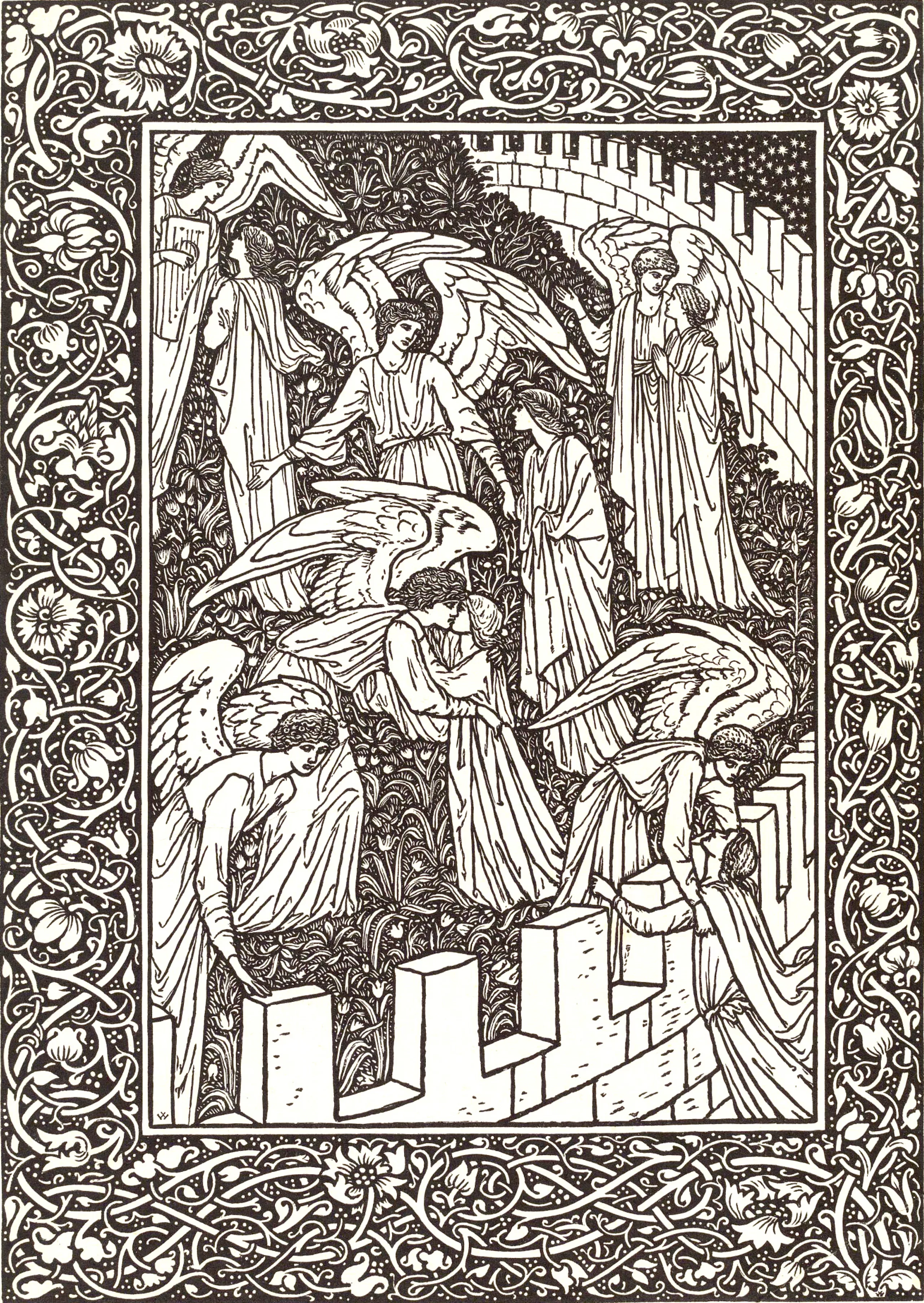 William Morris est passionné du Moyen-Âge et de l’époque préraphaélite dont il côtoie plusieurs adeptes et artistes, dont son ami Edward Burne-Jones. Dans son roman La carte et le territoire, Houellebecq écrit : « l’idée fondamentale des préraphaélites, c’est que l’art avait commencé à dégénérer juste après le Moyen Age, que dès le début de la Renaissance il s’était coupé de toute spiritualité, de toute authenticité, pour devenir une activité purement industrielle et commerciale. »