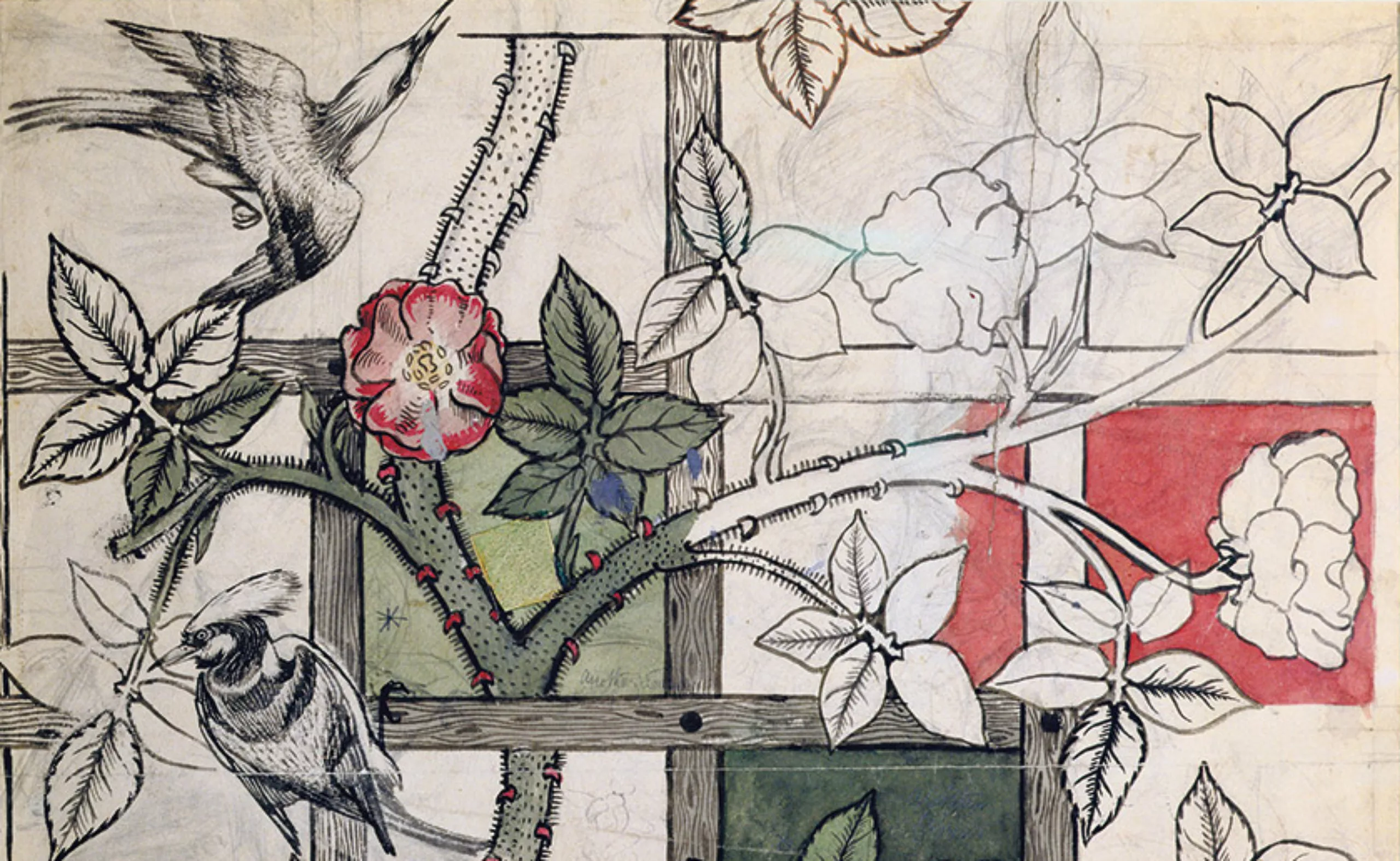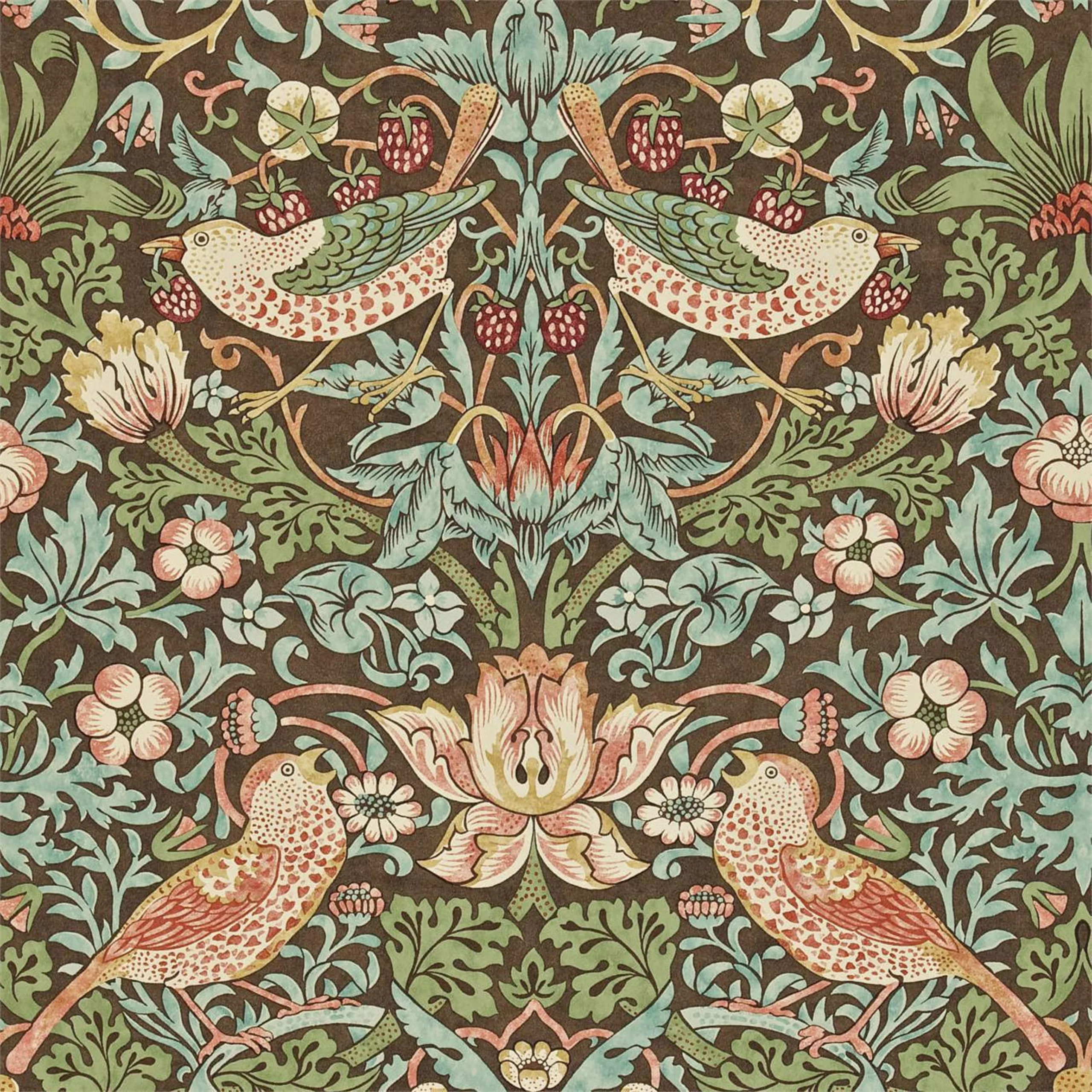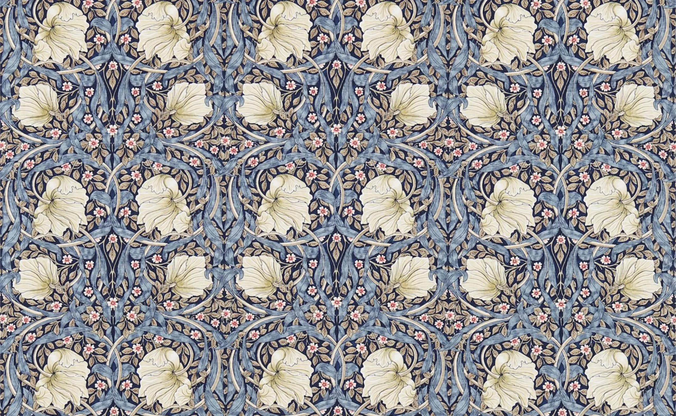 À force de sillonner la forêt dans son enfance, son “premier maître” (G. Vidalenc), William Morris finira par l’introduire dans les maisons victoriennes d’Angleterre grâce à ses motifs picturaux. Designer d’intérieur, ses créations graphiques de papiers-peints, carrelages, vitraux ou tissus dépeignent un Éden sauvage et luxuriant où se mêlent, à la manière des enluminures moyenâgeuses, feuilles, baies et oiseaux locaux ou exotiques. « Premier décorateur des Temps modernes », selon l’historien Roger-Henri Guerrand, mais aussi poète, écrivain et militant, son travail inspiré de la nature et conçu par l’homme s’oppose au capitalisme industriel de masse de la fin du XIXe siècle. Il continue de faire sens aujourd’hui.