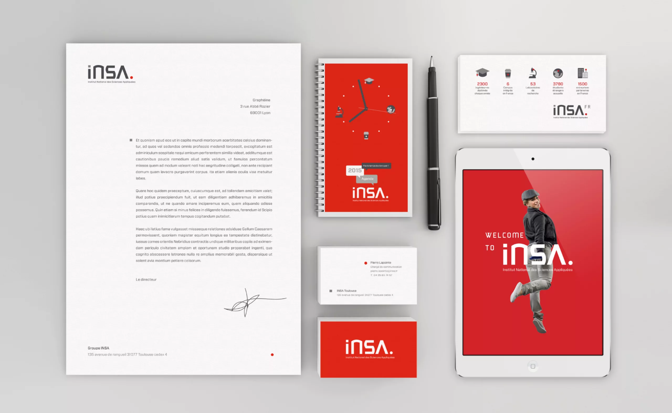 Il s’agissait de concevoir une charte graphique pour les 6 écoles du Groupe INSA.