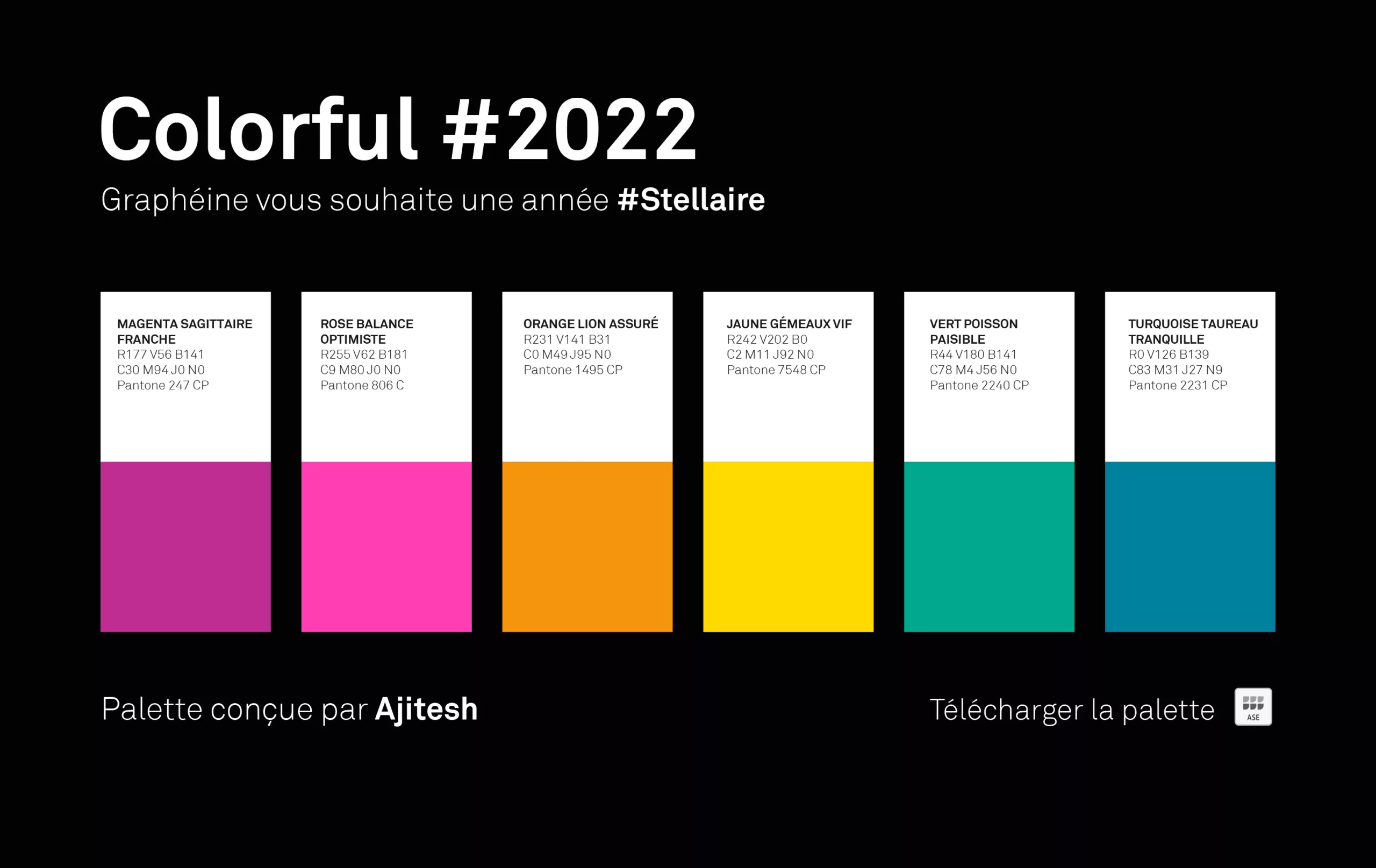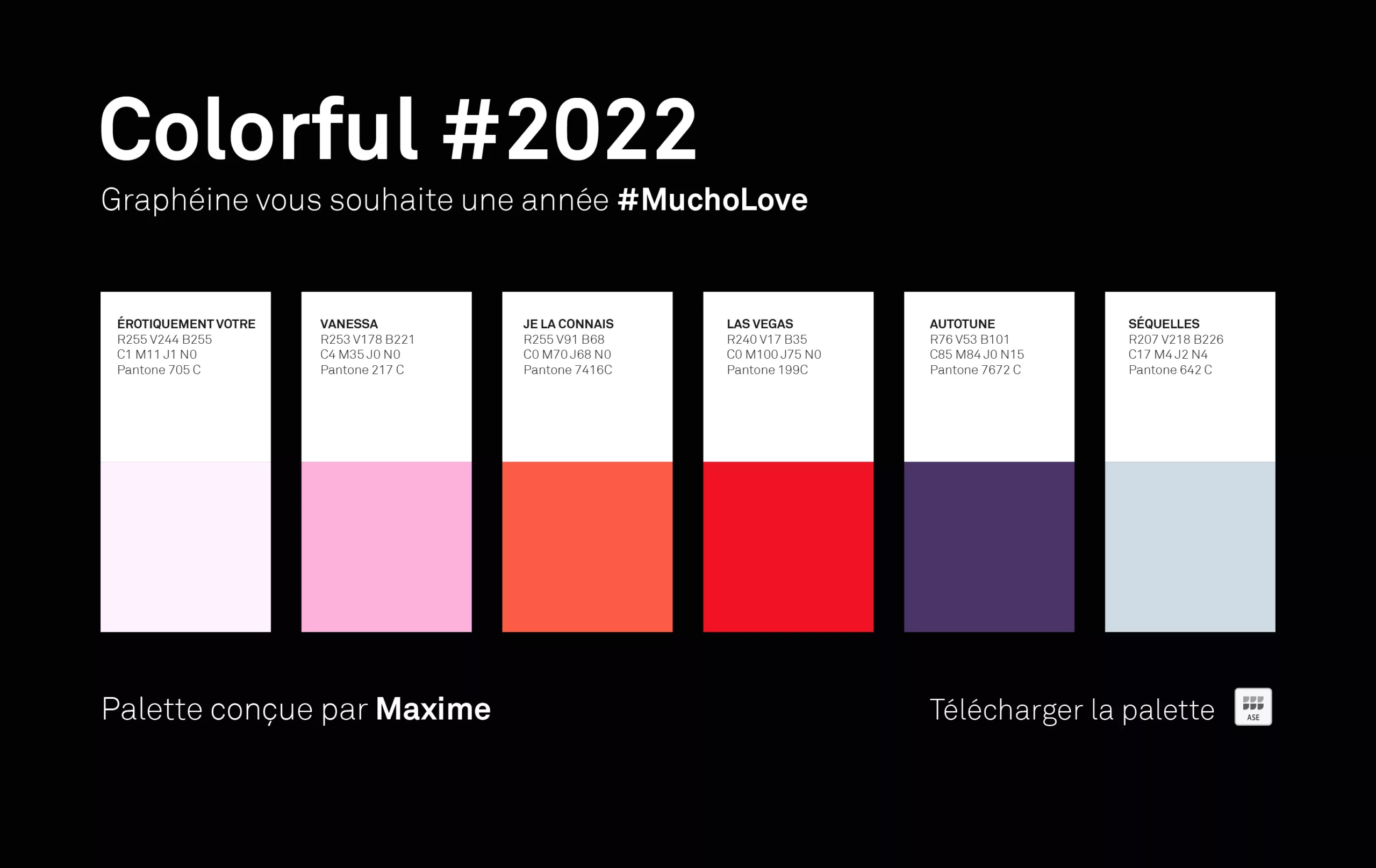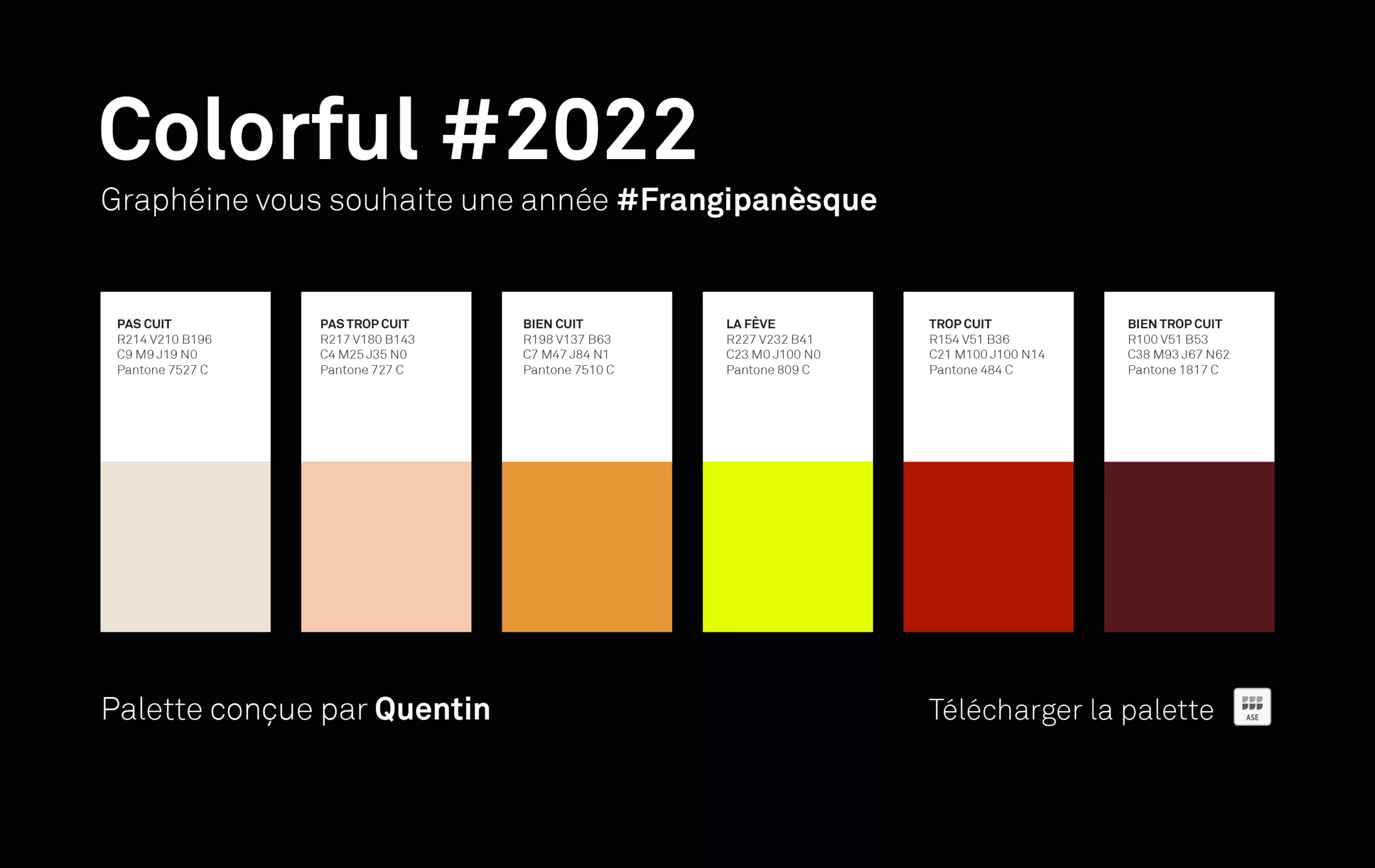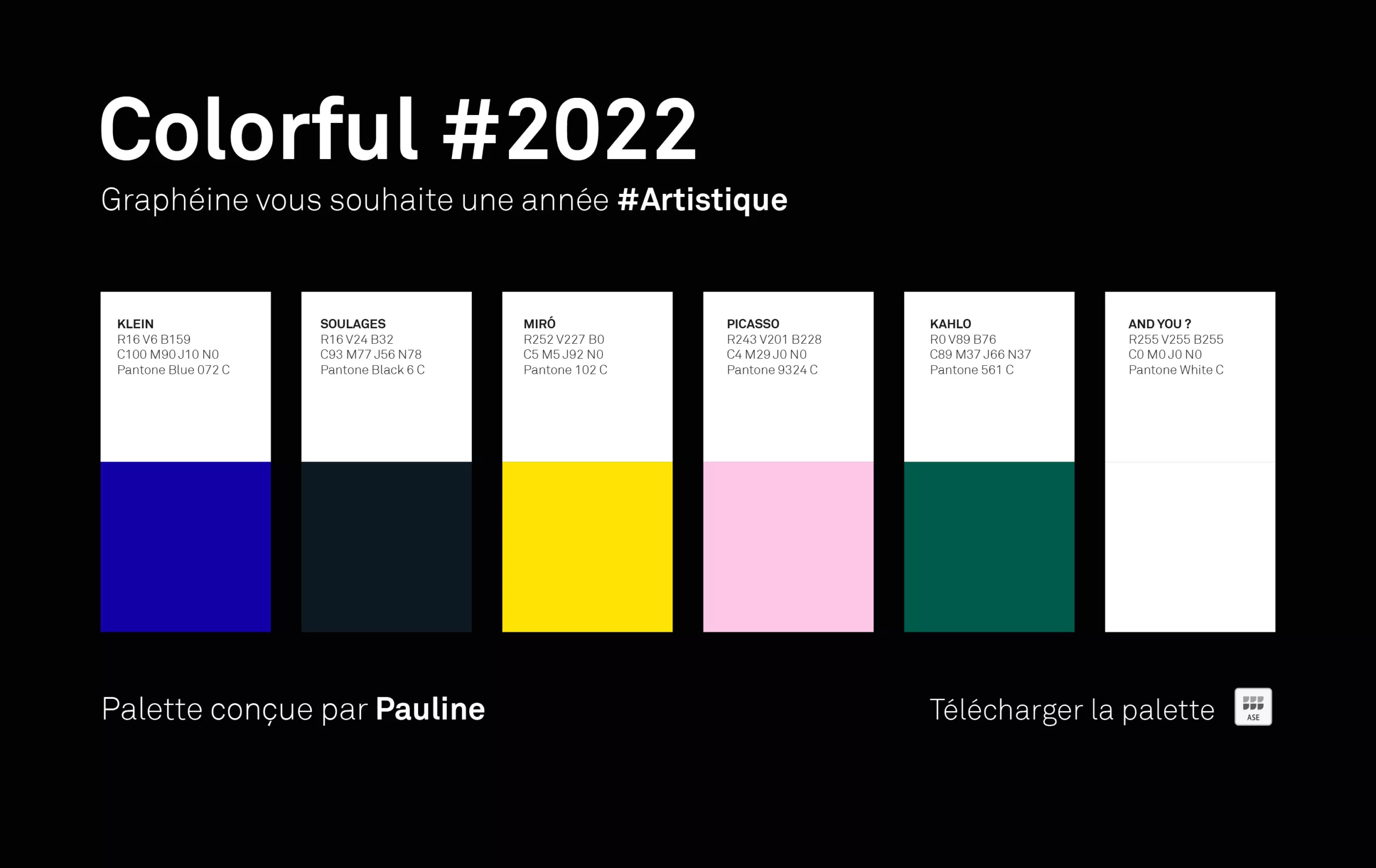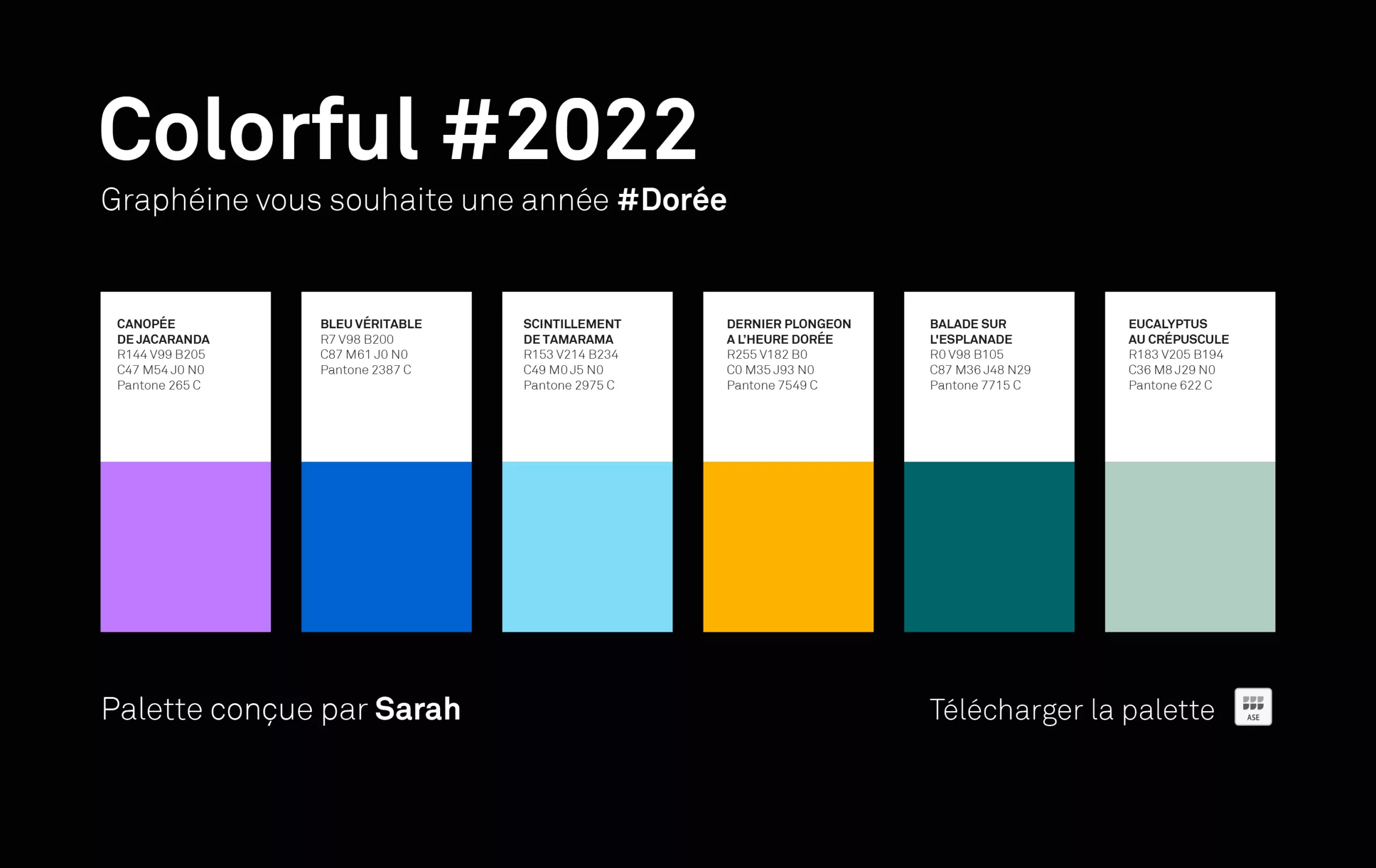 Libre à vous de les rajouter dans votre palette de couleurs Adobe, et de partager vos nuances pour 2022 avec le #Grapheinemetdespalettesdansmavie sur les réseaux.