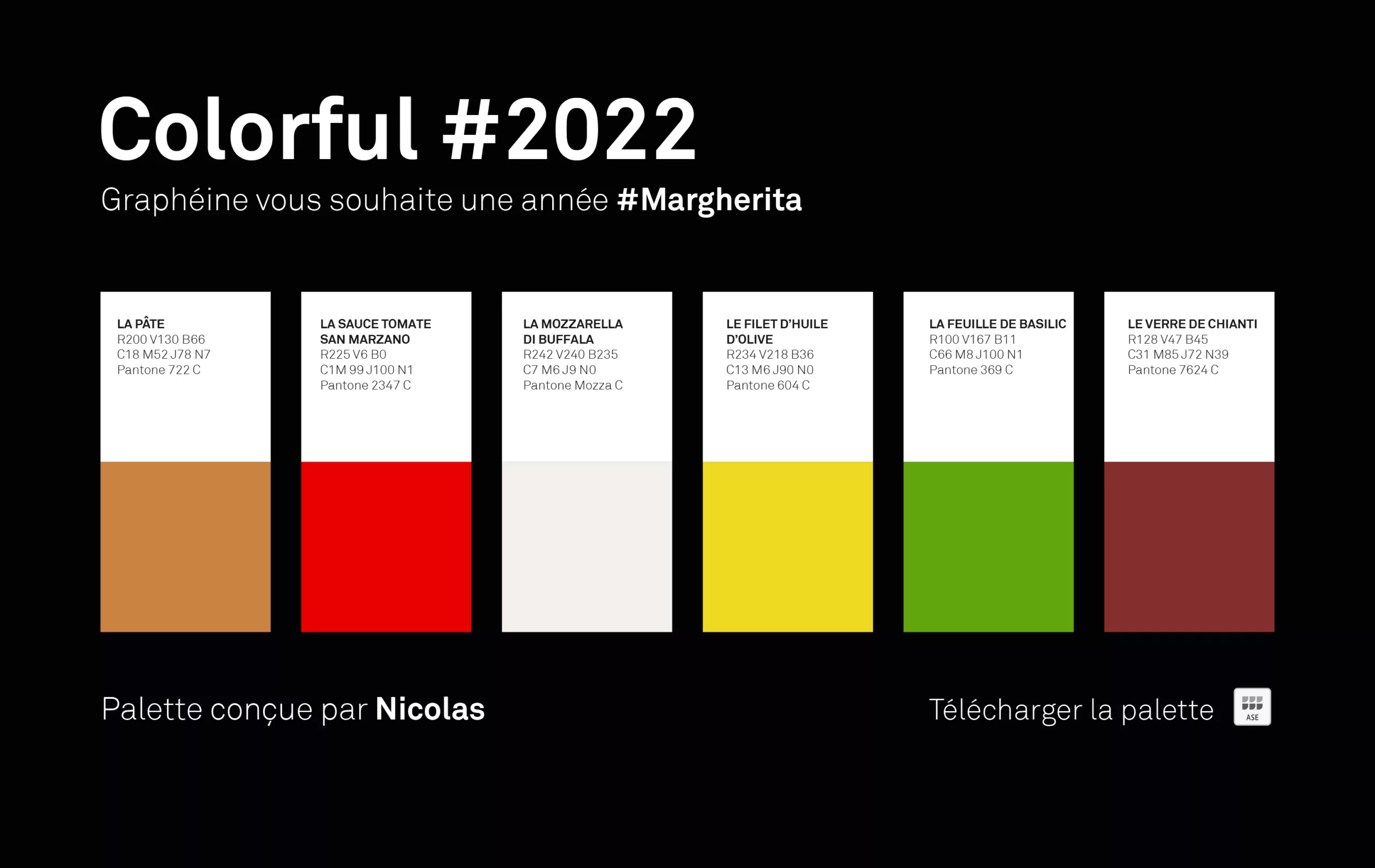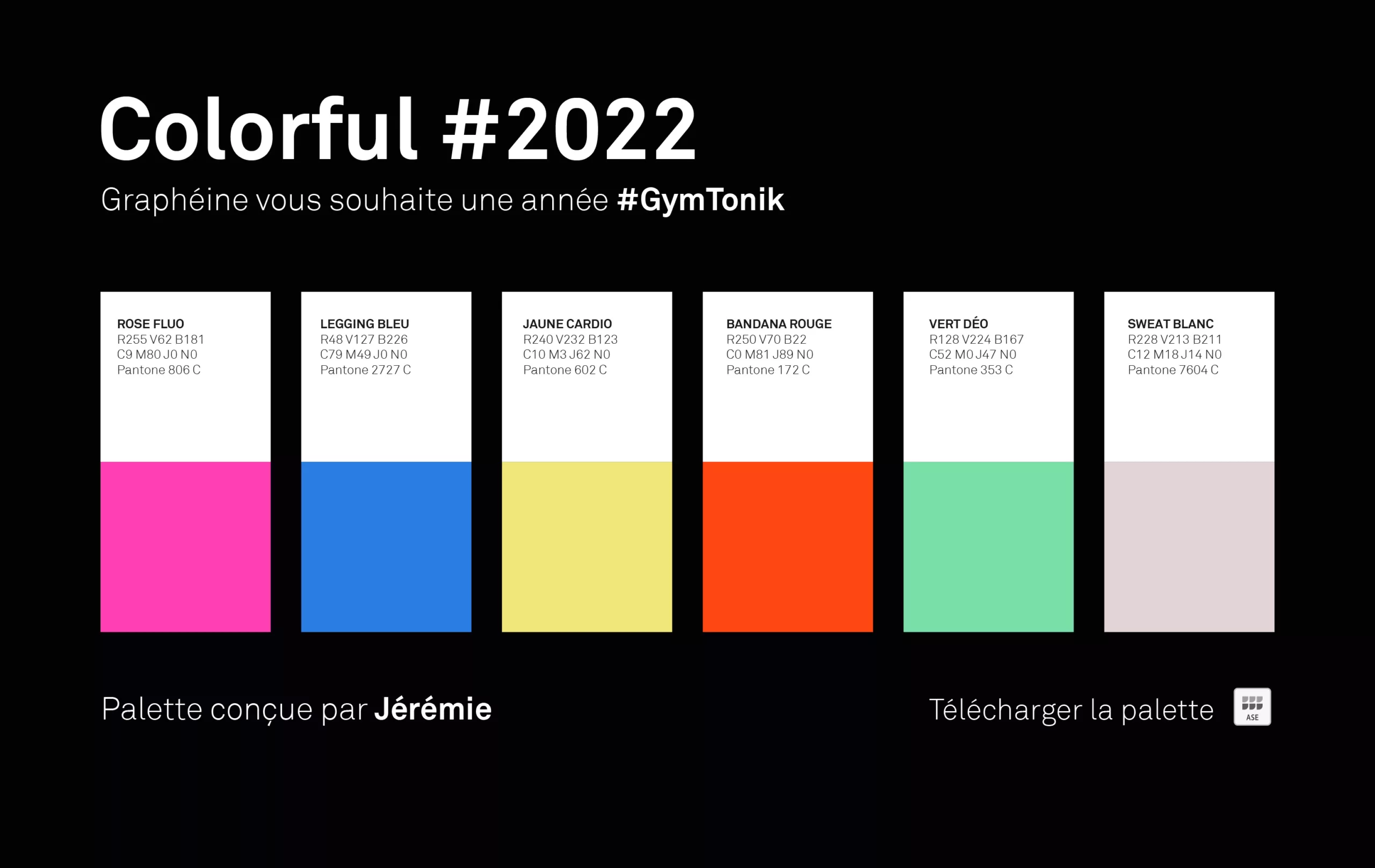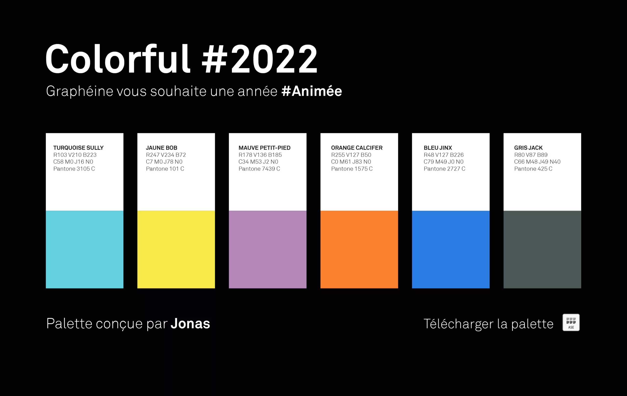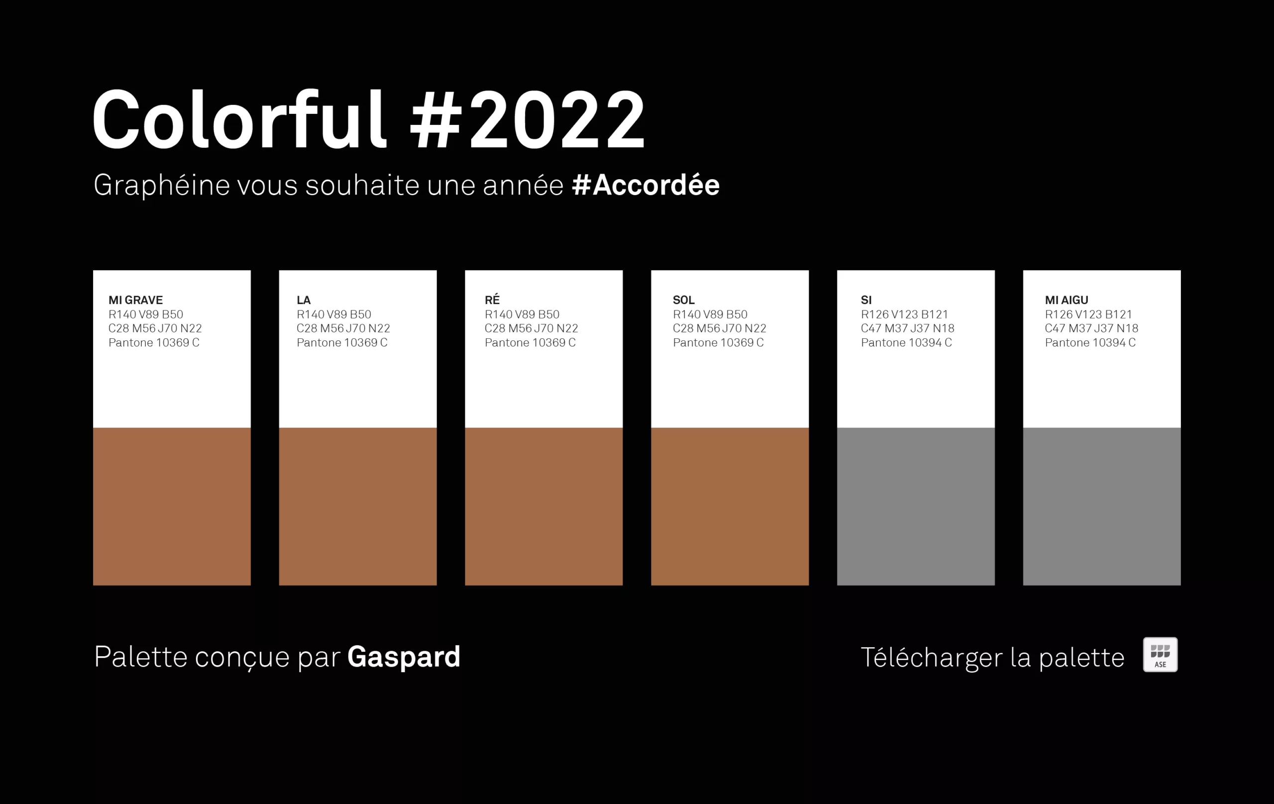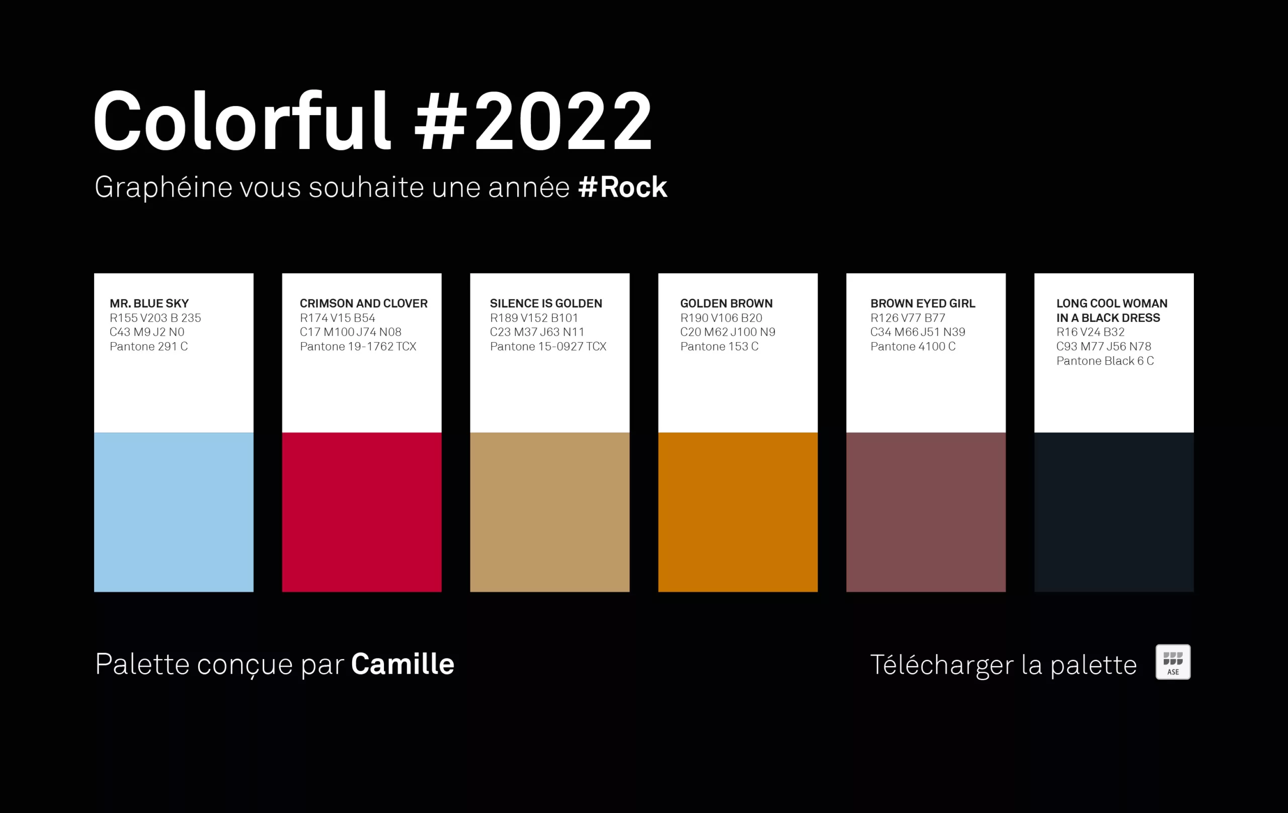 Libre à vous de les rajouter dans votre palette de couleurs Adobe, et de partager vos nuances pour 2022 avec le #Grapheinemetdespalettesdansmavie sur les réseaux.