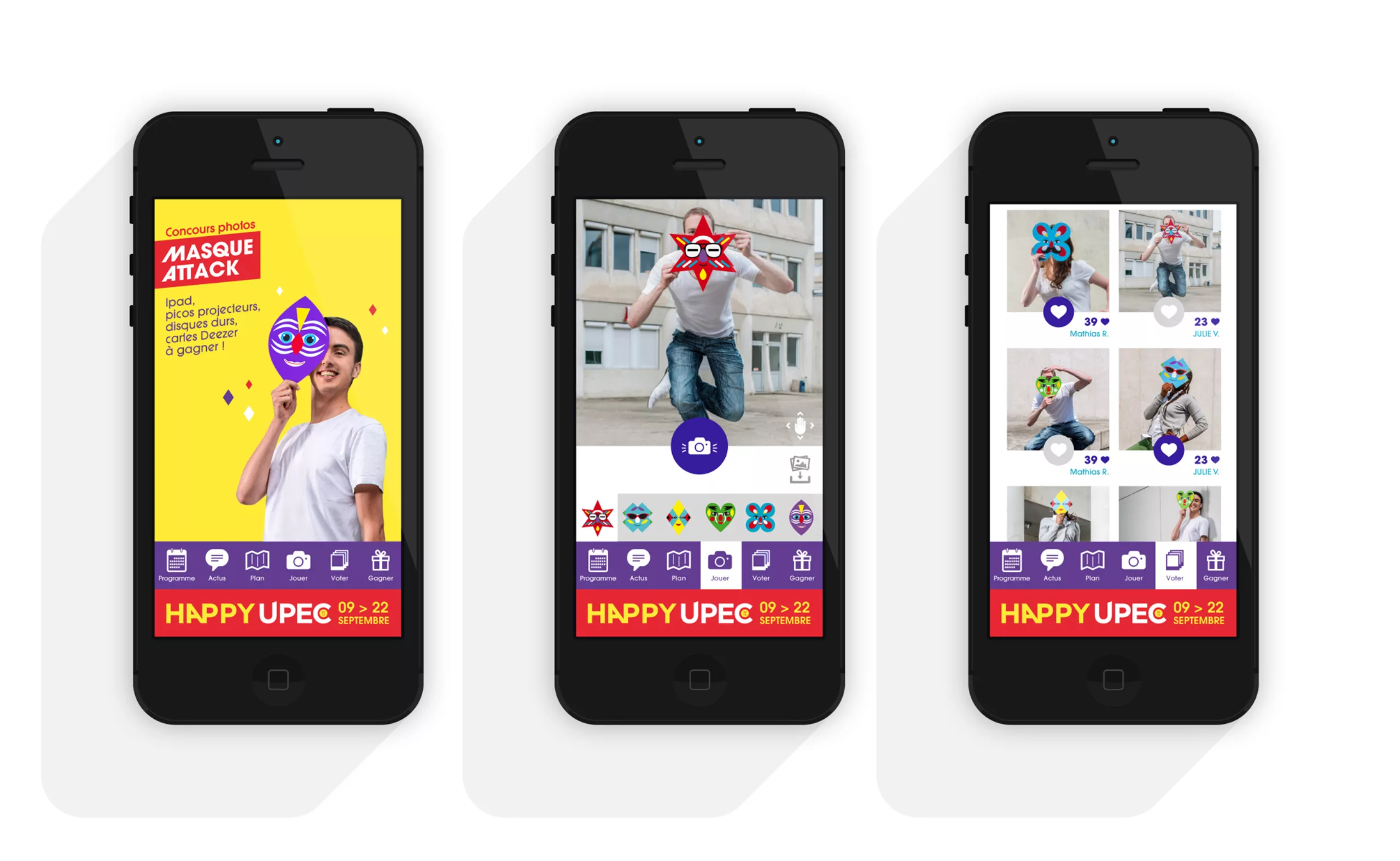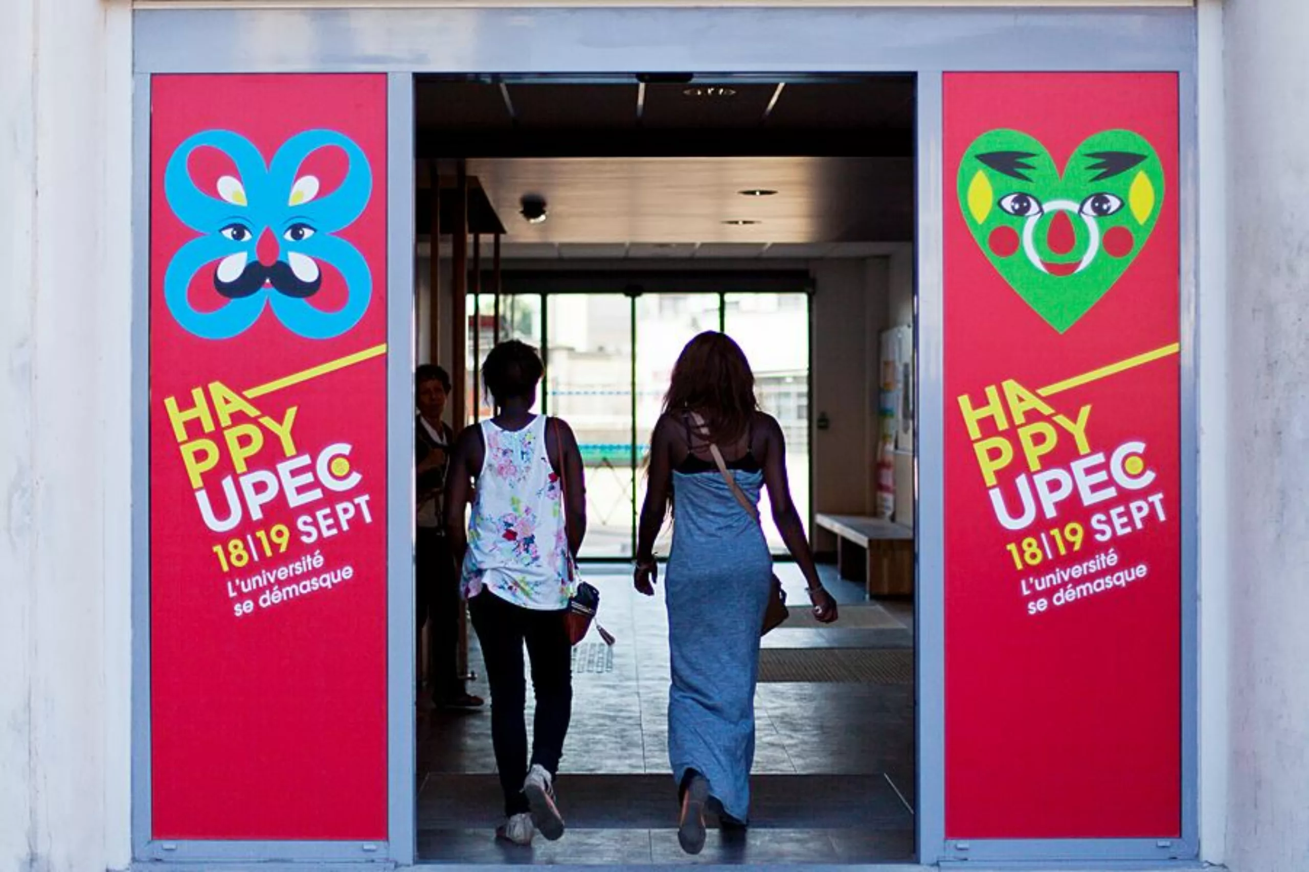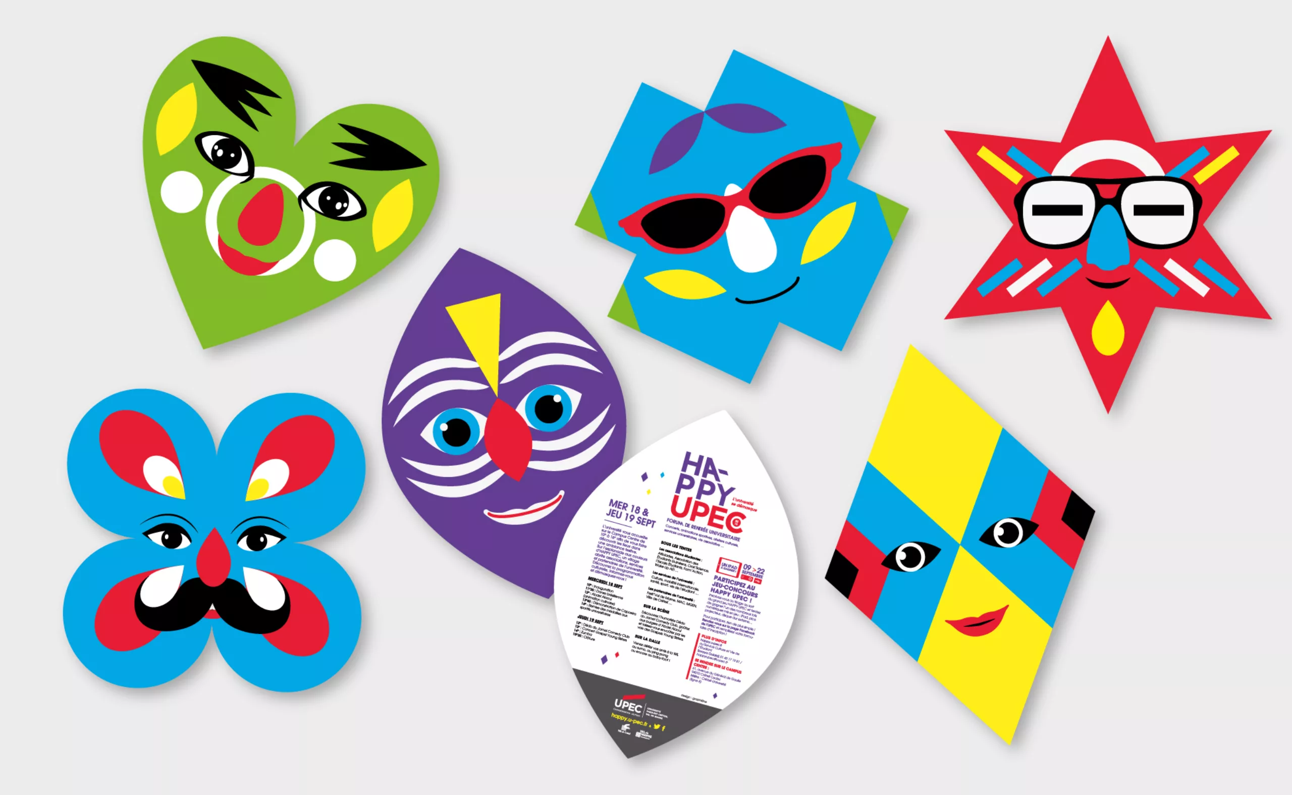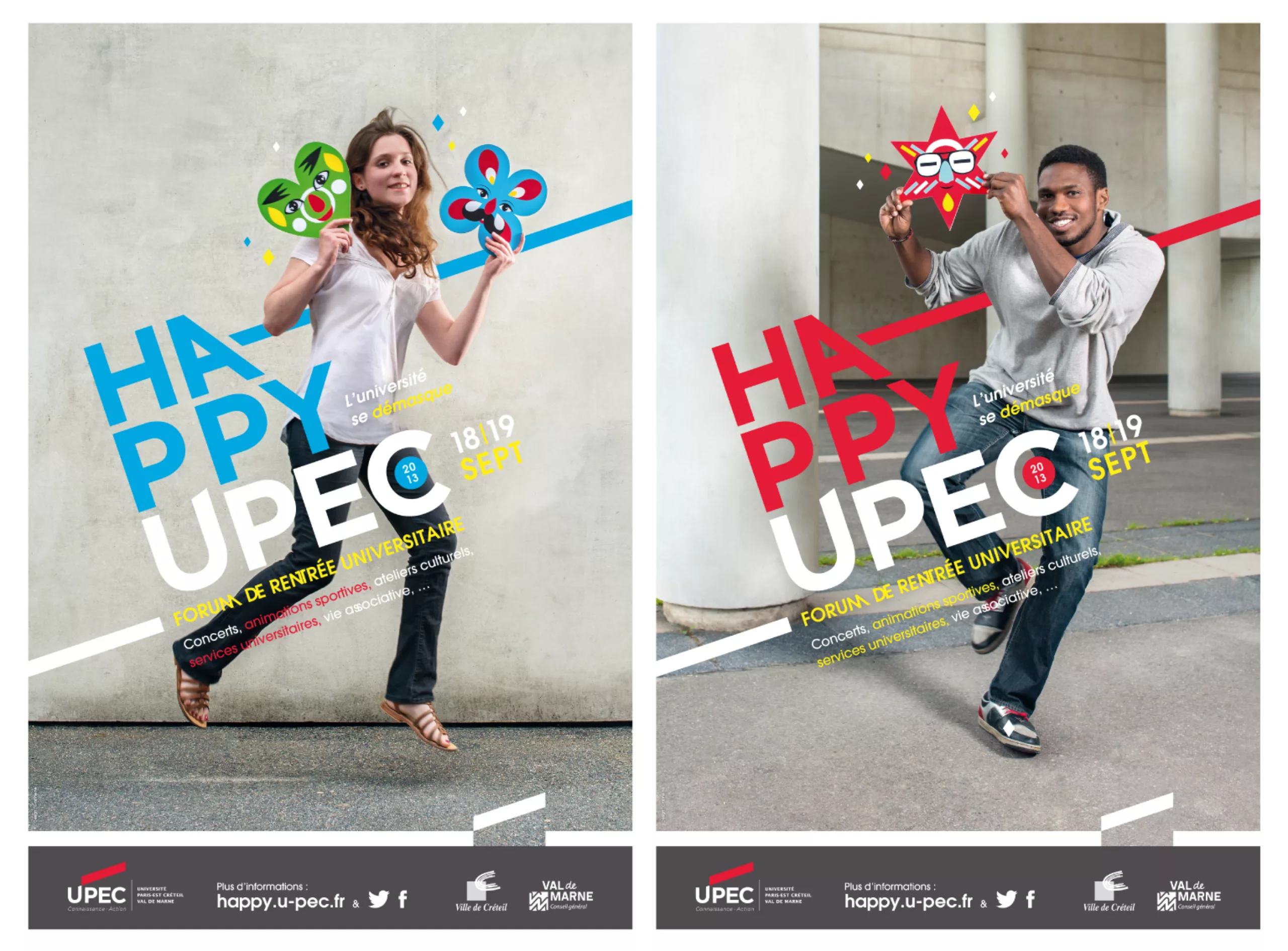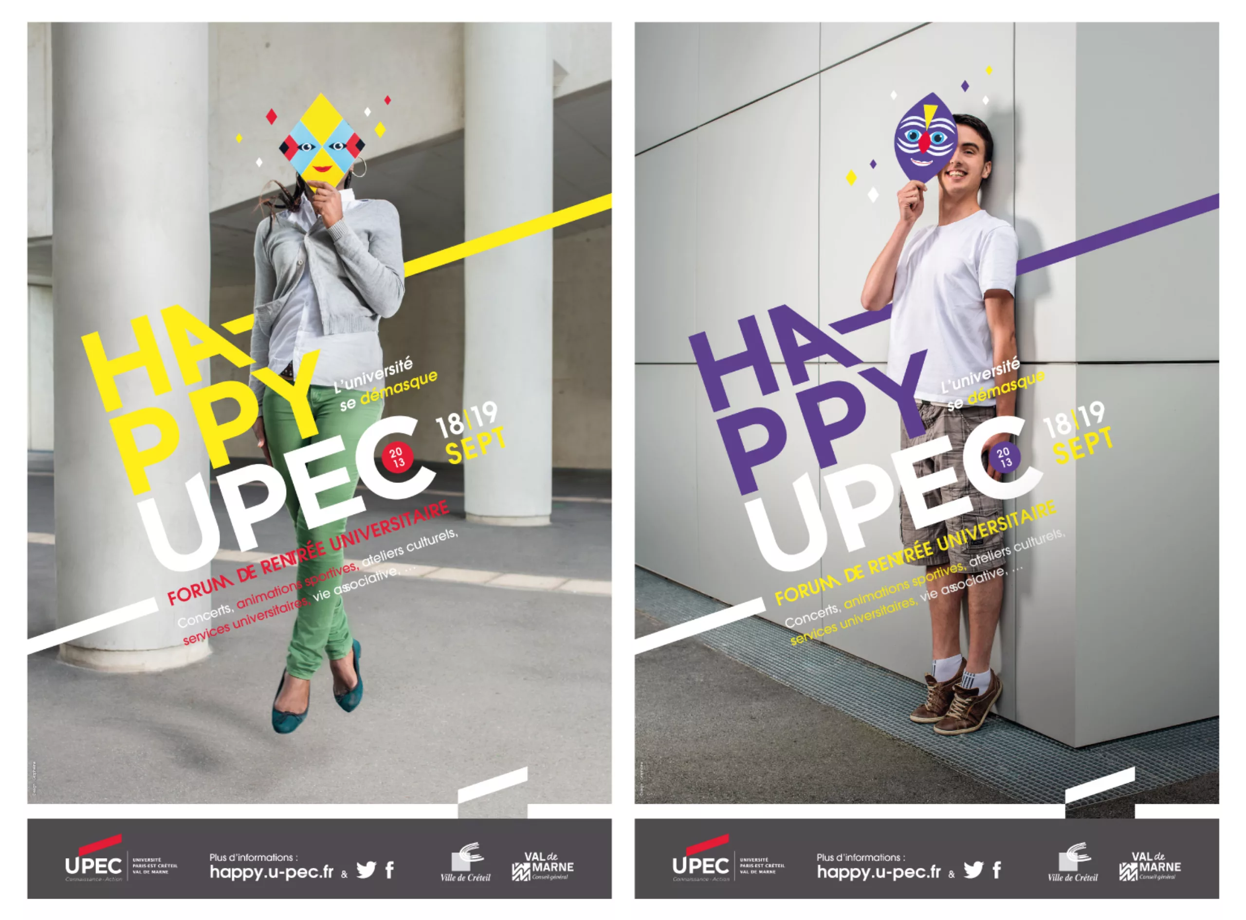Voici la campagne de communication universitaire des journées « HAPPY-UPEC », le forum de rentrée de l’Université Paris-Est Créteil. Dans la continuité de la campagne de communication de l’année précédente, nous proposons de mettre en scène des étudiants portant des masques résolument «HAPPY».