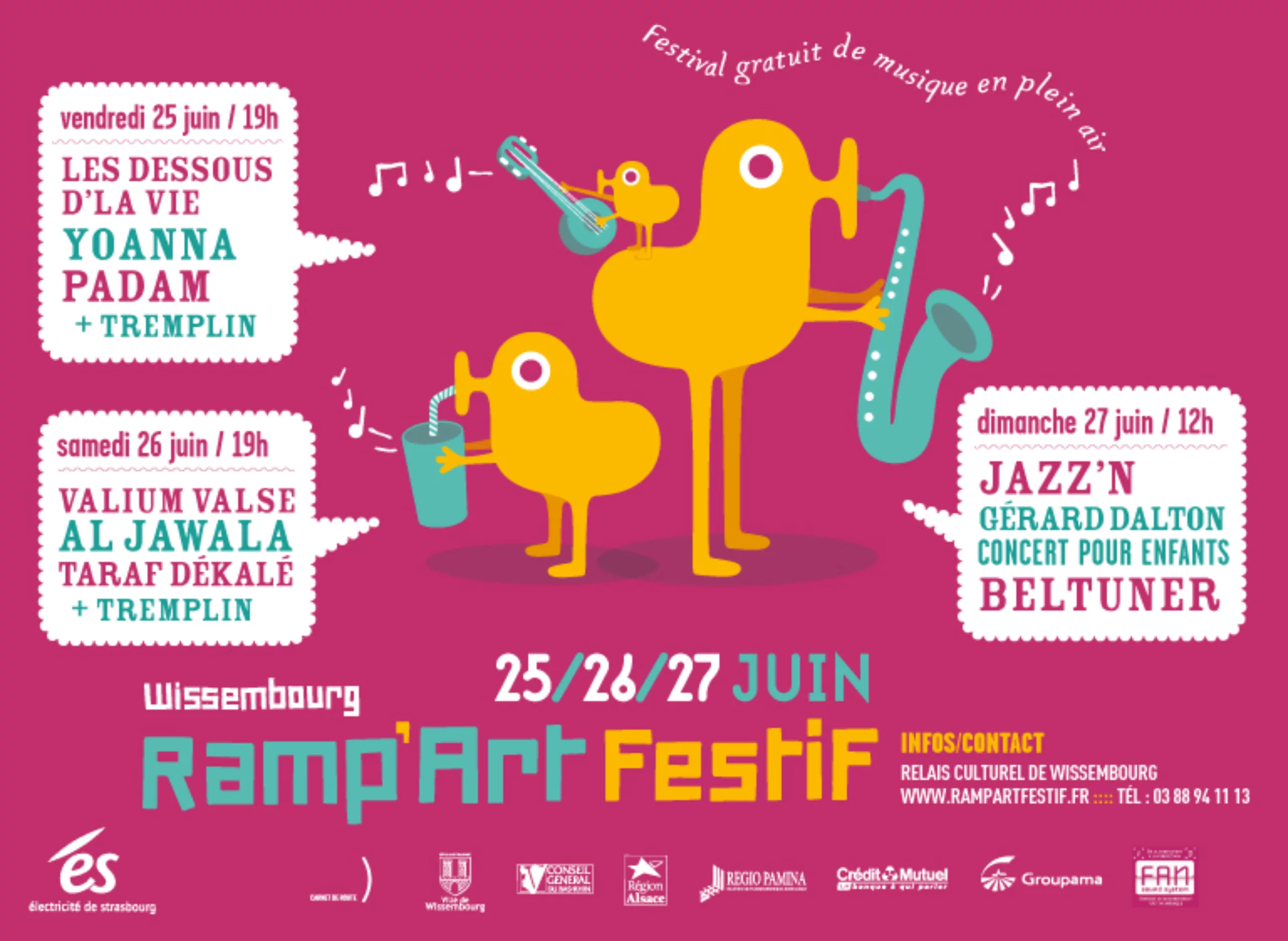 Cette année, pour le nouveau visuel de “Ramp’art festif”, il s’est passé quelque chose d’étrange… Ce qui était au départ des poussins ou des canards… on a jamais trop su en fait ?! Bref ça n’a plus vraiment d’importance vu la dégaine qu’ils sont en train de prendre ! Regardez moi ces pieds et ces bras ridicules… et je ne vous parle pas de l’espèce de trompe qu’ils ont à la place du bec !!! Qui a pondu un truc pareil ? …. Ah !