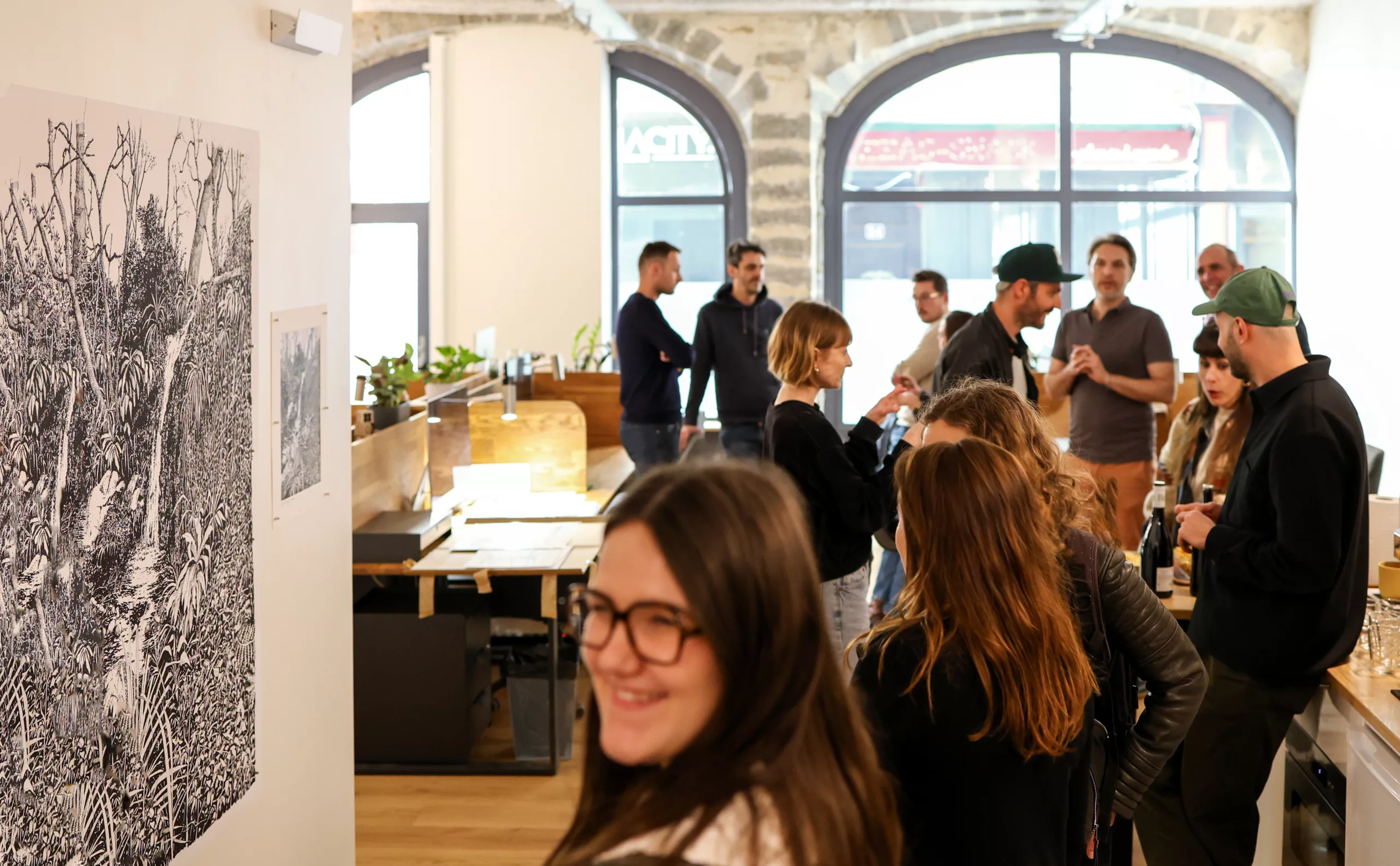 Voici le compte rendu de notre premier événement organisé dans nos nouveaux bureaux Lyonnais. Pour cette rencontre, Graphéine a choisi de recevoir Klervi Blanchard (ancienne graphiste à Graphéine), Marion Afriat, Angélique Boucé (documentaristes) et Gilles Rabiot (artiste), afin de nous présenter leurs œuvres, dont chacune s’attèle à révéler la beauté de l’(extra)ordinaire et vient questionner le rapport au vivant.