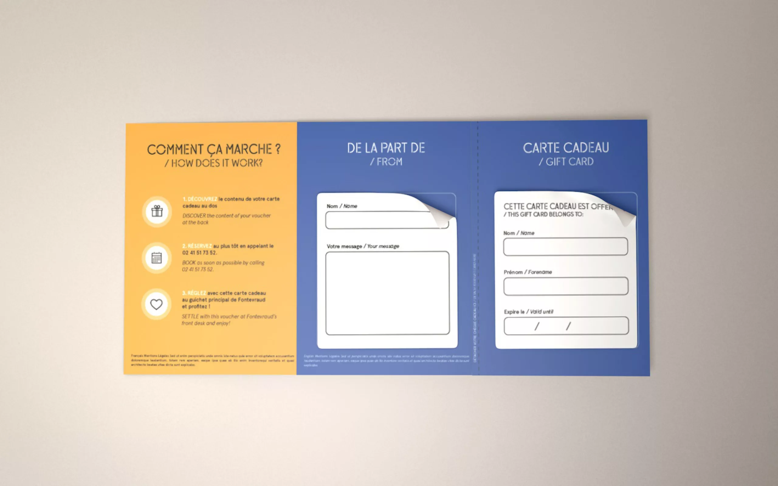 Aujourd’hui, nous préparons ensemble un coffret cadeau propre à Fontevraud, grâce auquel l’on pourra offrir “l’expérience Fontevraud” à nos proches ou pourquoi pas à soi-même ? Au menu : la conception d’une boîte sur mesure, la création d’objets d’éditions tels qu’une carte cadeau, un livret qui nous plongera dans l’univers fontevresque et en bonus trouver une idée goodies ! Tout en gardant en tête qu’il s’agit d’un objet sobre et chic qui donne l’eau à la bouche, c’est quelque chose que l’on voudrait garder en souvenir.