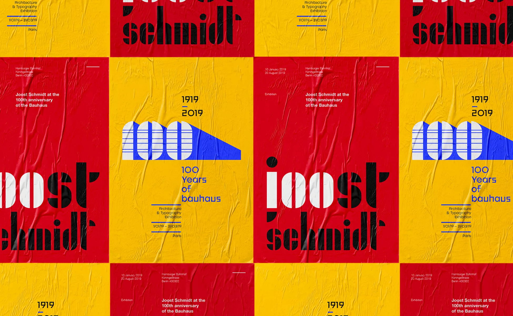 Toujours pour célébrer les 100 ans du Bauhaus, nous avons souhaité rendre hommage à Joost Schmidt à qui l’on doit la typographie Joschmi, récemment ressuscitée par Adobe. Joost Schmidt était étudiant au Bauhaus de Weimar avant devenir jeune enseignant à l’école de Dessau. Il apprend la sculpture sur bois et pierre à l’atelier spécialisé, puis enseigne la calligraphie, dirige les ateliers de sculpture, de publicité, de typographie et d’impression, de dessin, ainsi que le département de photographie. On lui doit le fameux poster de l’exposition Bauhaus de 1923 (image de droite ci-dessous).