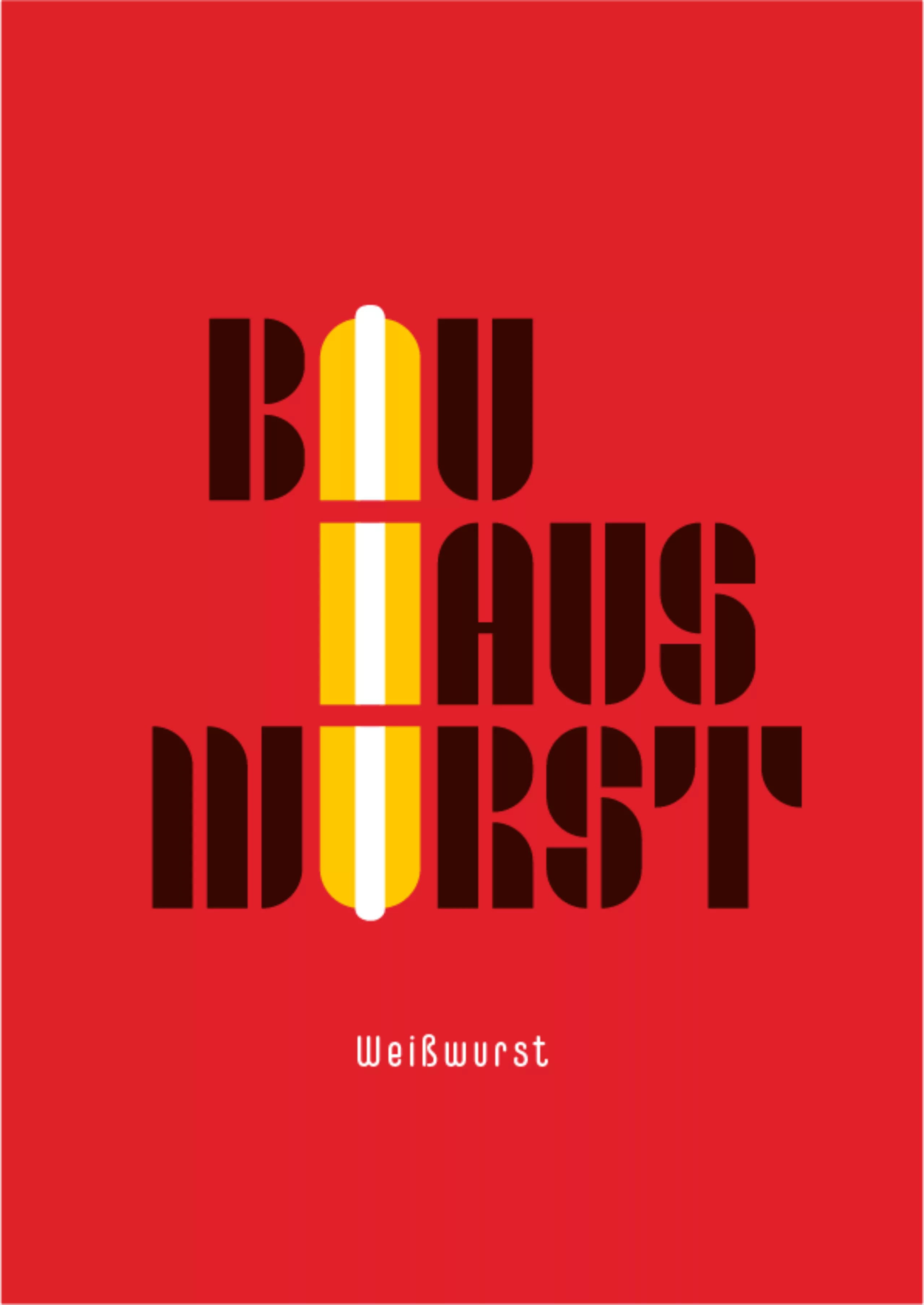 Et comme le Bauhaus a été fondé en Allemagne et que l’Allemagne est le pays de la saucisse, nous avons consacré une petite série de posters à la gloire de la saucisse sous toutes ses formes, et du Bauhaus.