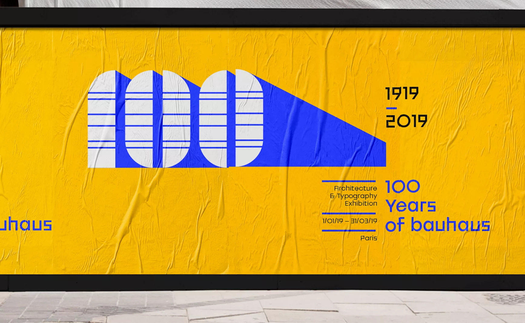 Ce premier poster réalisé par nos soins évoque les grandes similitudes entre l’architecture et la typographie à travers une exposition fictive célébrant les 100 ans du Bauhaus. Typographie et architecture, d’une même rigueur, ne laissent rien au hasard. Comme l’explique Virgninia Smith dans son article sur le mariage moderne entre l’architecture et les typographies, “le design graphique reproduit en miniature ce que l’architecture crée monumentalement.“