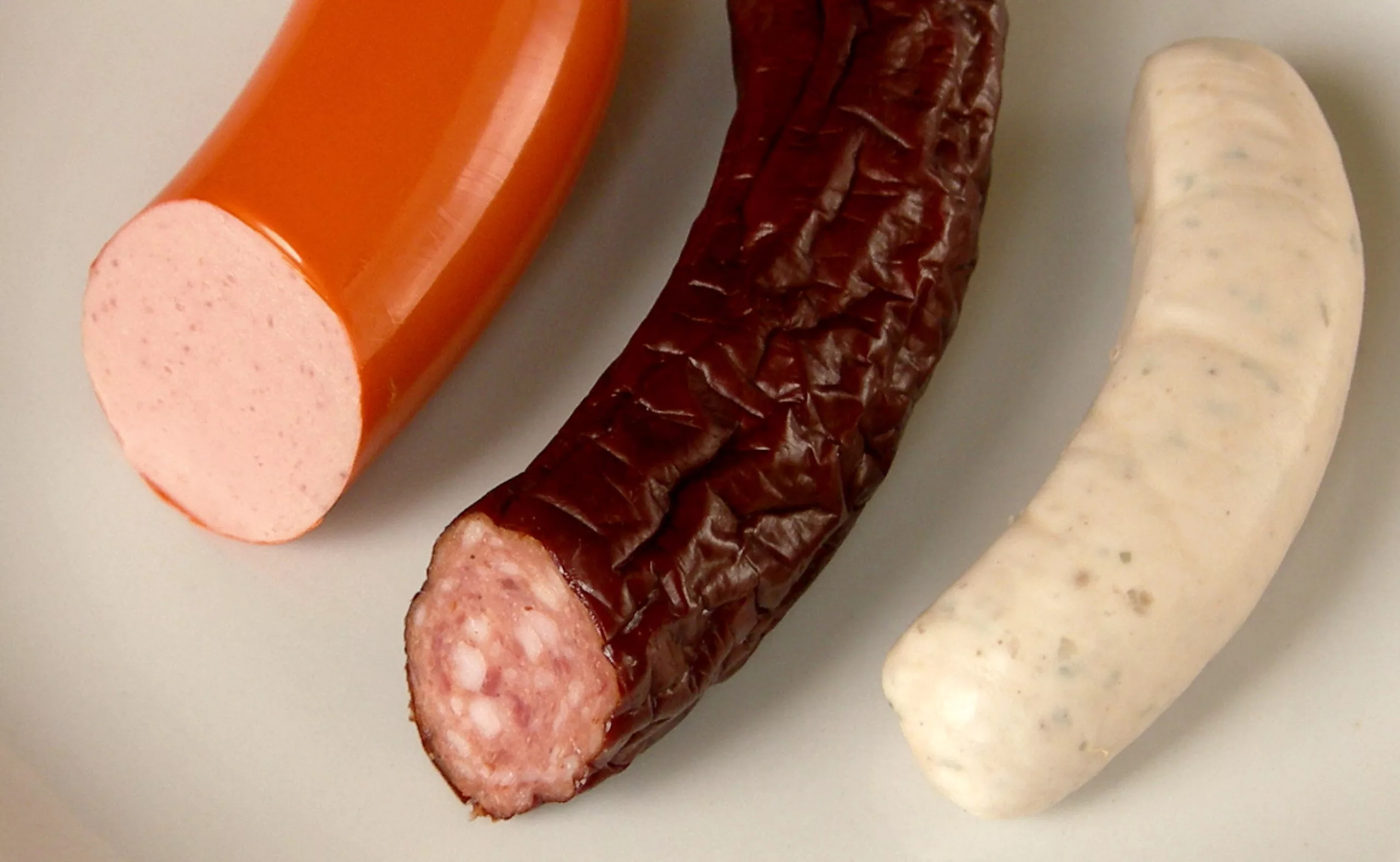 La Weißwurst (“saucisse blanche”) a -paraît-il- bien meilleur goût qu’elle n’en a l’air. Cuite, elle est farcie de veau et de bacon de porc mixés, assaisonnés avec du persil, des oignons, du citron et des épices. Les saucisses blanches se dégustent par paires, tout juste égouttées, avec un bon gros bretzel et de la moutarde sucrée. Si vous voulez la manger à la bavaroise, coupez le bout à l’extrémité et aspirez-en la farce à pleine bouche (chic). Traditionnellement faites le matin même et sans conservateur, on les déguste généralement en snack avant midi.