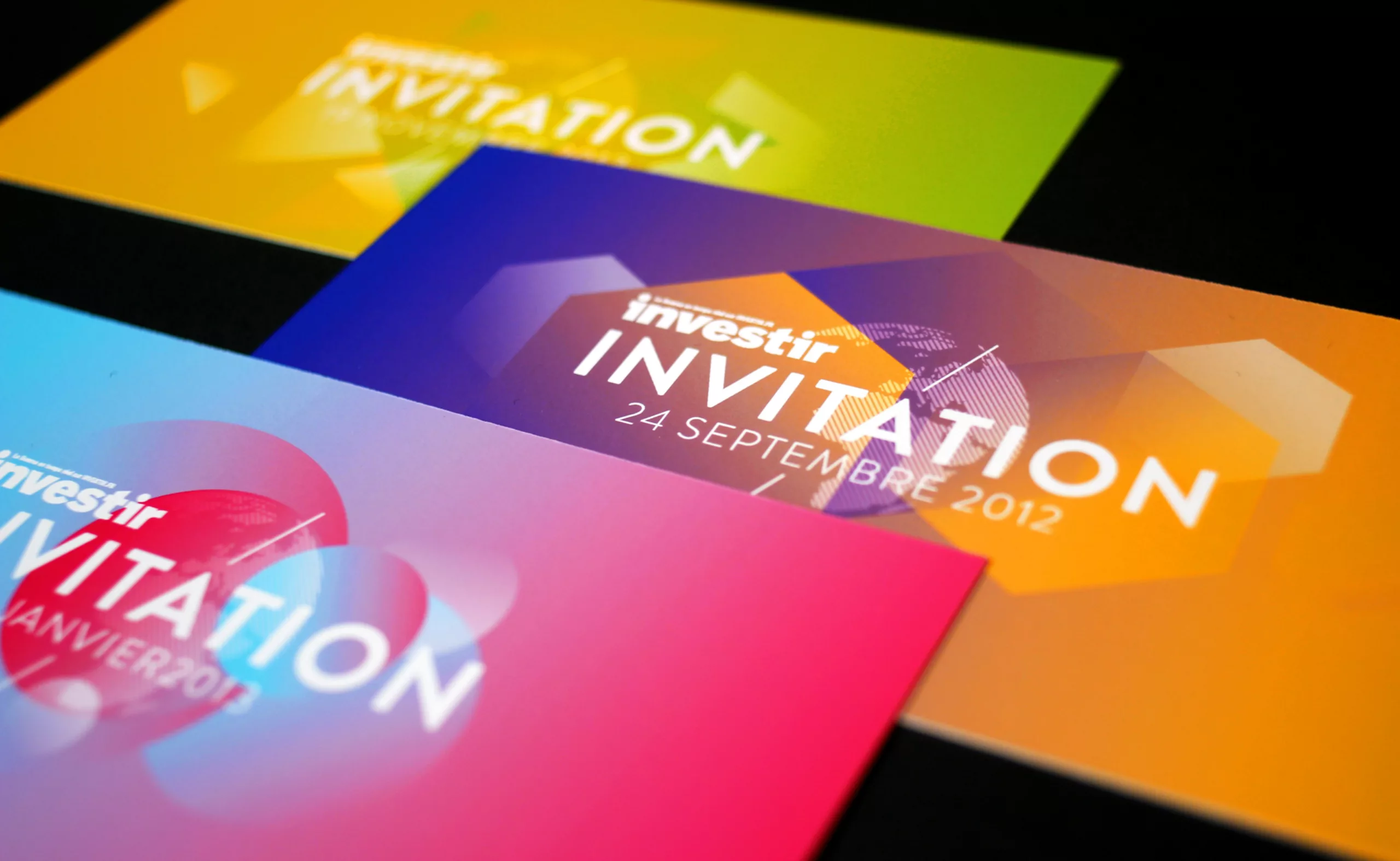 Projet d’une série d’invitations pour des rencontres organisées par le groupe Investir.