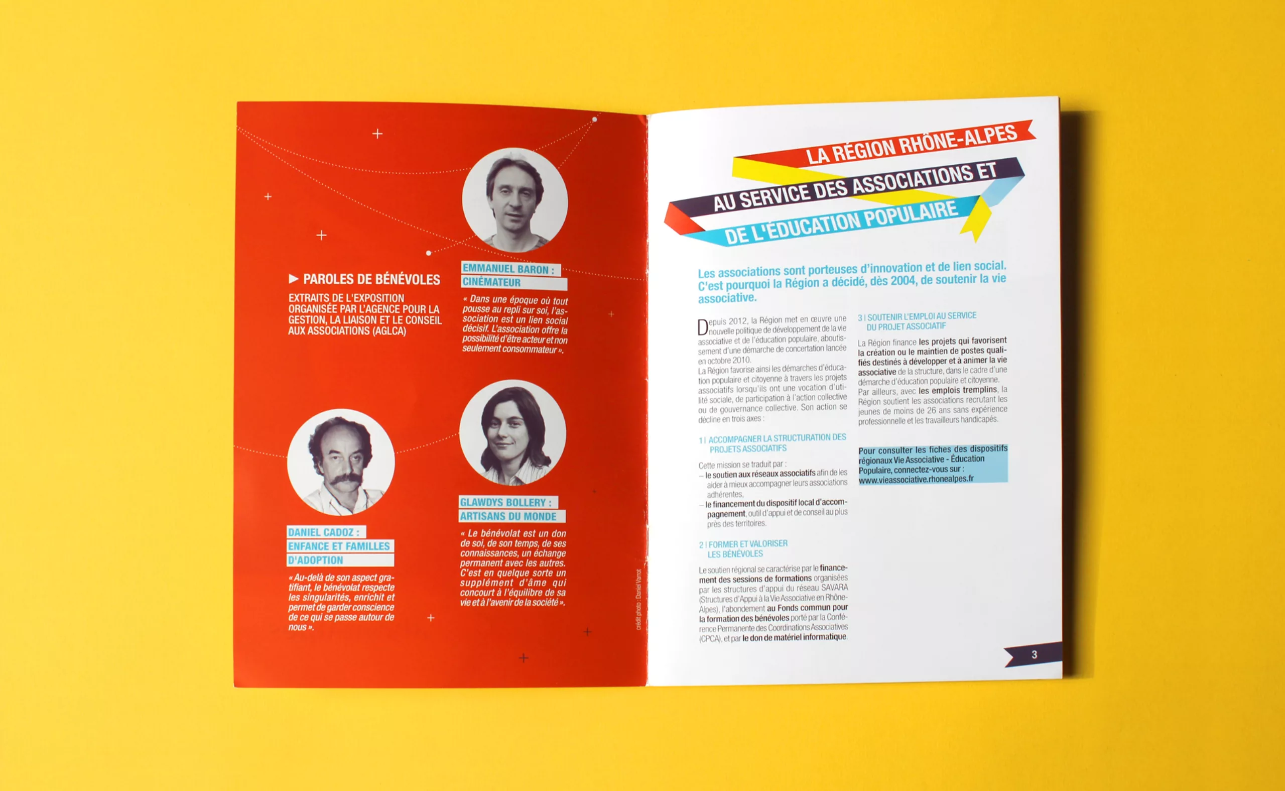 Une plaquette présentant les actions en faveur de la “Vie Associative et de l’éducation populaire” de la Région Rhône-Alpes.