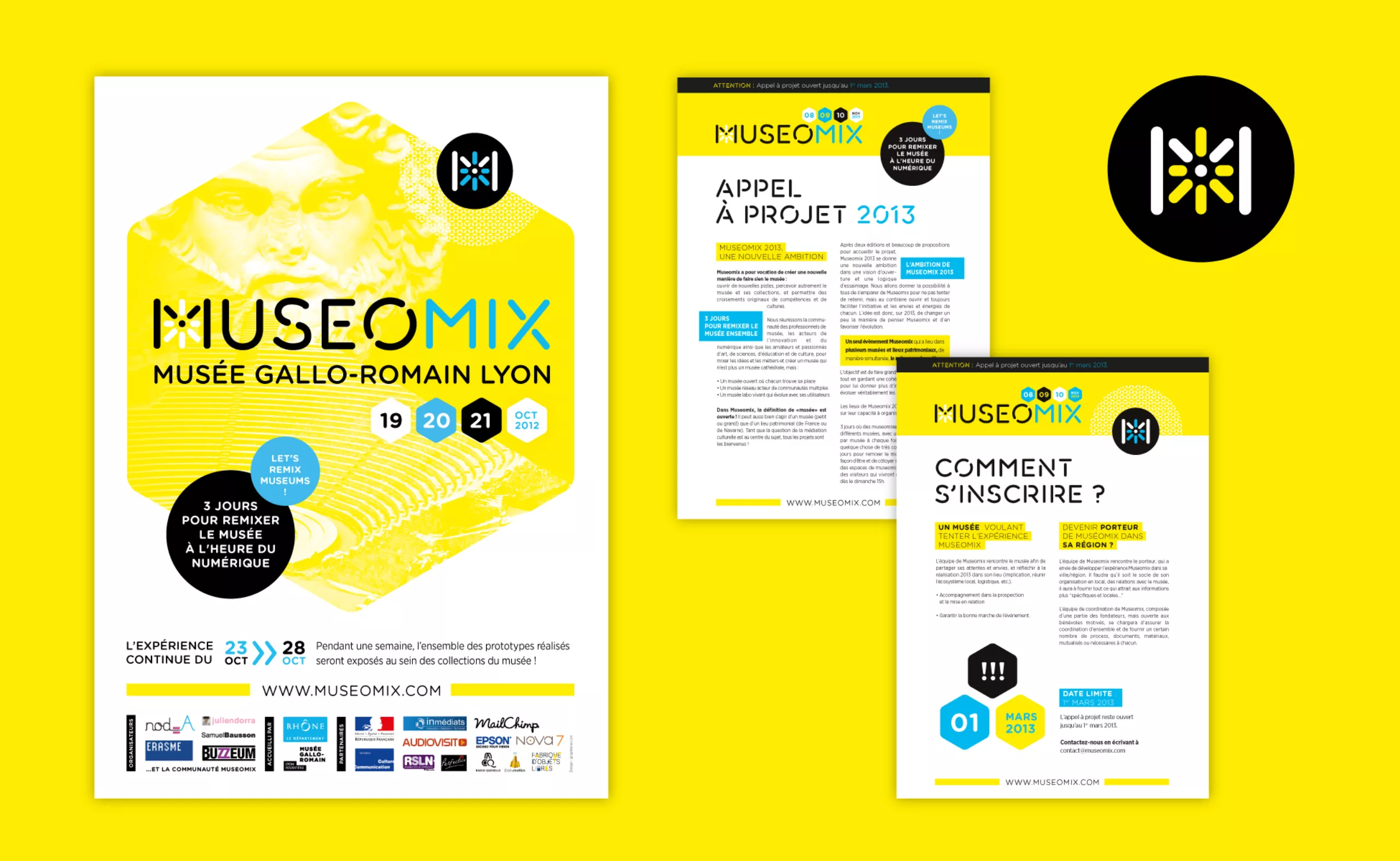 CultureCréation de l’identité visuelle de Museomix, un événement sur 3 jours pour remixer les musées ! Création d’affiches, d’une typographie, de pictogrammes…