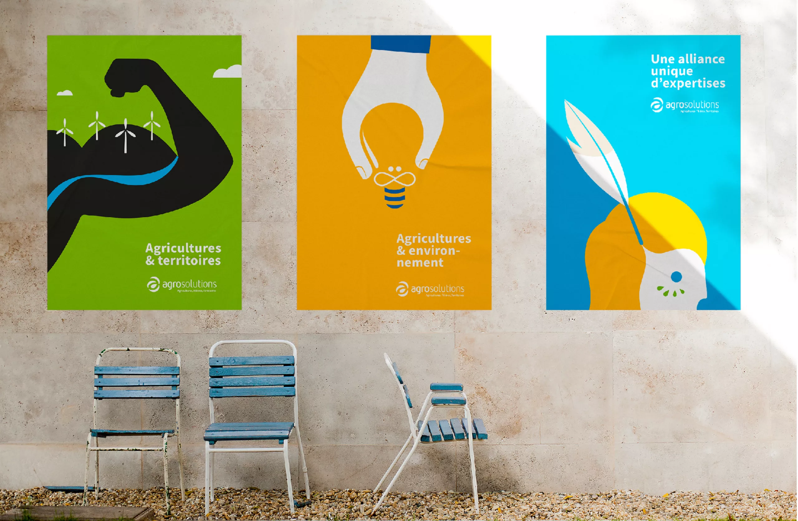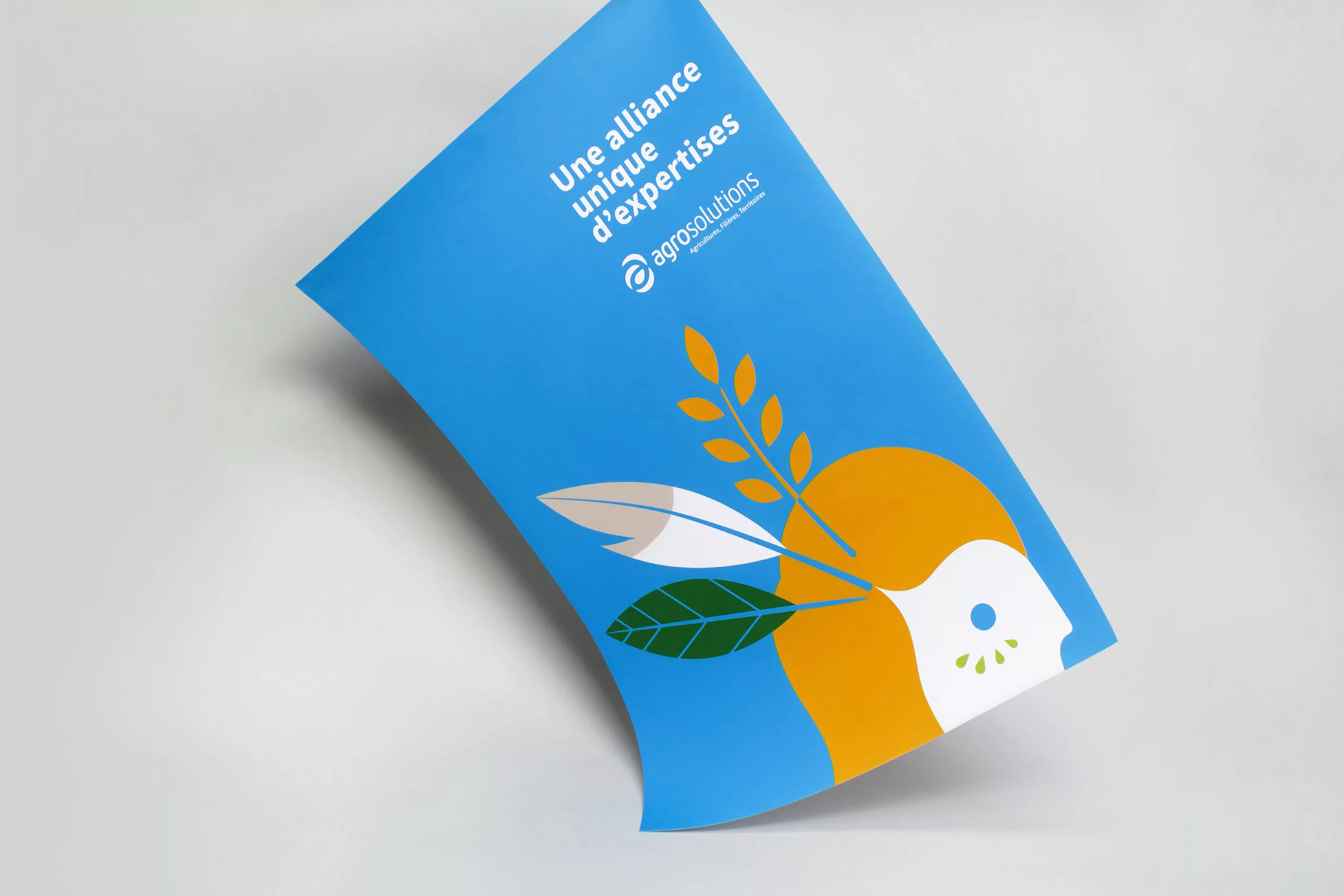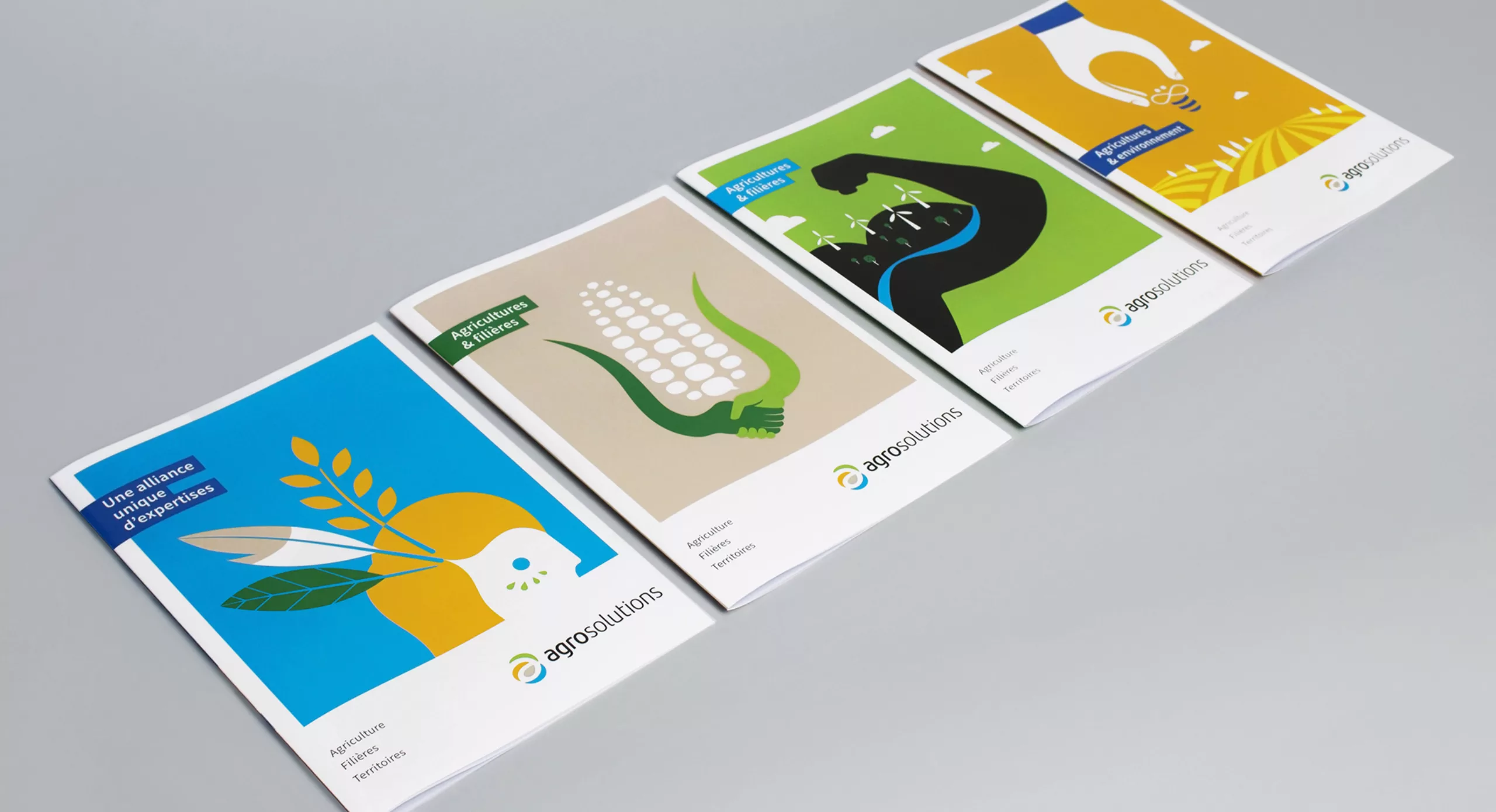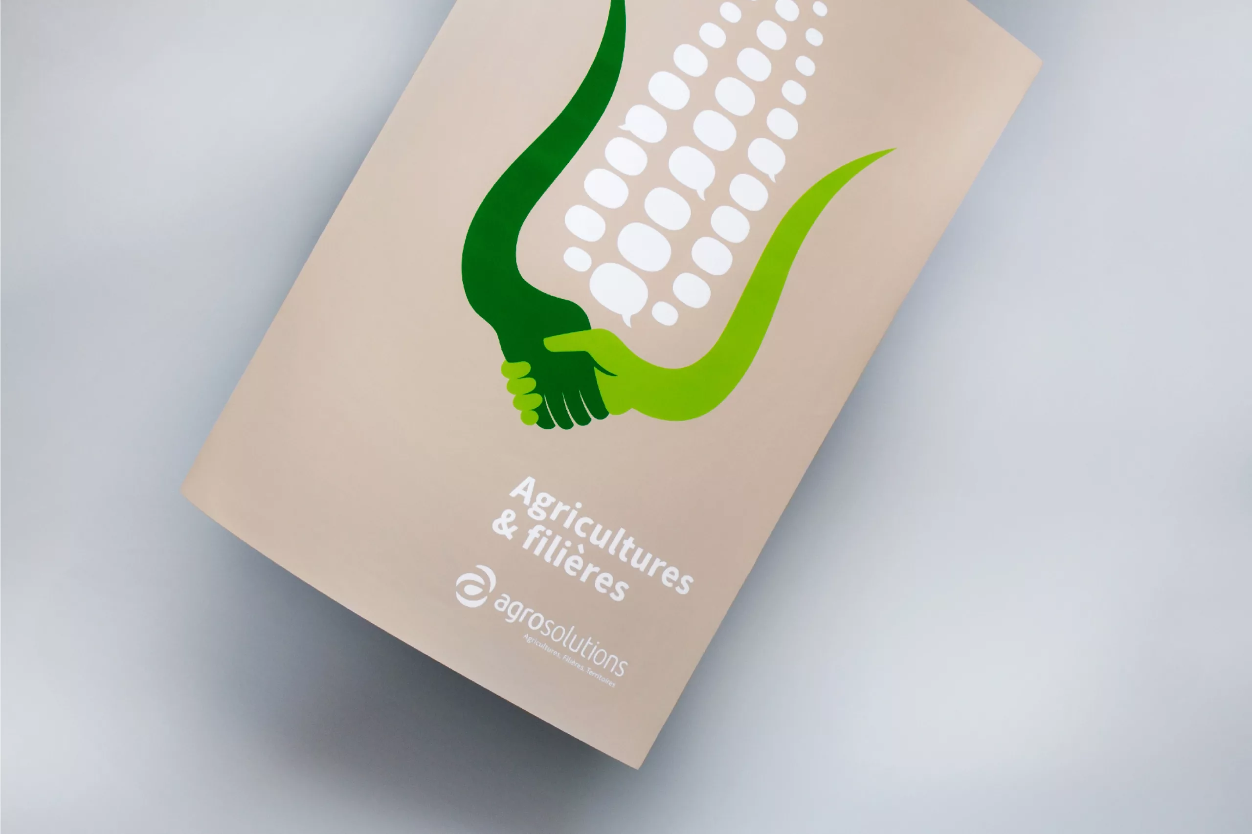 La création du nouveau logotype Agrosolutions permet à la filiale d’affirmer son identité propre ainsi que son positionnement au sein du pôle agriculture du groupe Invivo. Cet emblème symbolise l’articulation de ses 3 domaines d’intervention : Agricultures / Filières / Territoires, réunis autour de son socle de compétences. Prenant la forme de trois segments courbes et arrondies, ils s’organisent dans une composition en spirale, dont le mouvement évoque l’idée de développement et de croissance. La spirale rappelle aussi le dessin de la lettre «a» en miniscule qui est l’initiale du mot «Agrosolutions».