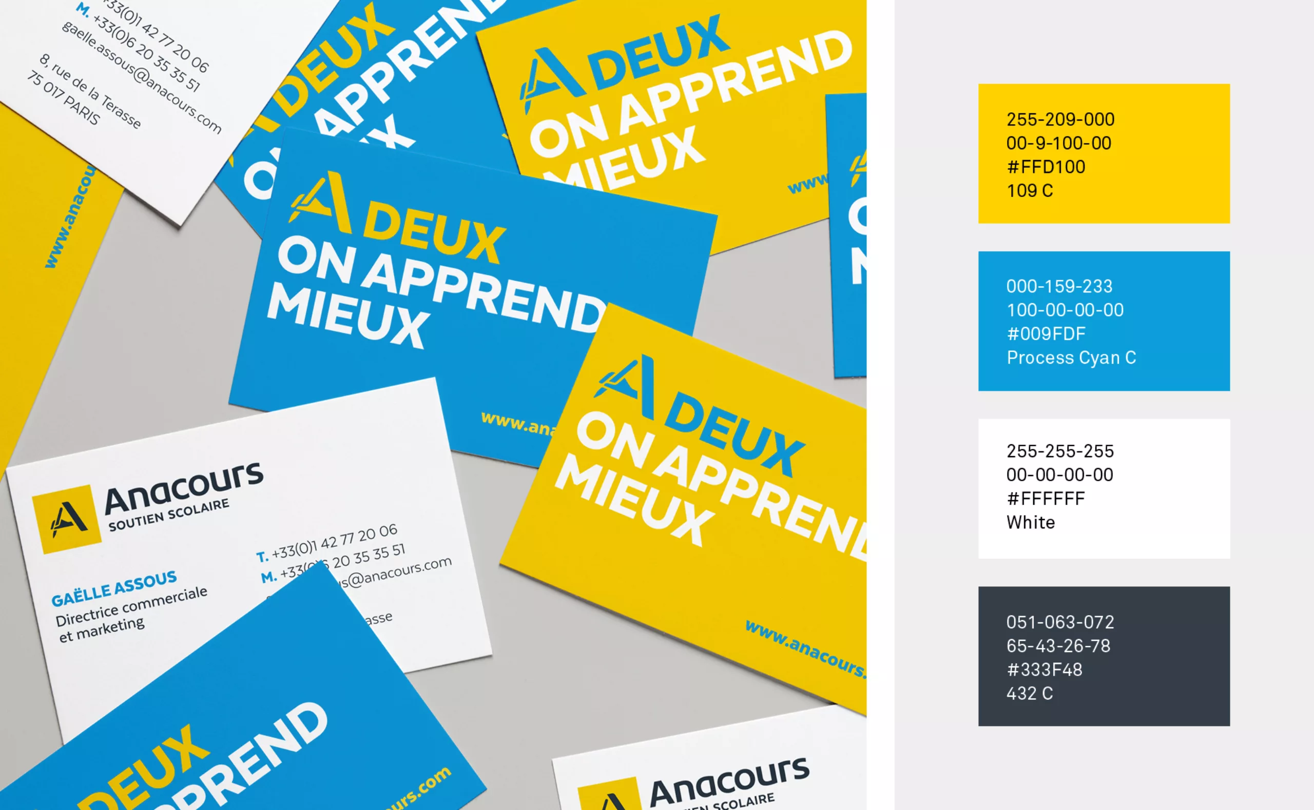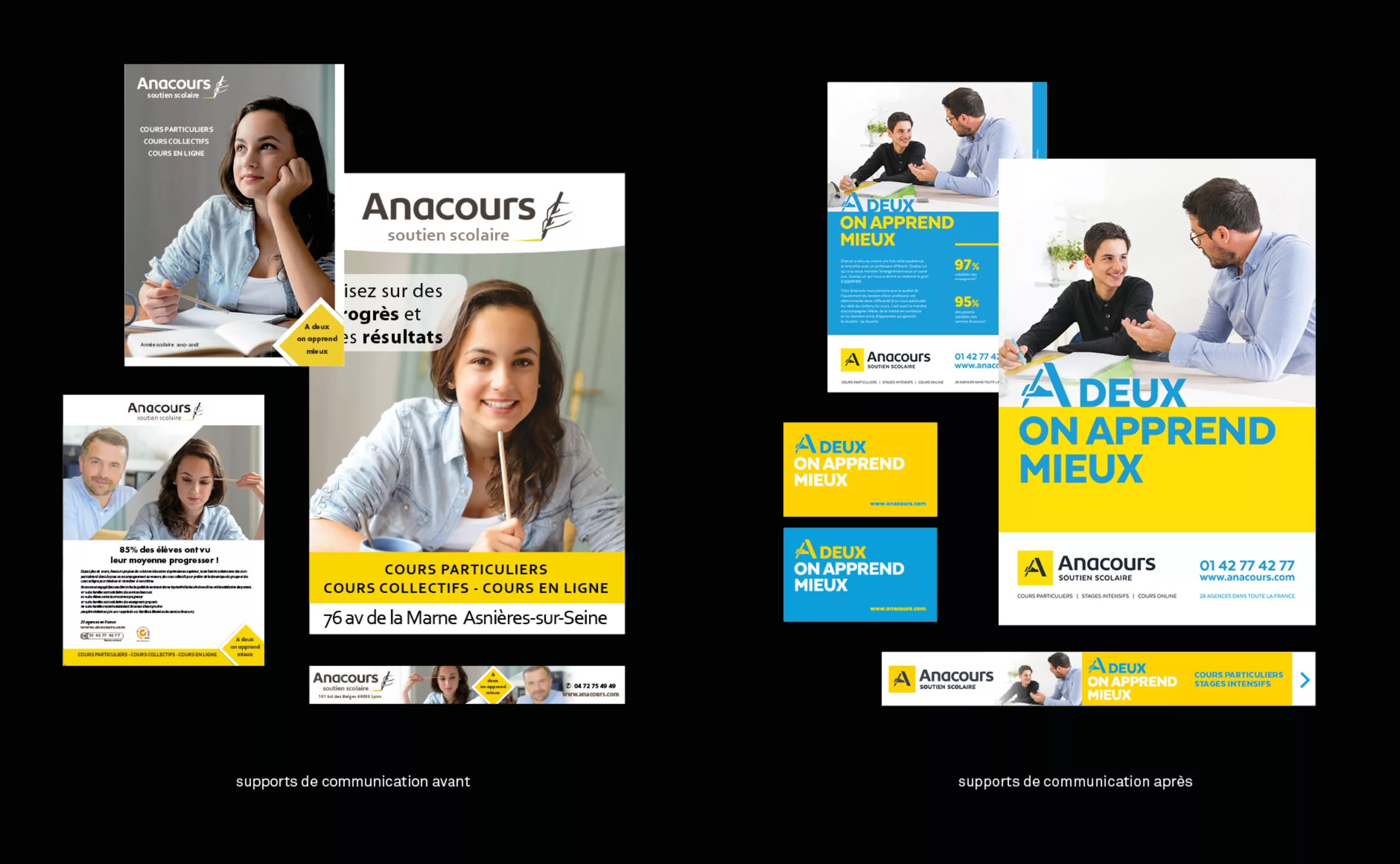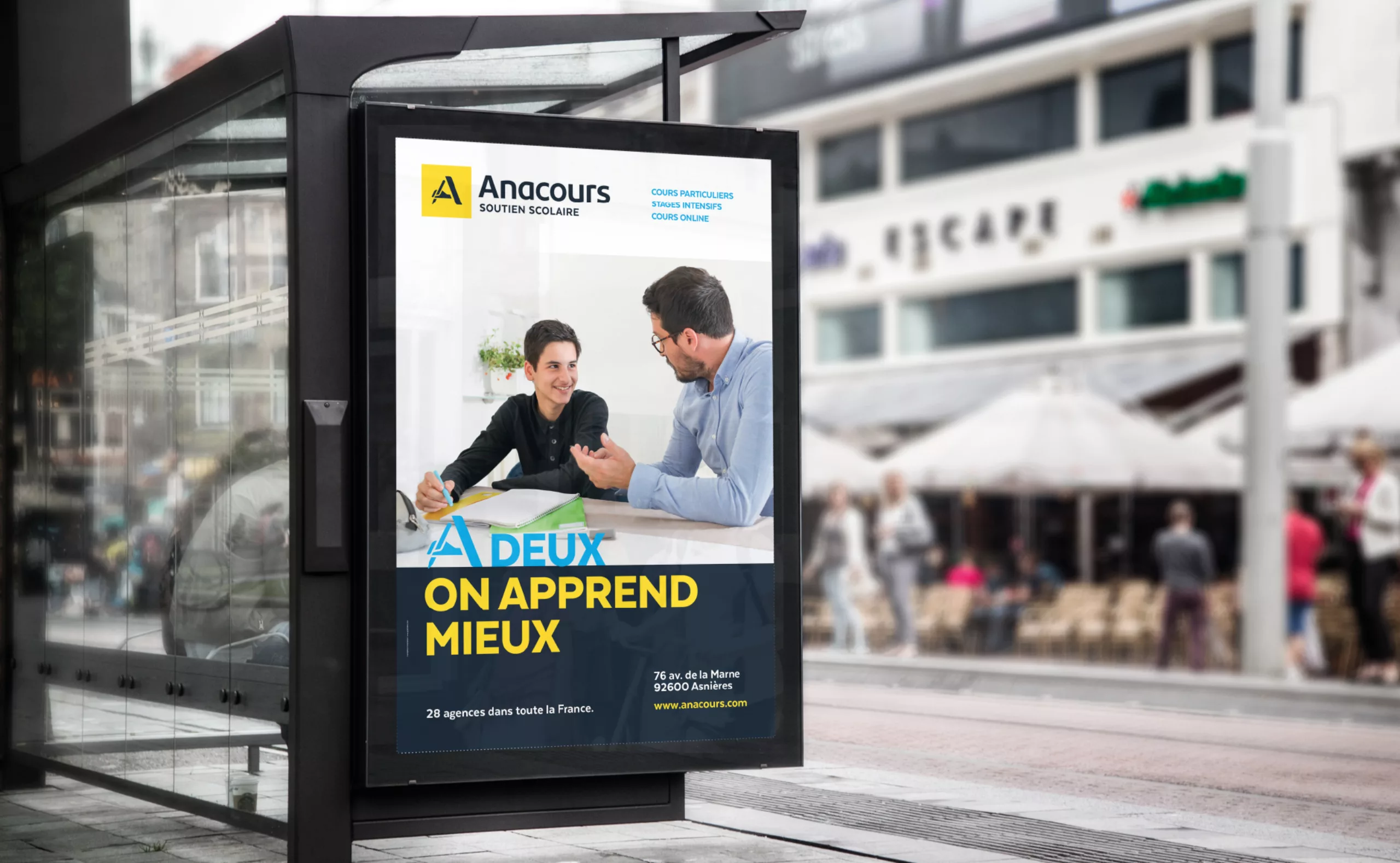 Pour la rentrée 2018, Graphéine a accompagné le groupe Anacours, spécialiste du soutien scolaire depuis 1999, dans la refonte de son identité de marque. Cette évolution renforce la visibilité et la lisibilité de la franchise Anacours pour lui permettre de se singulariser dans l’univers très concurrentiel du soutien scolaire.