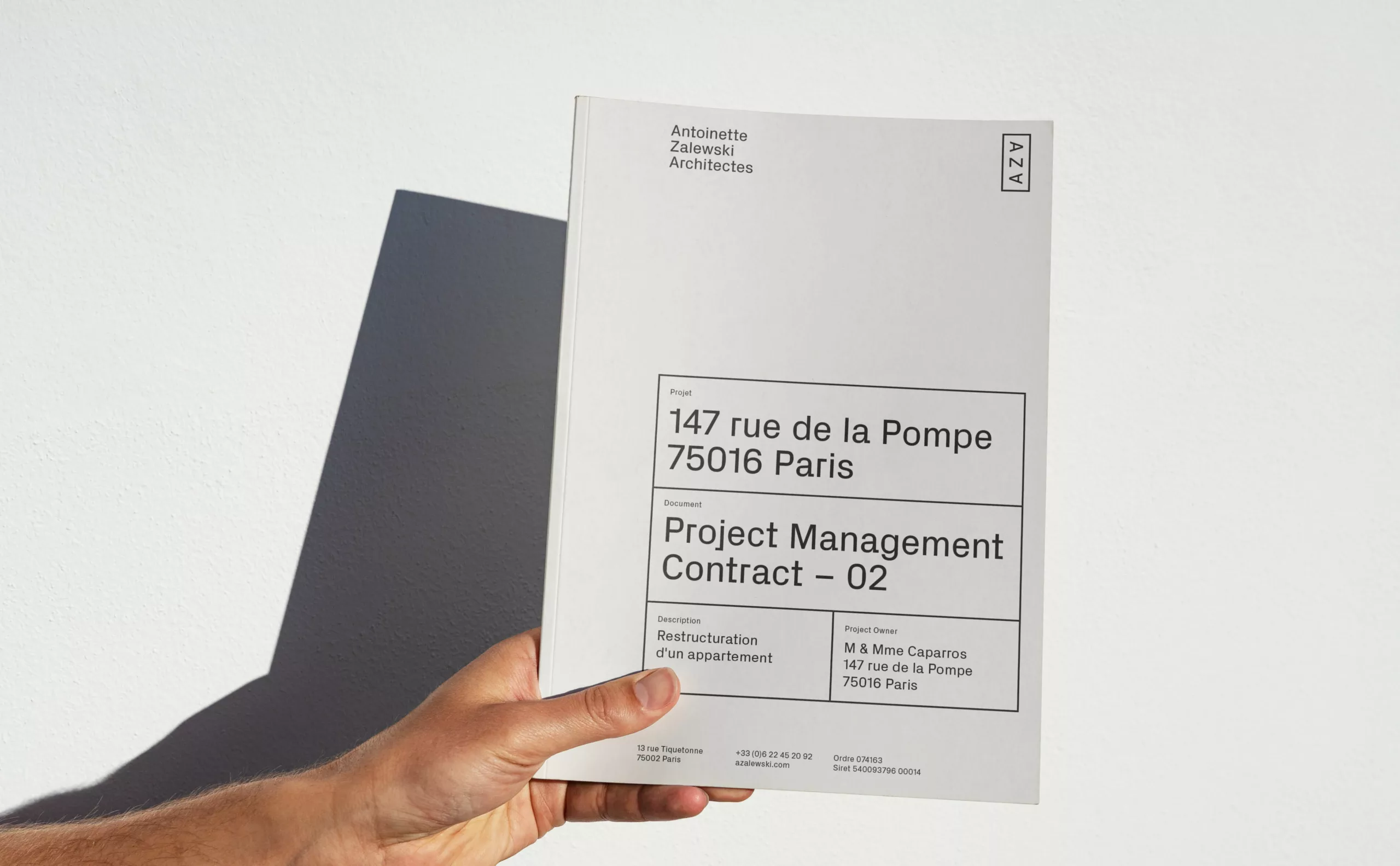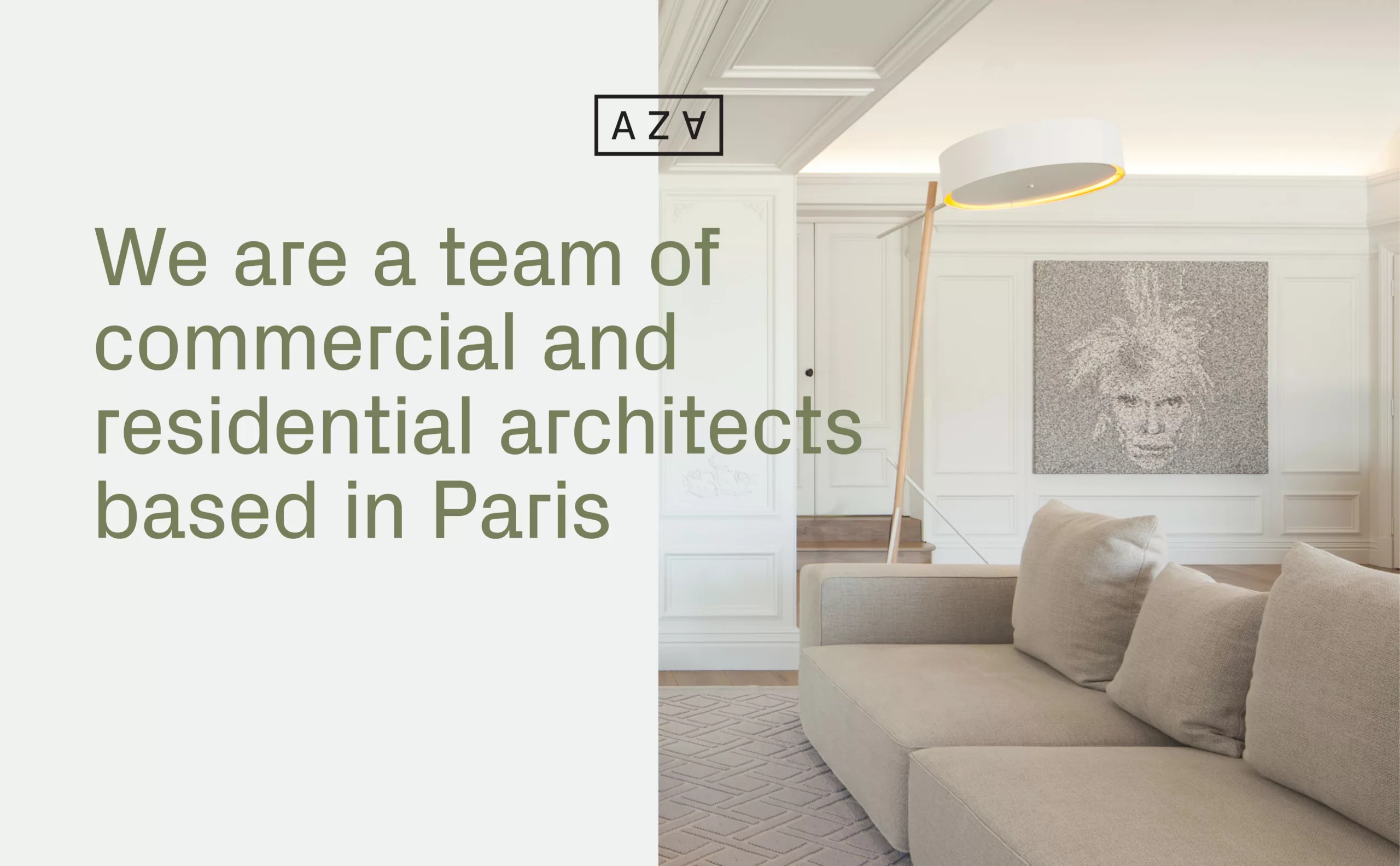 Depuis 2012, l’agence AZA conçoit et réalise des travaux d’architecture haut de gamme en région parisienne. Un savoir-faire technique alliant restructuration lourde, gymnastique du remaniement des espaces et la sensibilité de la décoration d’intérieur. Après des années d’effectivité, AZA a souhaité repenser son identité visuelle, l’occasion d’imaginer une marque qui incarne son positionnement d’agence premium.