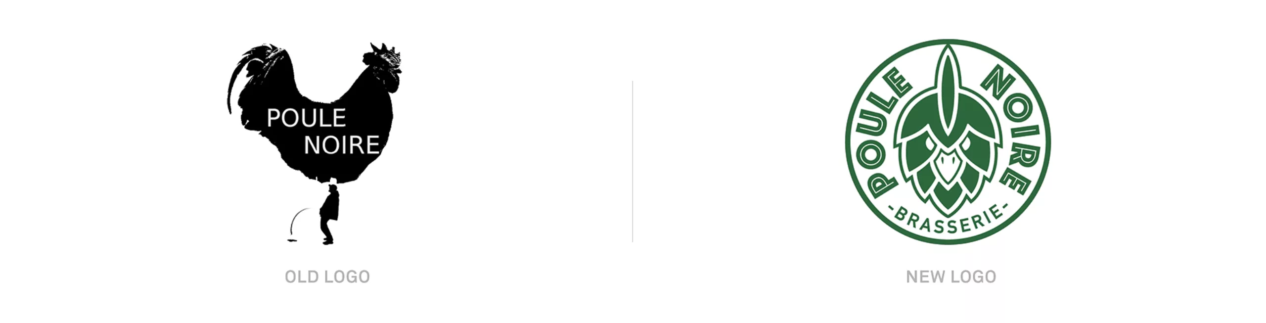 L’agence Graphéine fait évoluer l’image de marque de la brasserie nantaise “La Poule Noire”. Jusque-là, le logo présentait un poule avec un homme urinant à ses pieds. Le caractère potache de ce logo ne valorisait pas spécialement la marque et renvoyait à un imaginaire de beuverie.