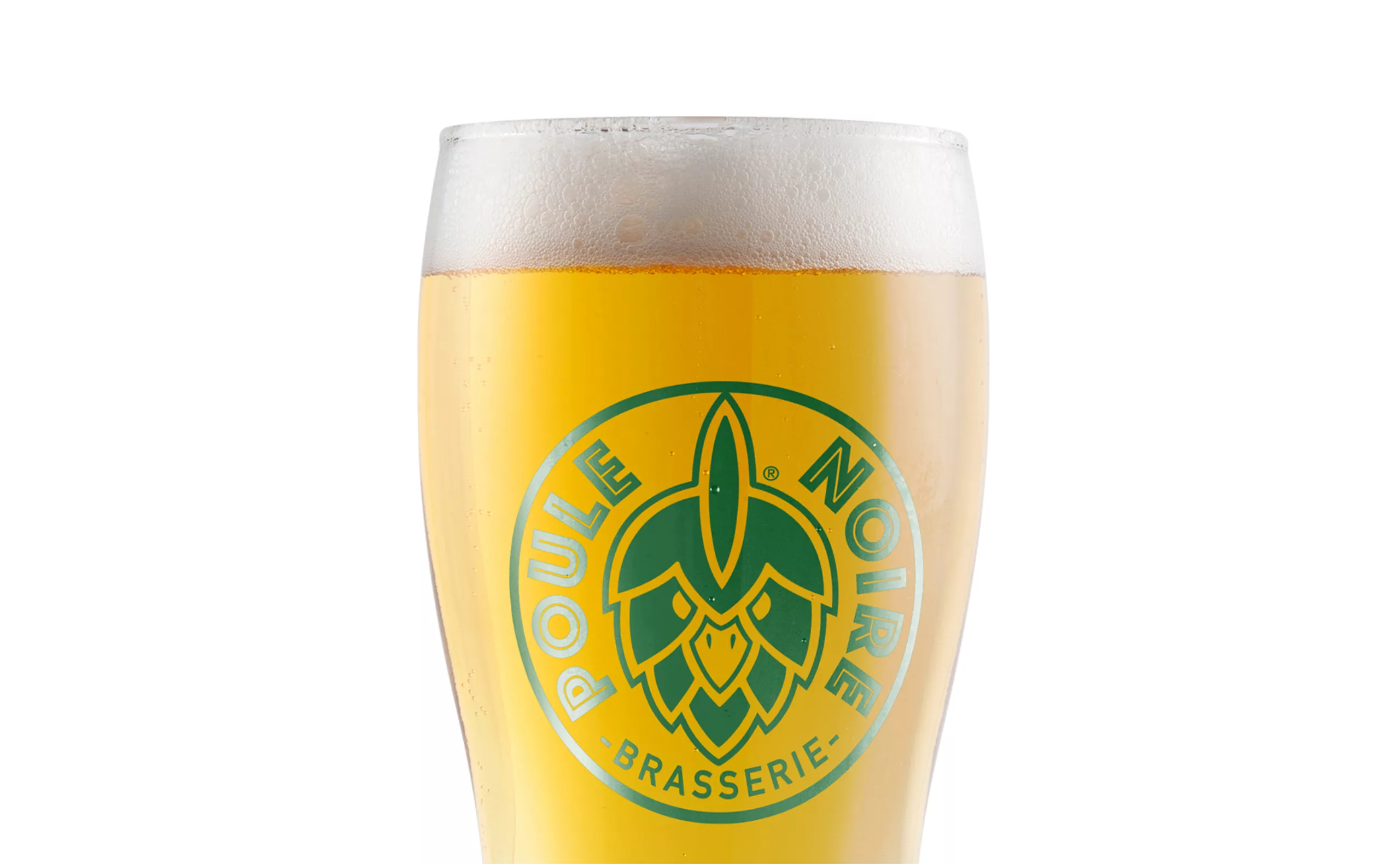Le nouveau logo a été créé en associant astucieusement la forme d’un grain de houblon et la tête d’une poule. Le visage au regard noir de ce gallinacé nous confirme le fort caractère de cette marque. Il en résulte un design distinctif à la fois original et adapté à la production de bières de caractère !