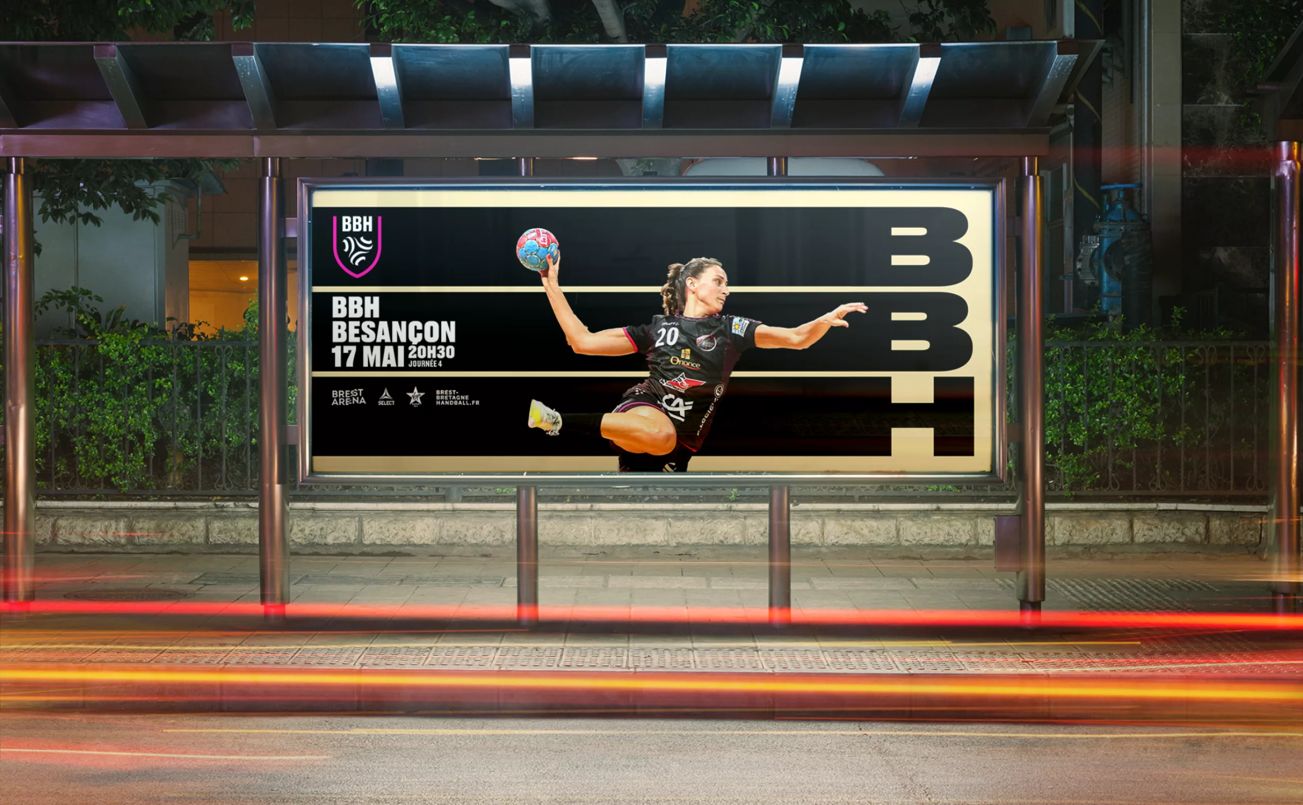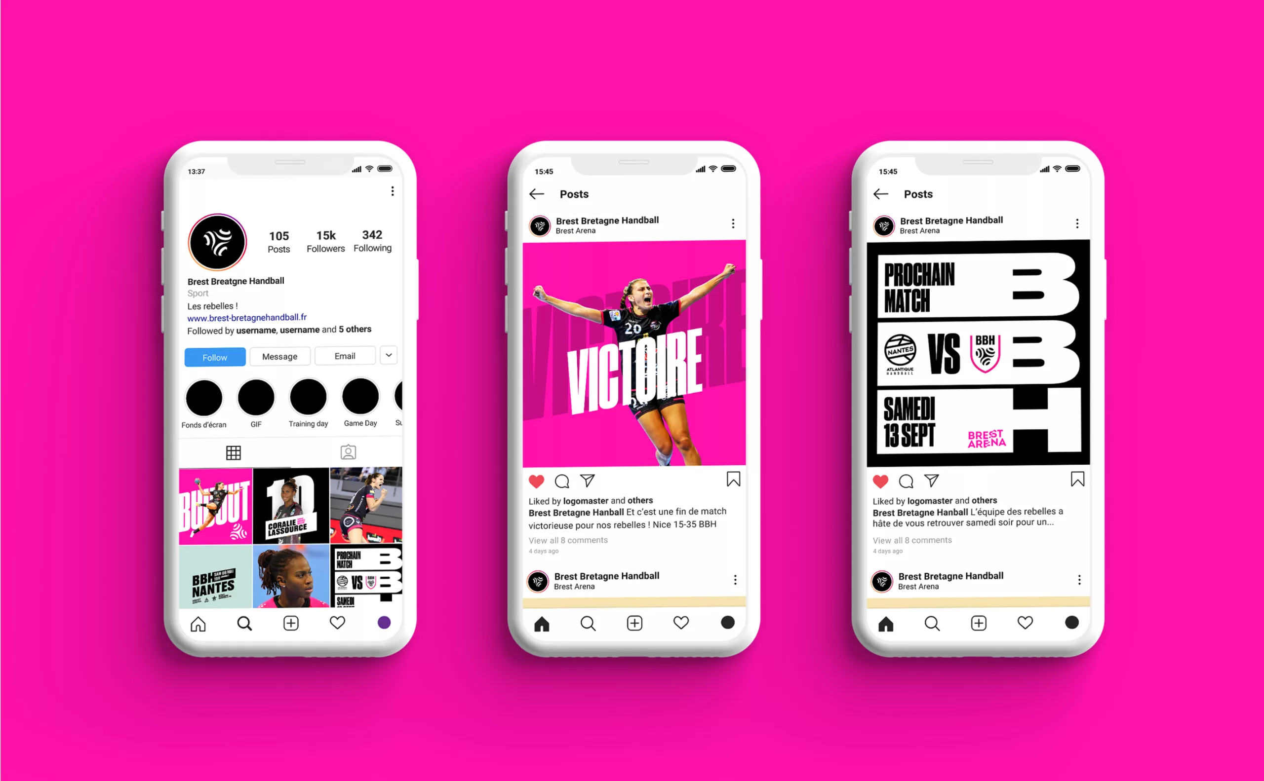 Pour ses 10 ans, le club Brest Bretagne Handball (couramment abrégé BBH) a souhaité repenser entièrement son identité de marque et créer un nouveau logo pour sont équipe de handball et une nouvelle identité. L’ancien logo du club représentait de manière figurative un ballon et une joueuse. Le manque de lisibilité de ce logo de handball devenait problématique. De l’existant, nous avons seulement conservé les couleurs emblématiques du club : le noir et le rose. BBH est un club de handball évoluant en 1e Ligue. Le palmarès des “Rebelles” (le nom de l’équipe) est impressionnant : trois coupes de France, deux championnats de France et récemment une finale européenne de Ligue des champions.
