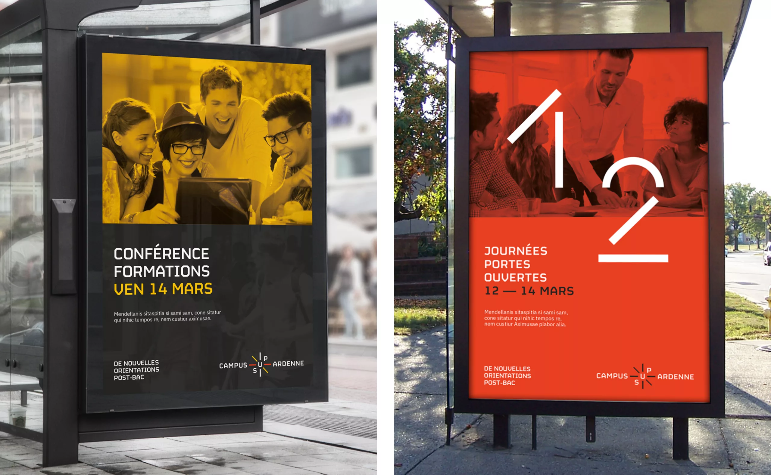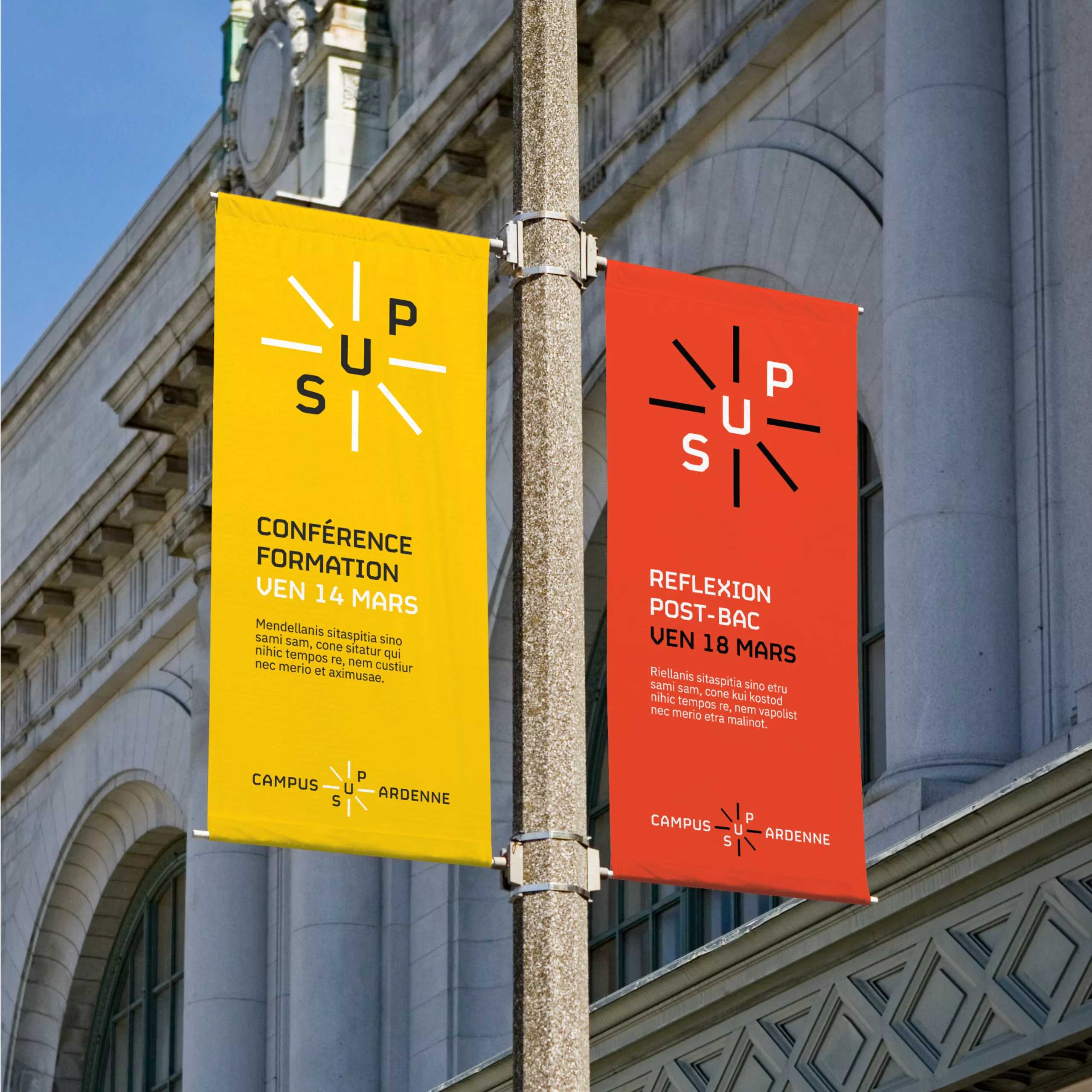 Créer un nom est toujours un projet délicat. À l’issue des ateliers de co-création, 4 noms ont été proposés. « Campus Sup Ardenne » est apparu comme le plus pertinent. Le caractère simple, enjoué et dynamique du préfixe « Sup » évoque l’idée d’enseignement supérieur, mais on peut également y percevoir le mot « Super », comme l’esprit optimiste et volontariste des habitants du territoire. Au final, c’est un nom qui valorise « l’enseignement supérieur » de manière globale, et peut aisément s’utiliser pour valoriser les établissements extérieurs au campus.
