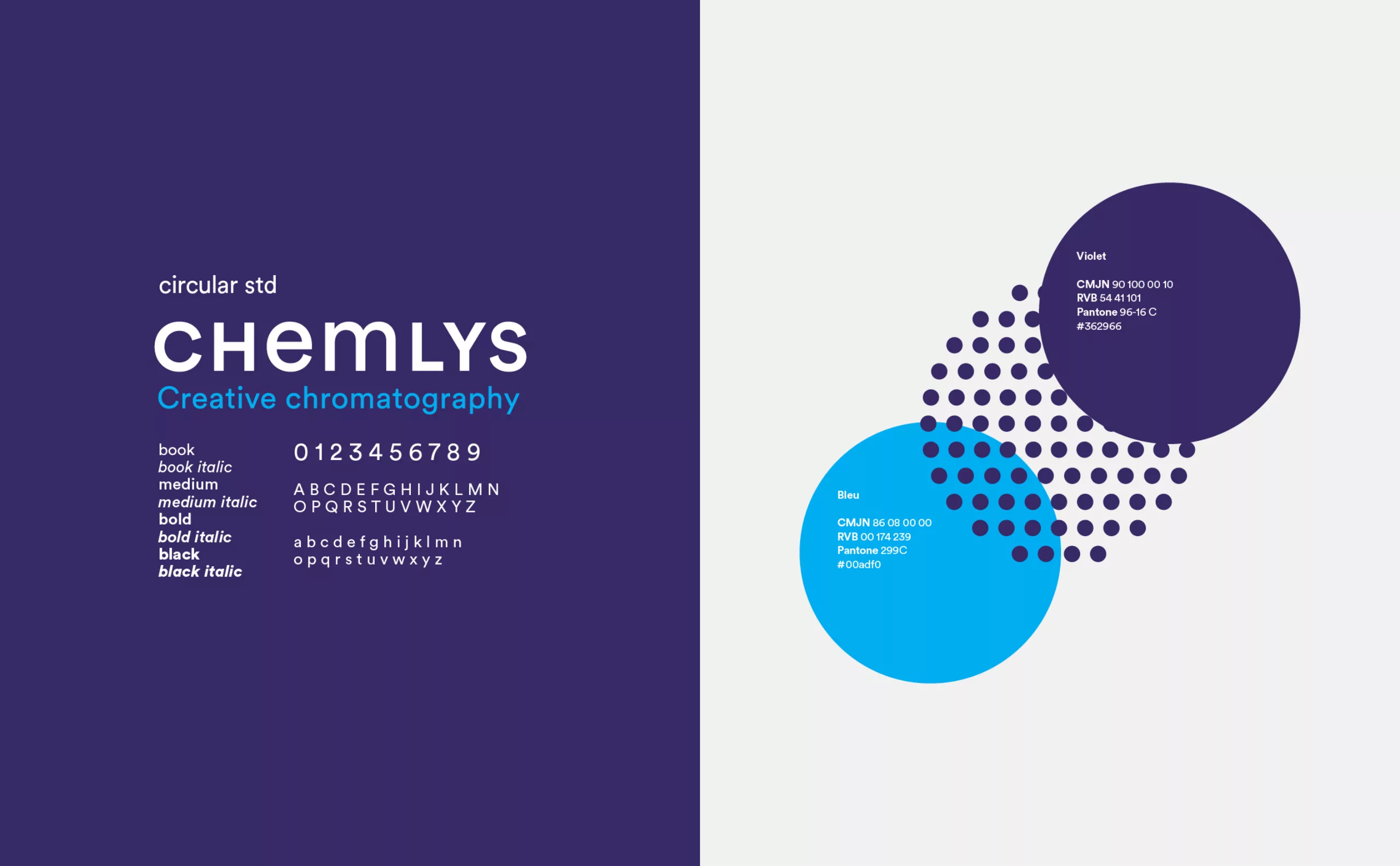 Les valeurs de Chemlys sont profondément ancrées dans une culture d’innovation et de la responsabilité sociale. En engageant une démarche RSE, l’entreprise place la durabilité au cœur de ses activités, en veillant à minimiser son impact environnemental tout en répondant aux besoins évolutifs de ses clients. Avec une vision tournée vers l’avenir, Chemlys continue d’explorer de nouvelles opportunités pour innover et répondre aux défis globaux du XXIe siècle. Graphéine a donc conçu l’identité visuelle de l’entreprise, puis a conçu différentes variations de cette identité pour des produits et services comme la Chembox ou le Chemlys Labs.