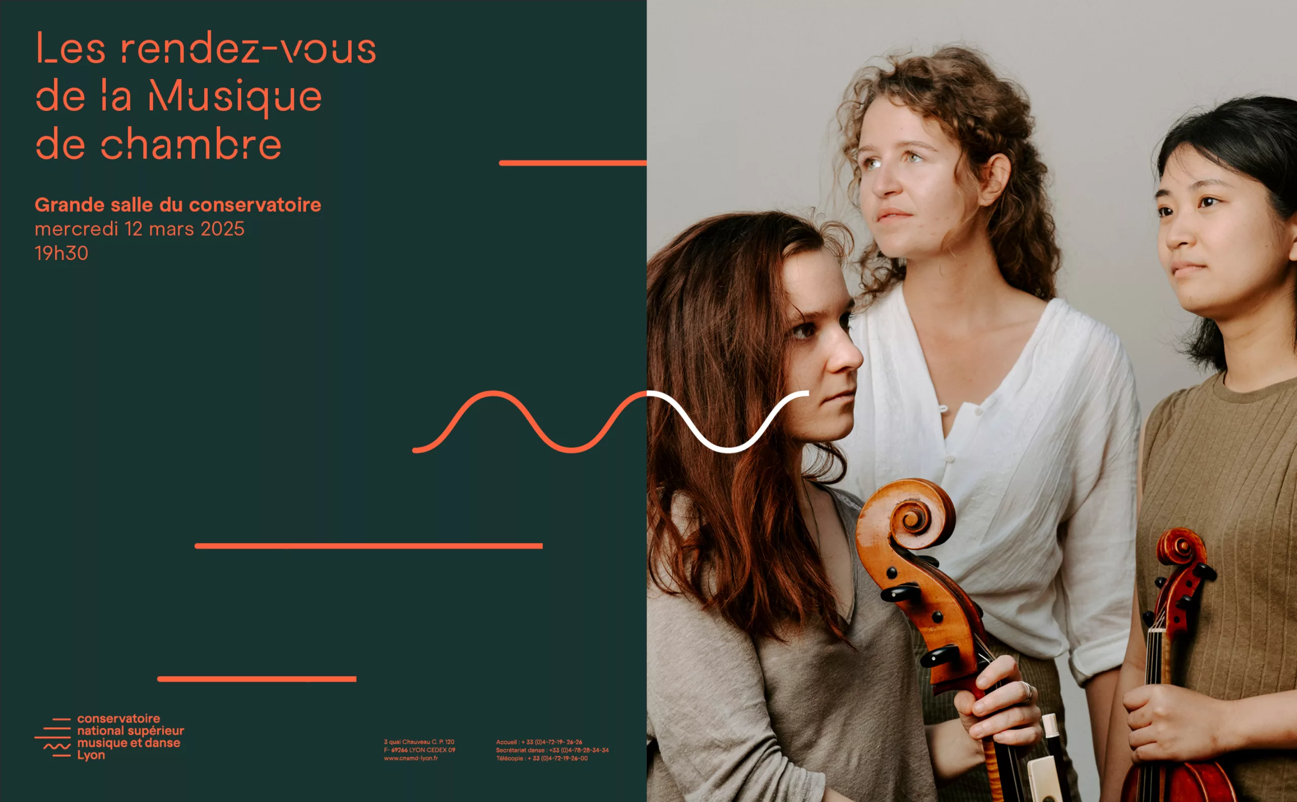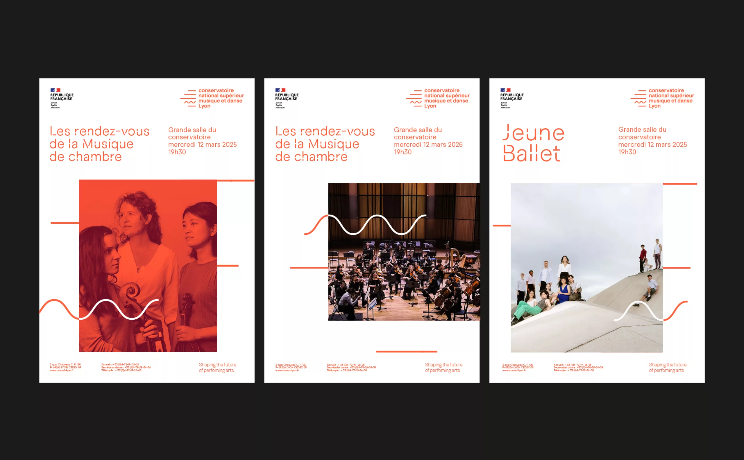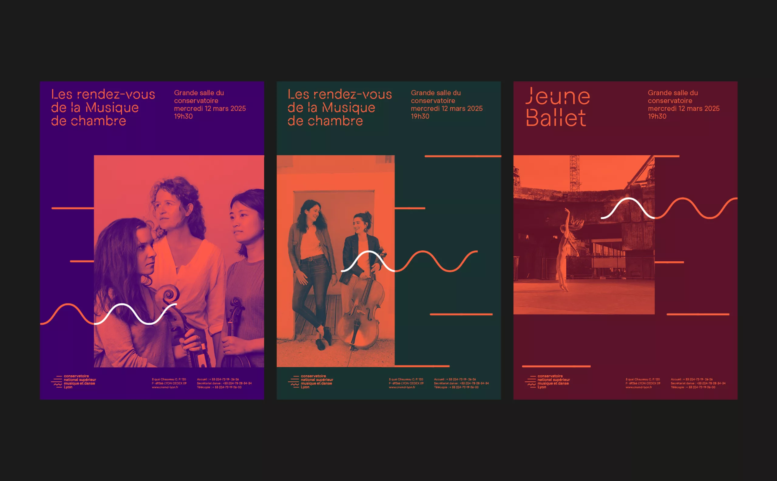 Sous la direction de Mathieu Ferey, le CNSMD Lyon a entrepris une refonte complète de son identité visuelle et de son territoire de marque. Animé par une dynamique de renouveau, il affirme plus que jamais sa vocation de conservatoire “en mouvement”, à l’écoute des évolutions artistiques et des enjeux contemporains. Dans cette démarche, l’agence Graphéine a accompagné les équipes du conservatoire dans un processus collaboratif de co-construction de la plateforme de marque, puis de création de l’identité visuelle en adéquation avec ses ambitions et son rayonnement.