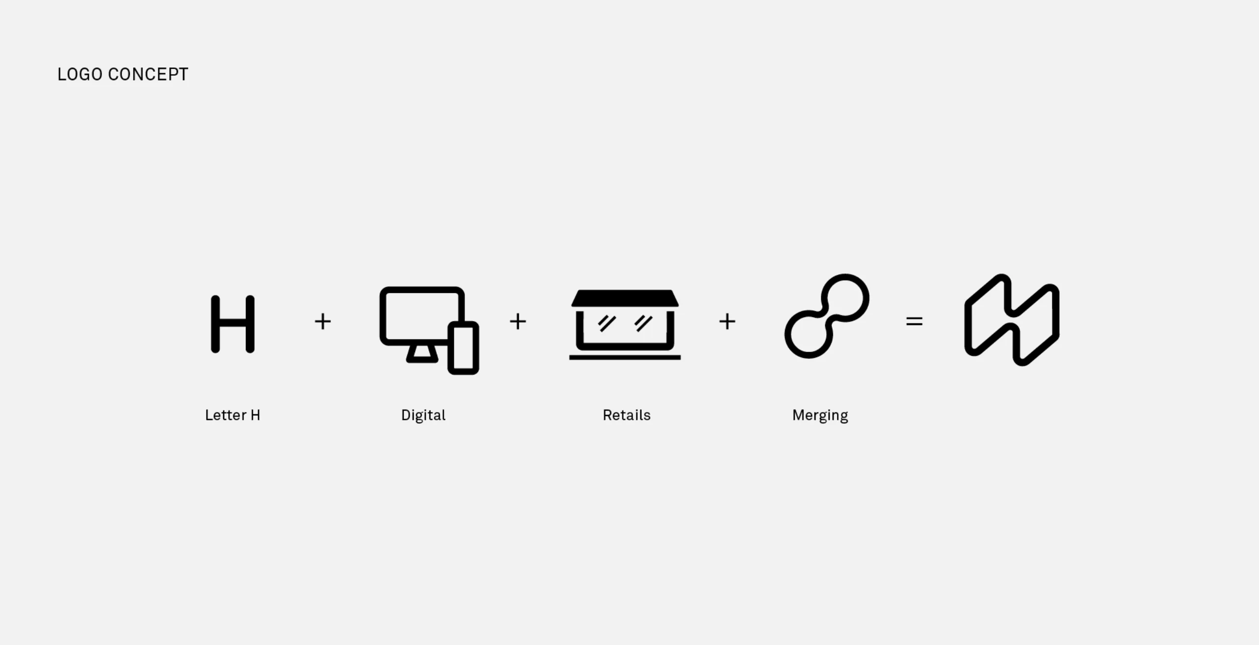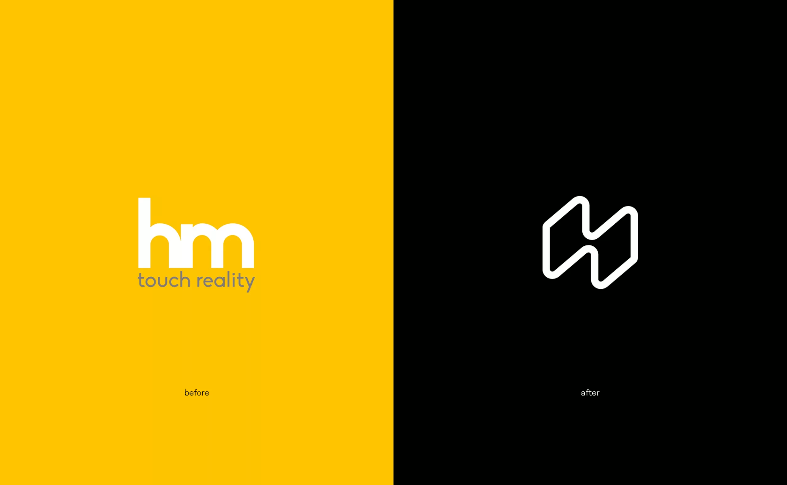 L’ancien emblème était une ligature des lettres «h et m» en bas de casse. Nous pensions qu’il s’agissait d’une astuce graphique pour représenter une main avec l’index pointé qui interagit avec la surface d’un écran. Il s’est avéré que ce rapprochement n’était qu’une coïncidence et qu’il n’existait aucune réelle intention derrière ce symbole. Il était donc nécessaire de repartir de zéro pour bâtir à la fois un nouveau storytelling et un nouvel «icon» pour la marque.