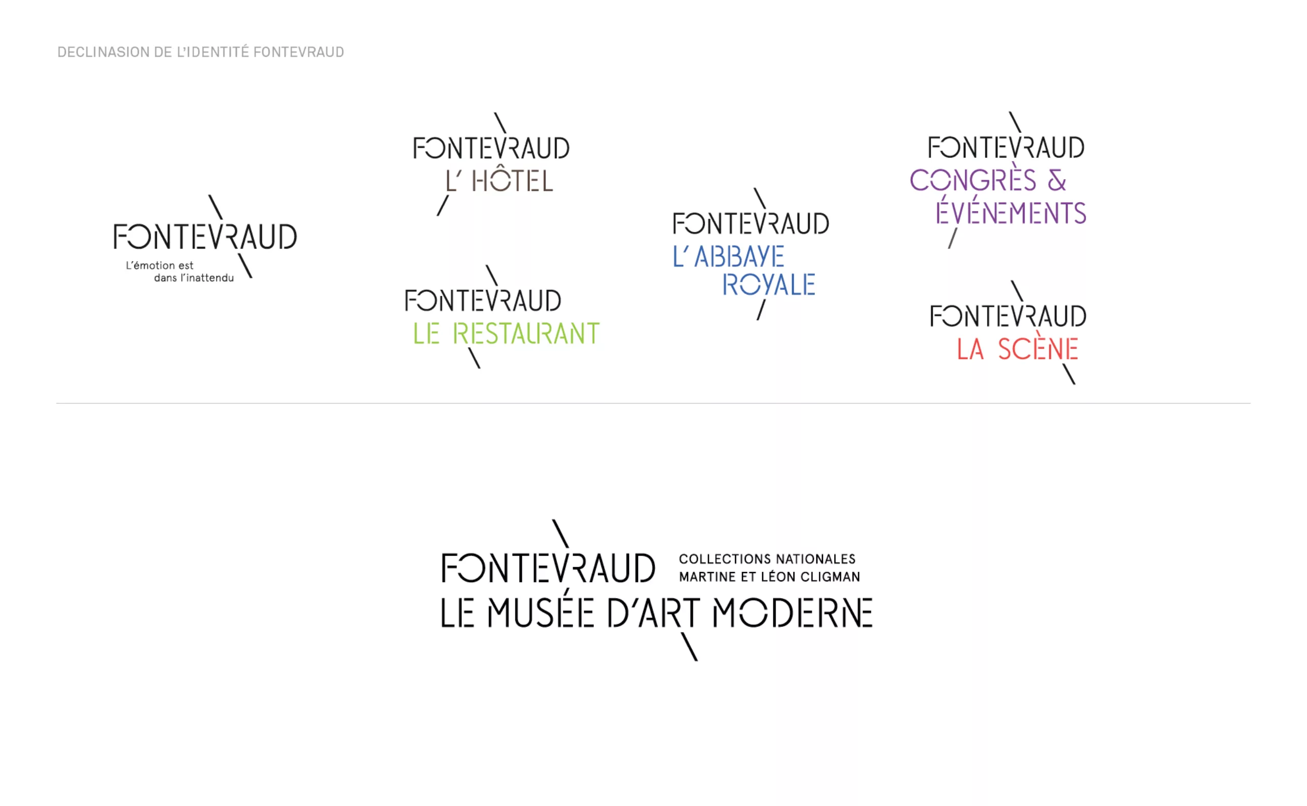 Une occasion unique pour nous de questionner les limites du branding et de réfléchir à un système graphique flexible et évolutif à même de refléter les différents visages de Fontevraud tout en construisant une réponse visuelle pertinente et pérenne.